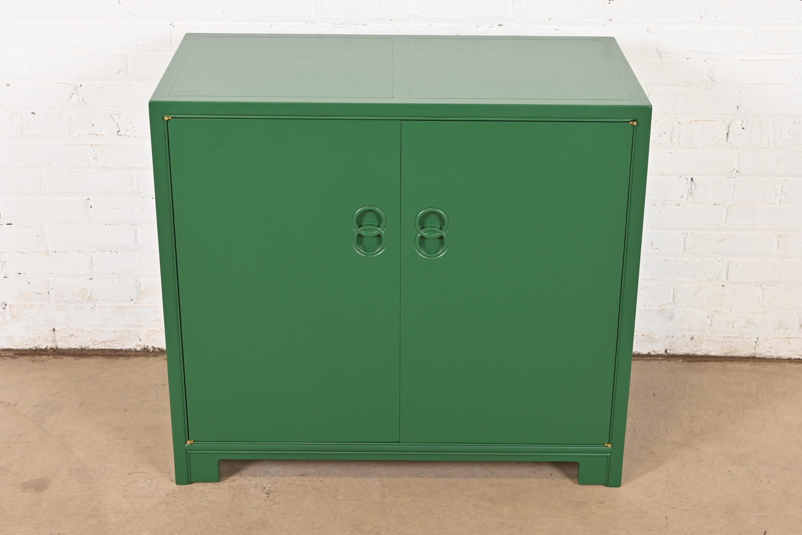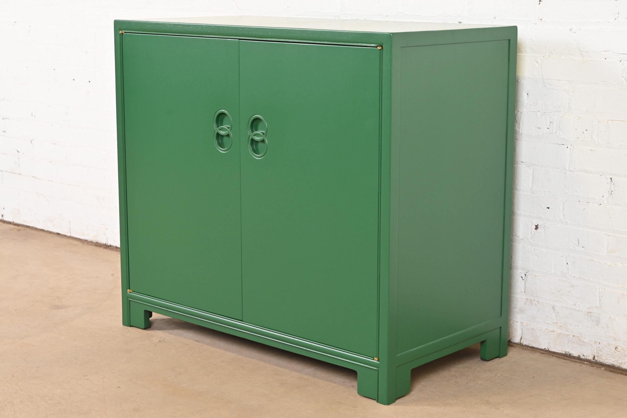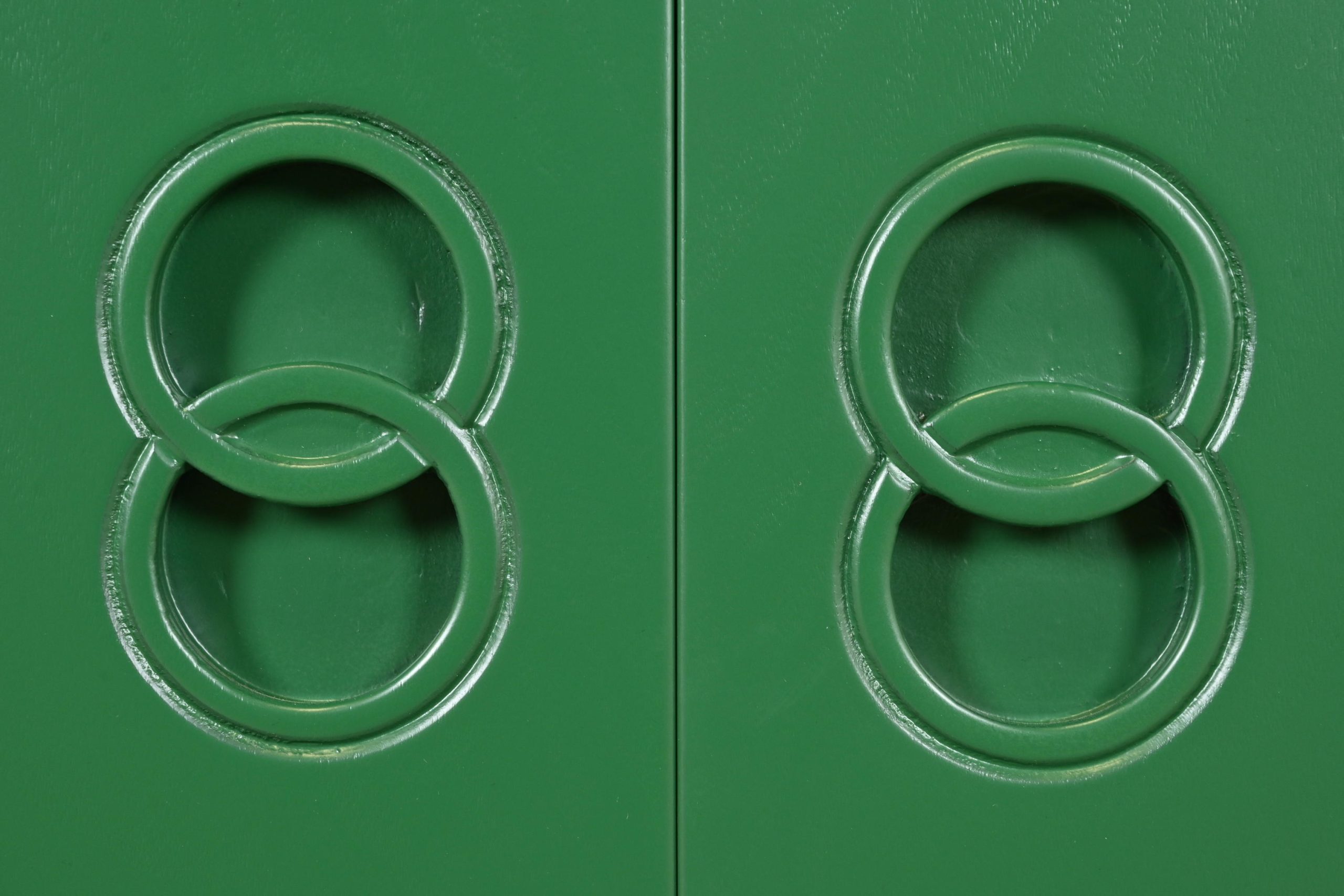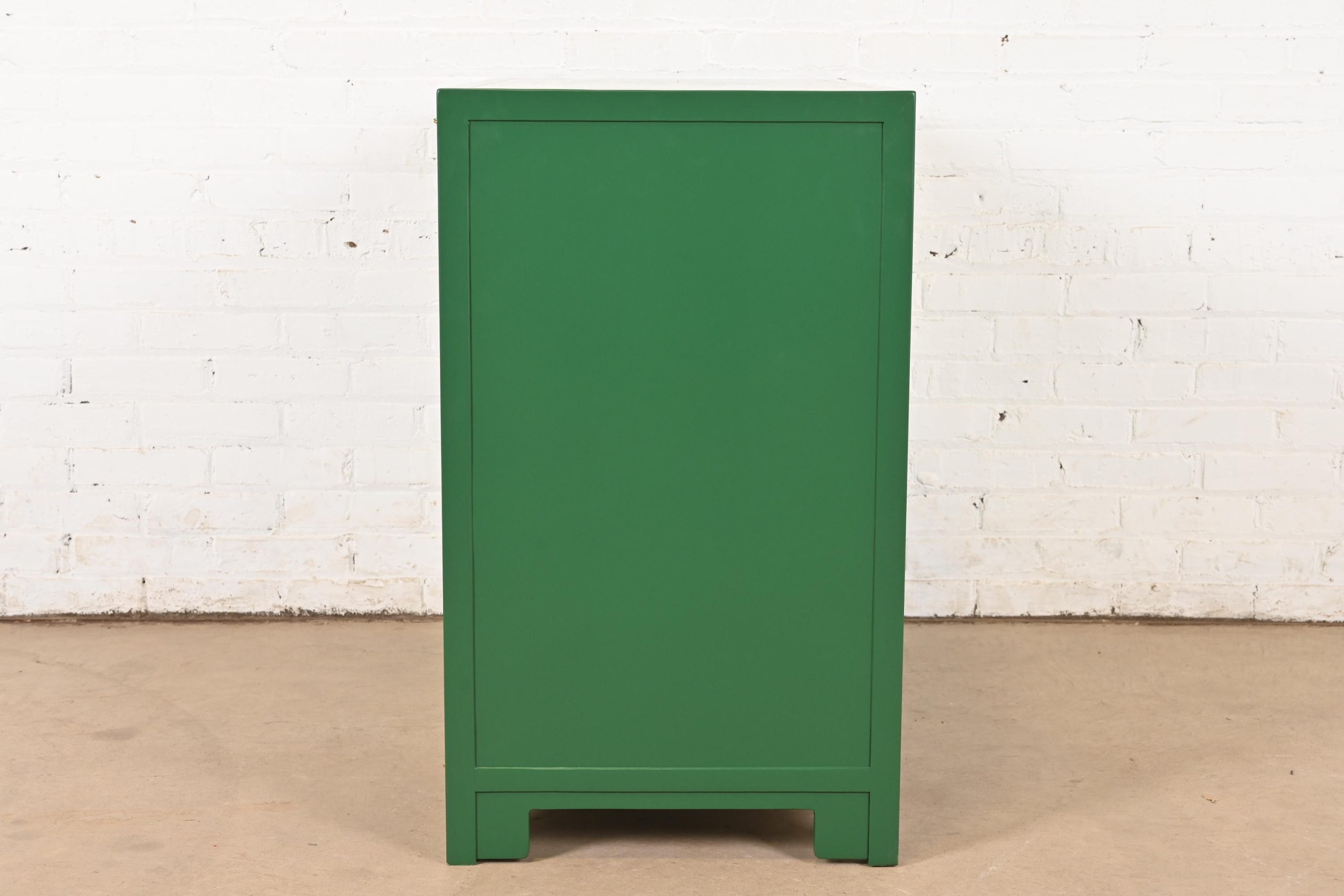 Green lacquered walnut, with carved Asian-inspired drawer pulls.