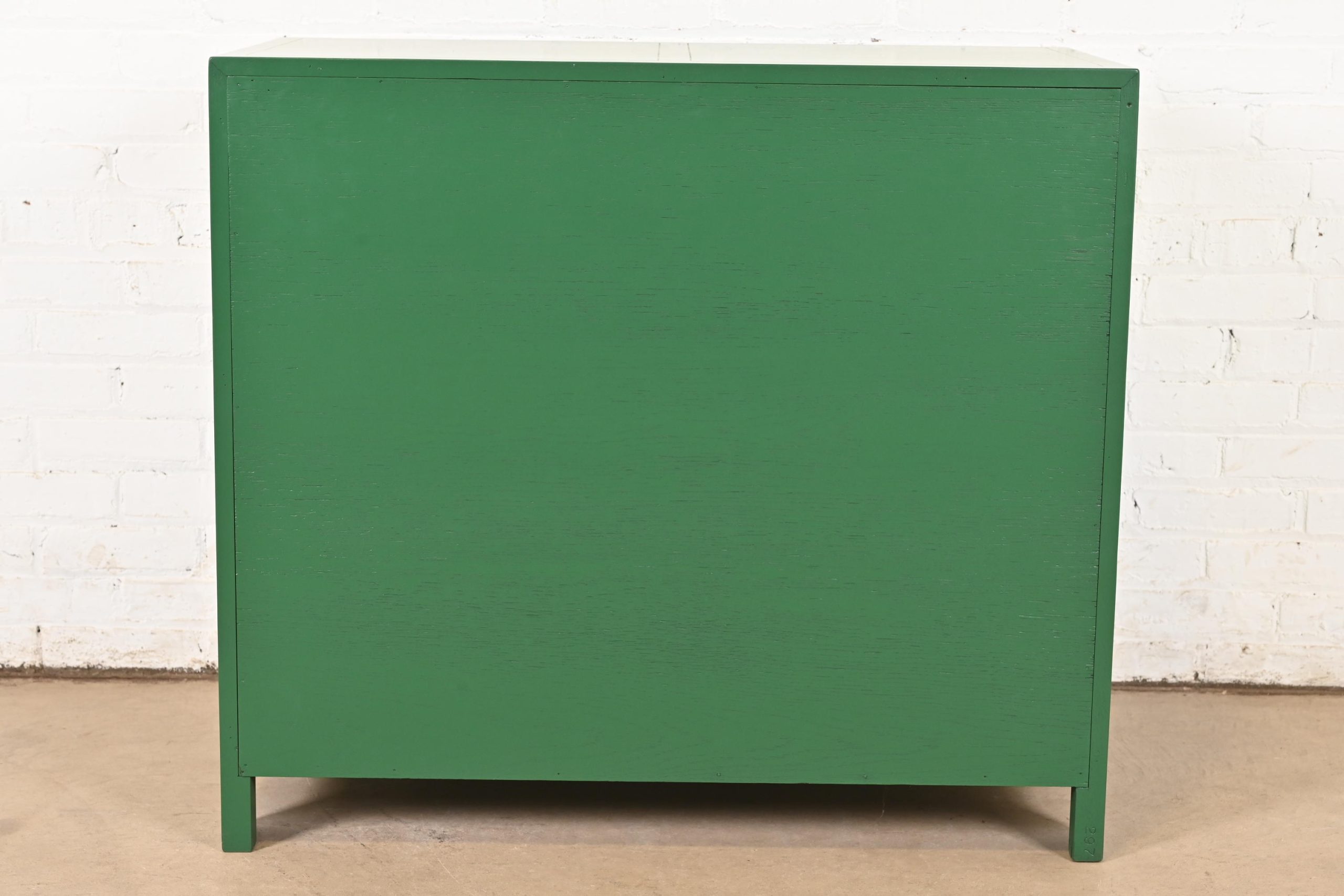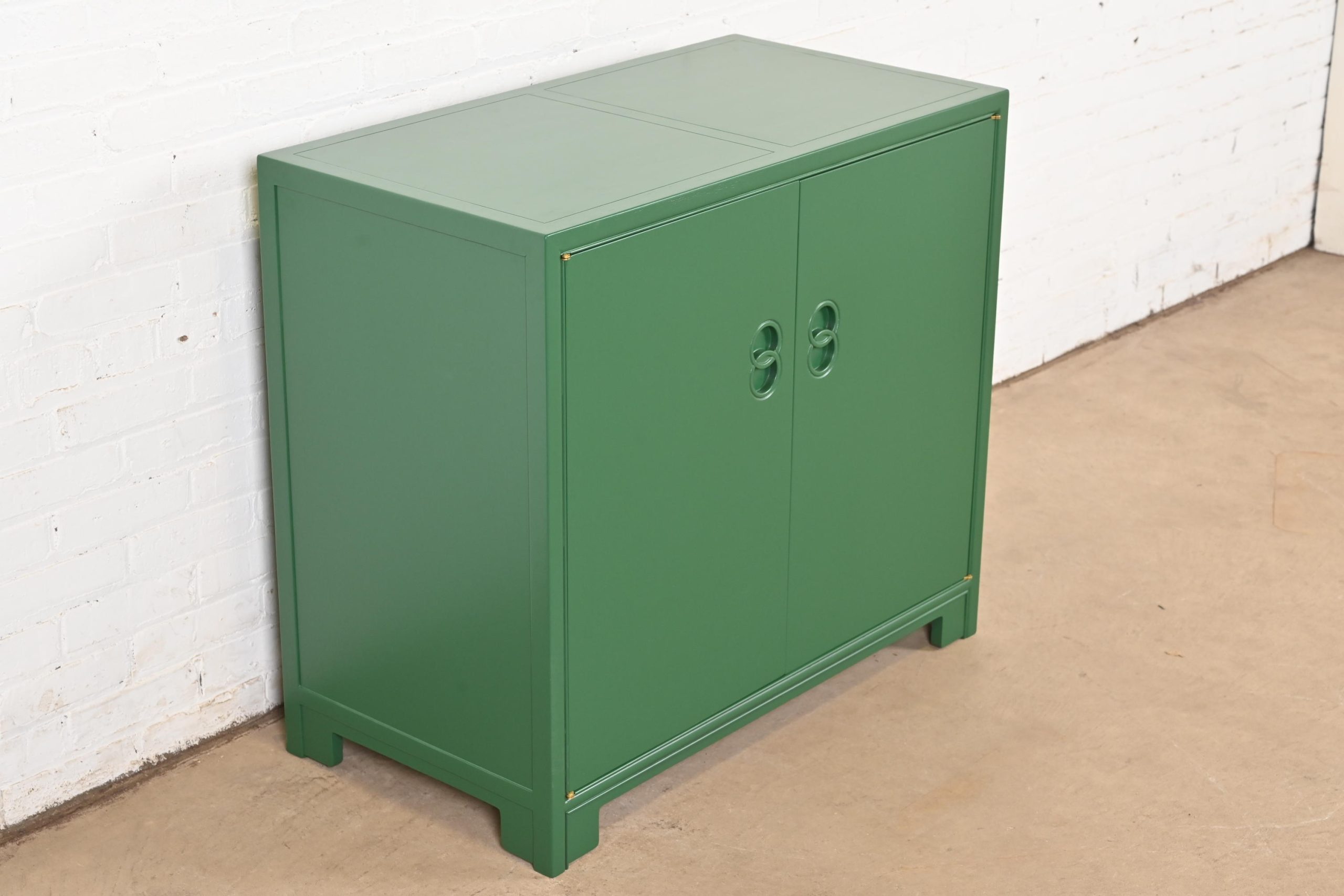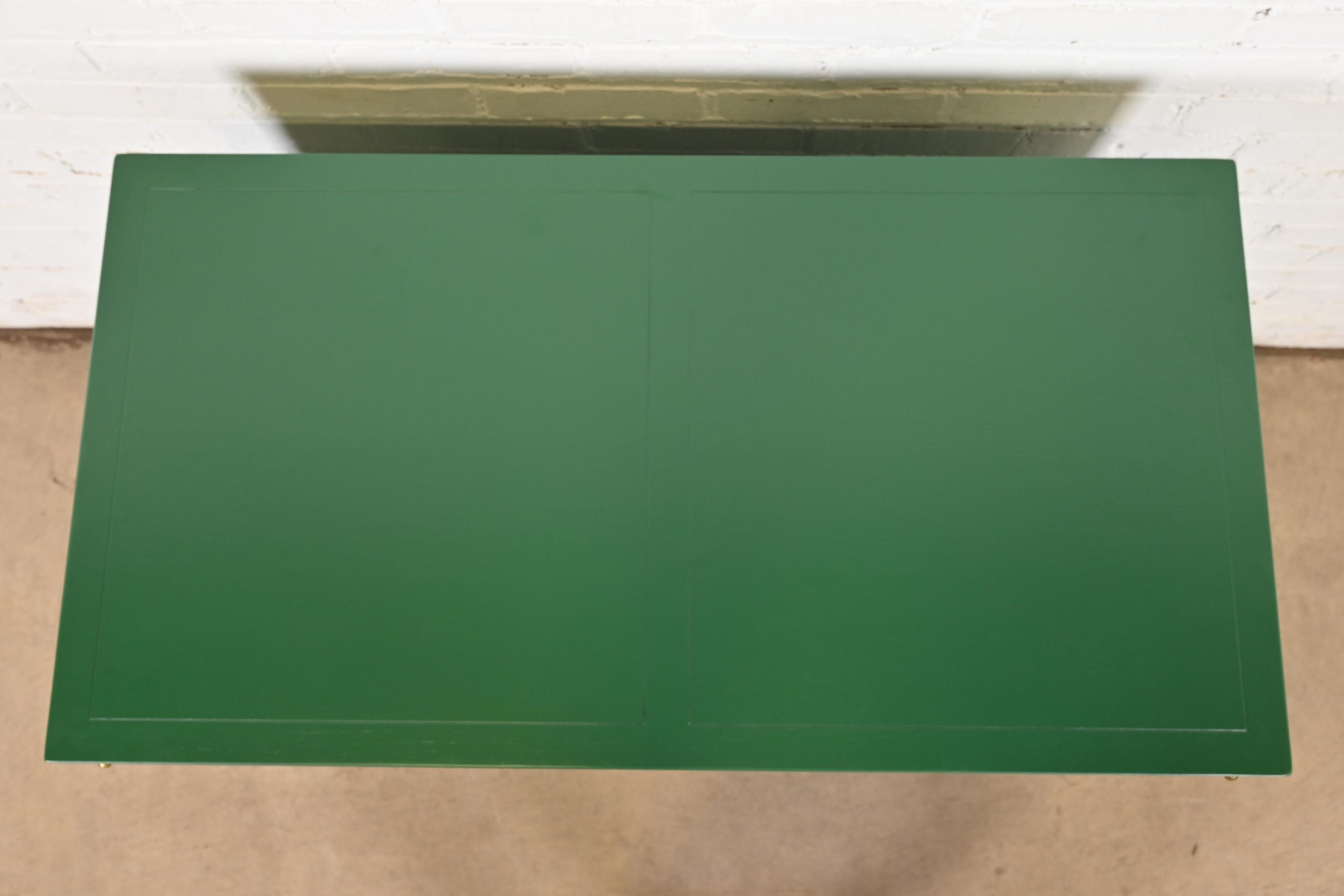 Green lacquered walnut, with carved Asian-inspired drawer pulls.