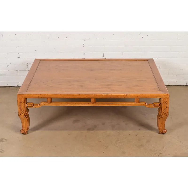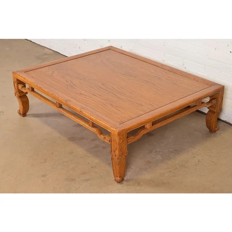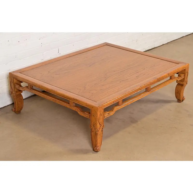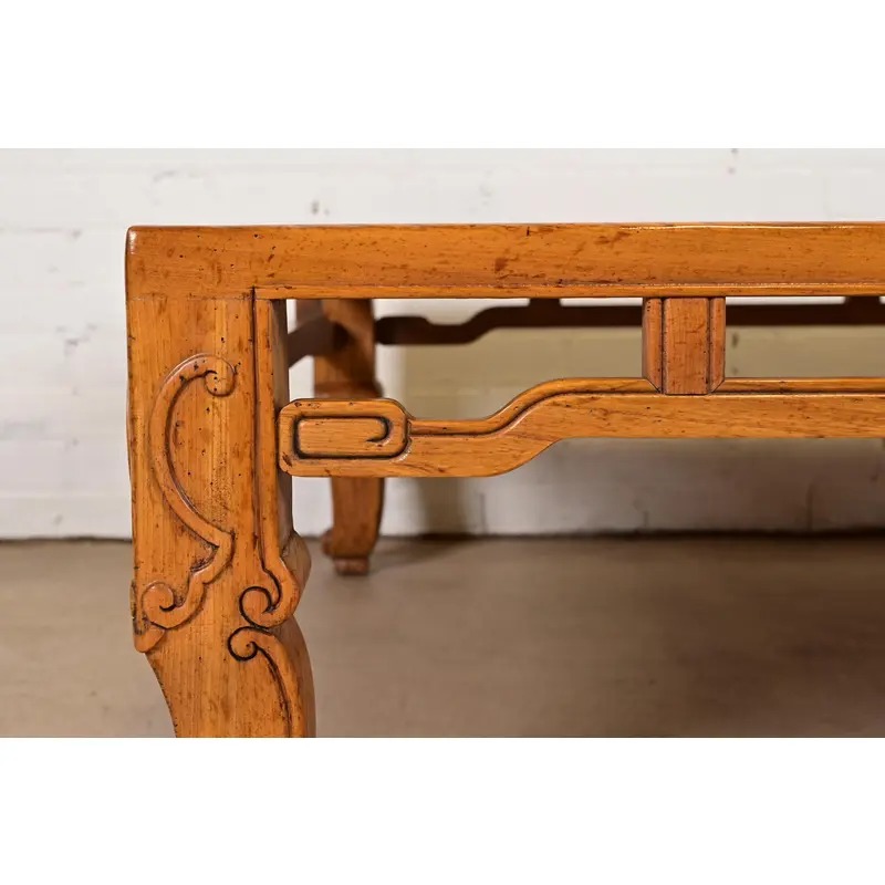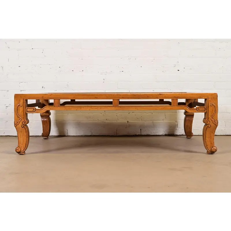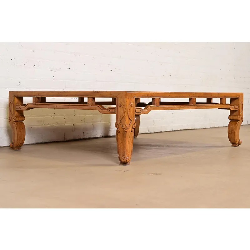 A gorgeous Mid-Century Modern Hollywood Regency Chinoiserie carved elm wood large coffee table or cocktail table