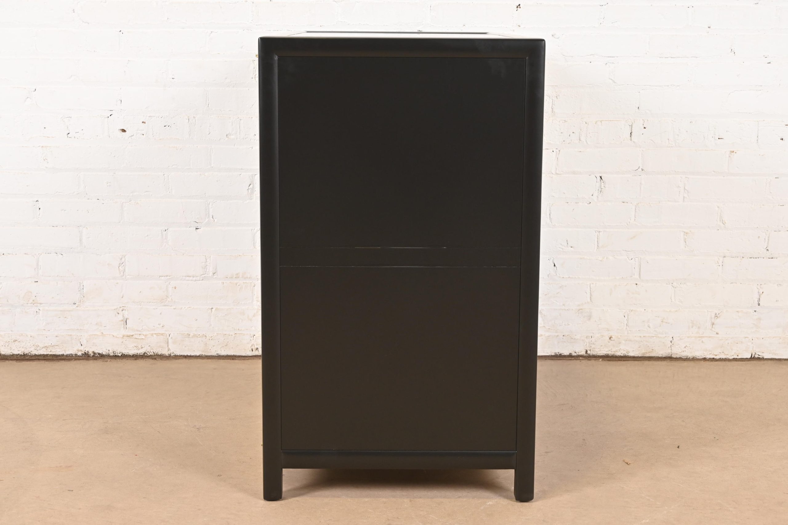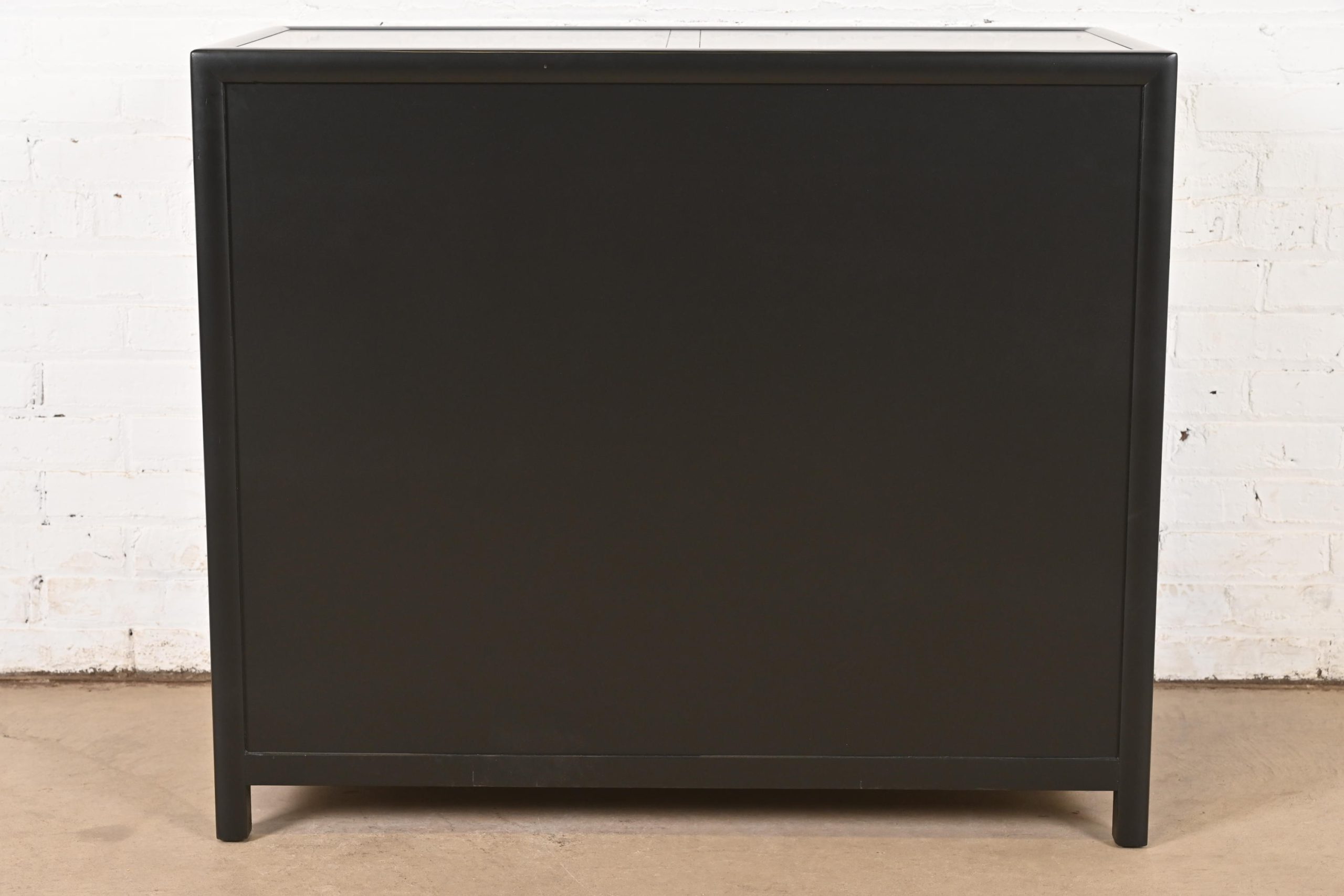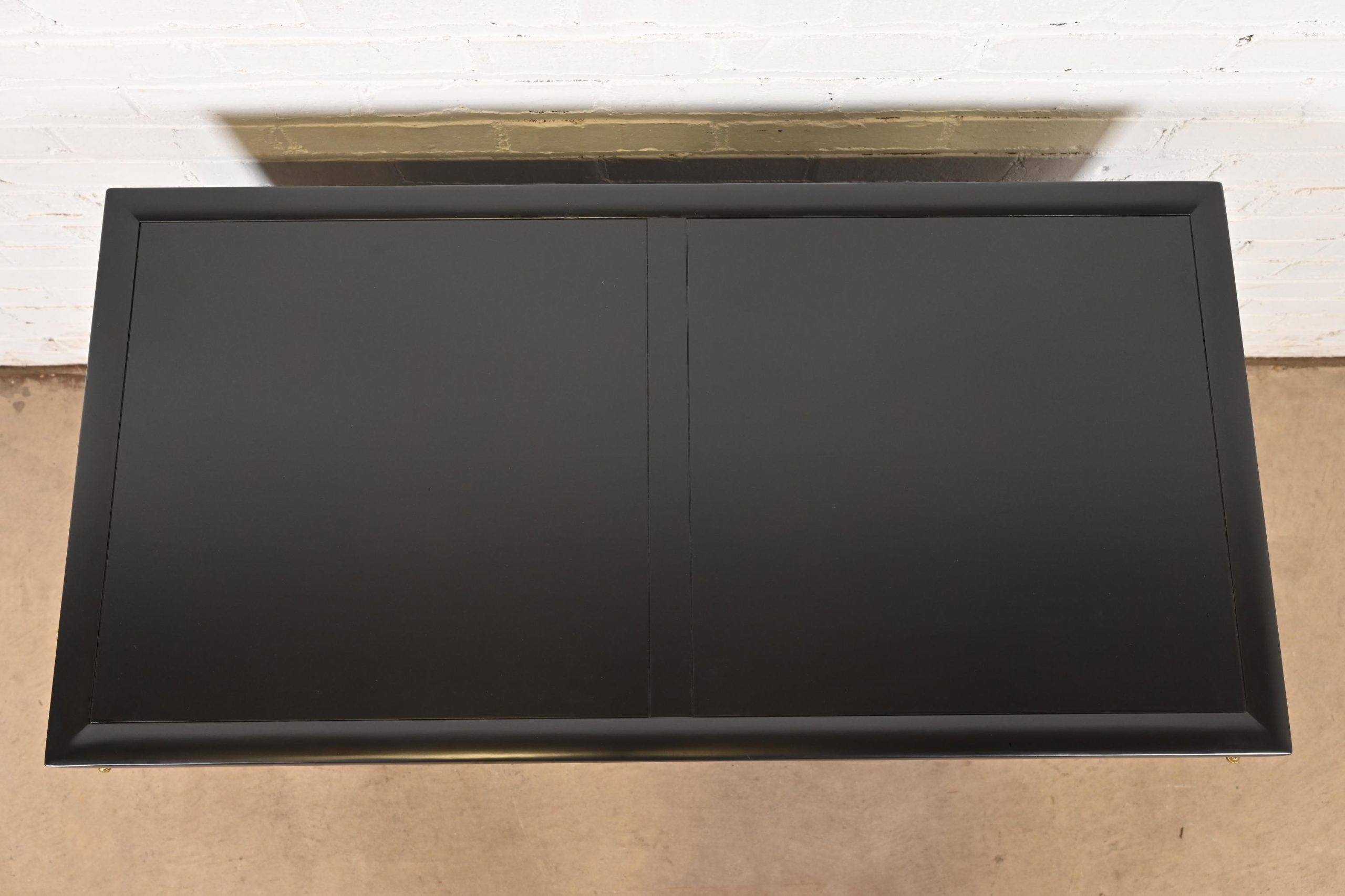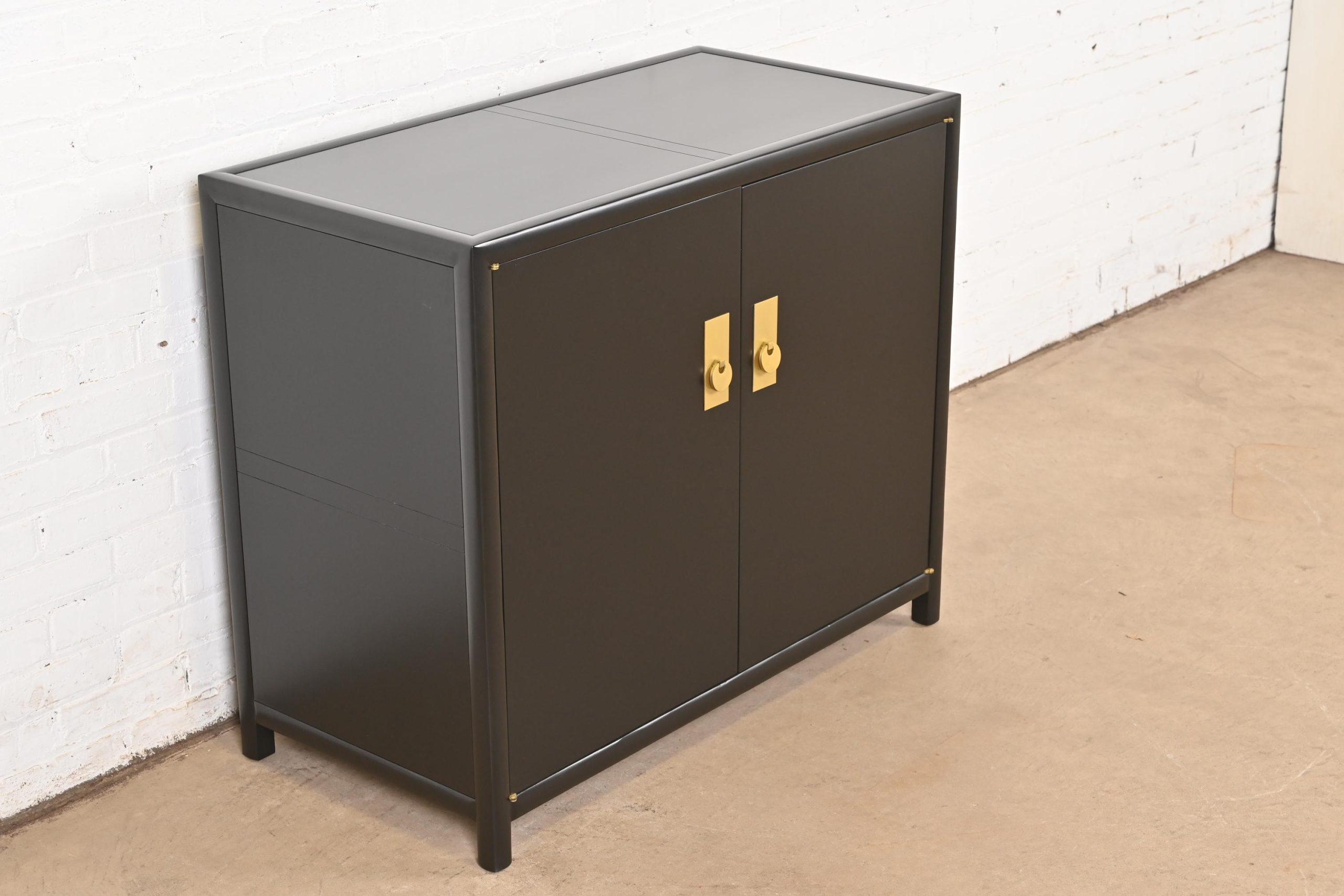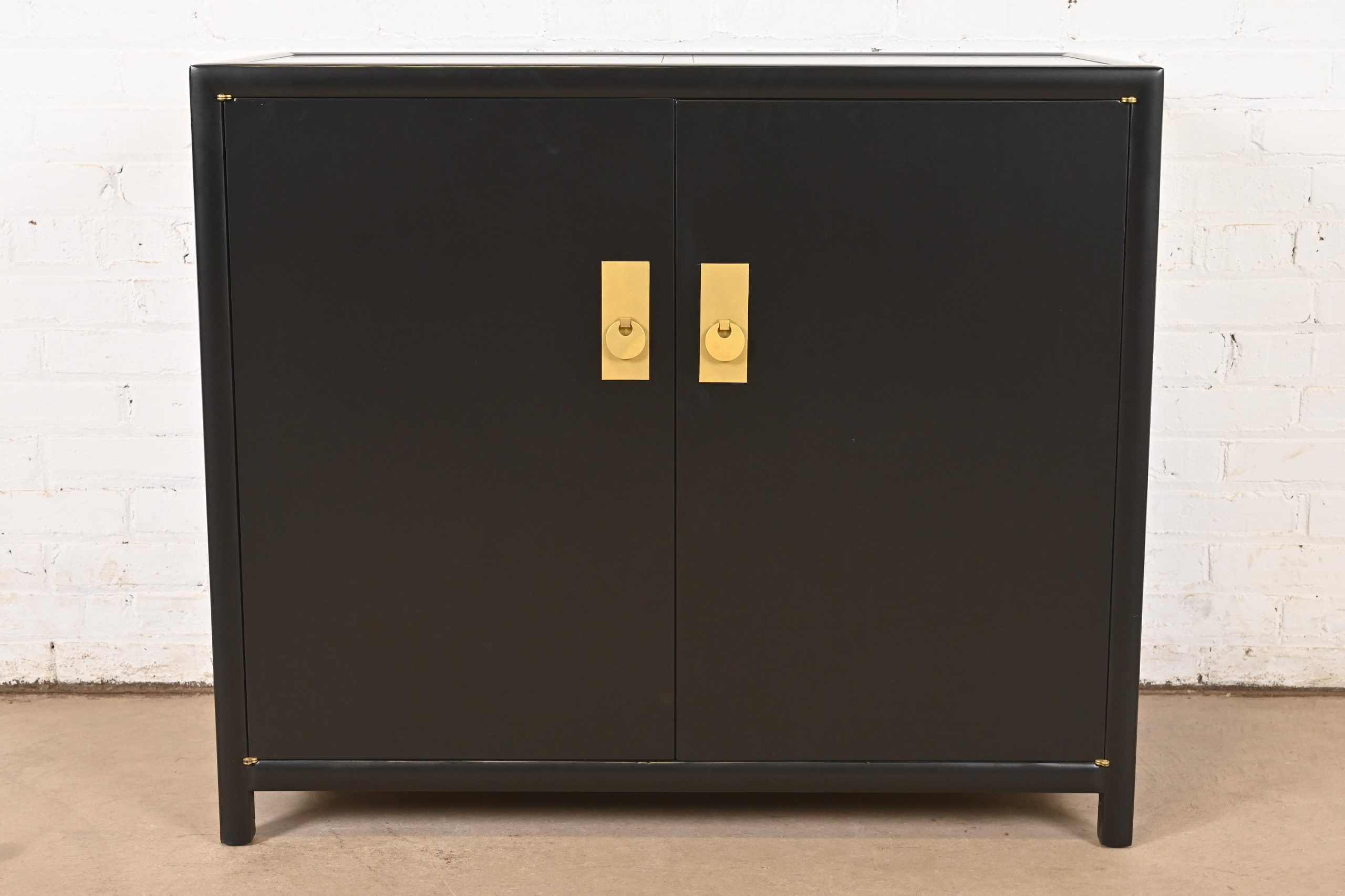 Black lacquered cherry wood, with original Asian-inspired brass hardware.