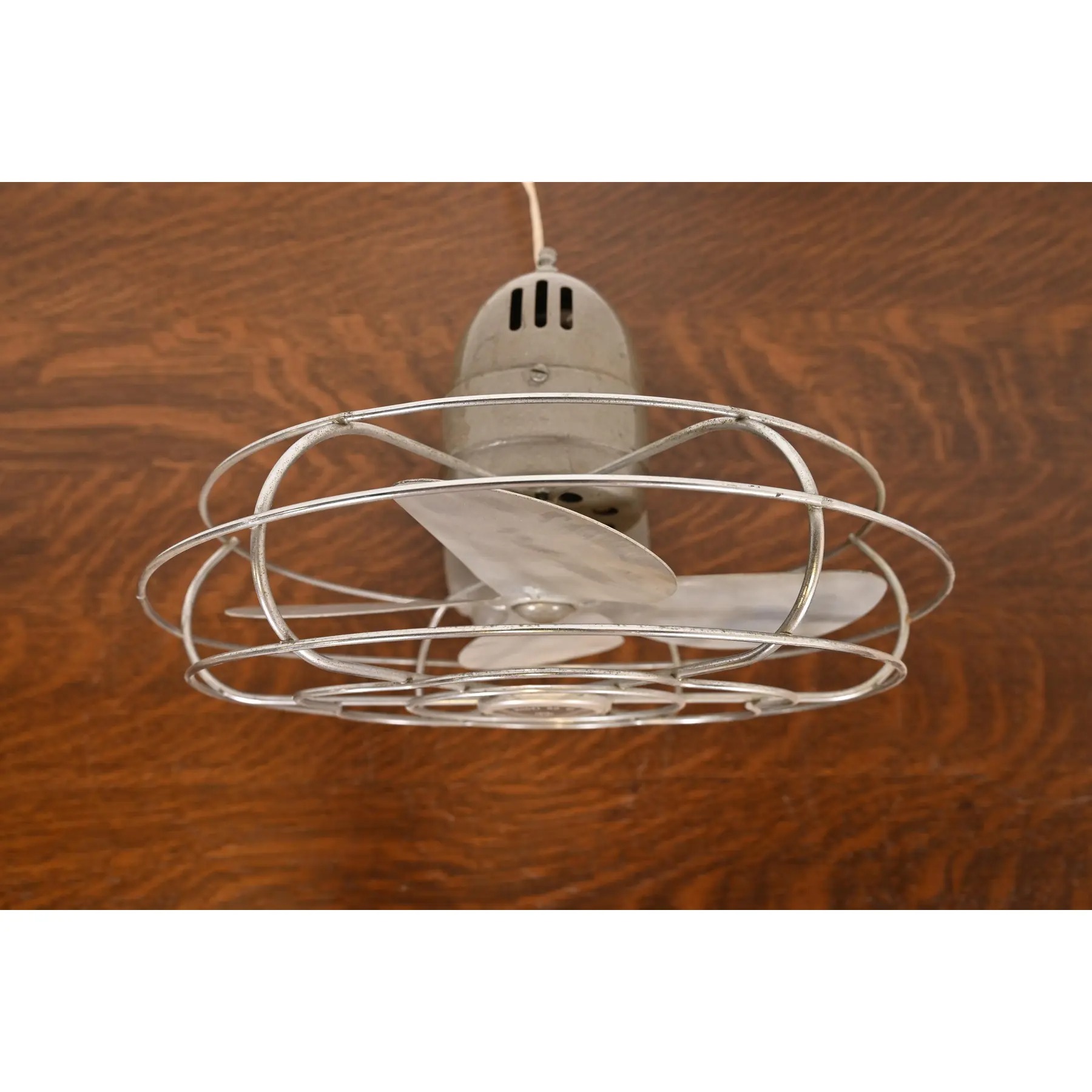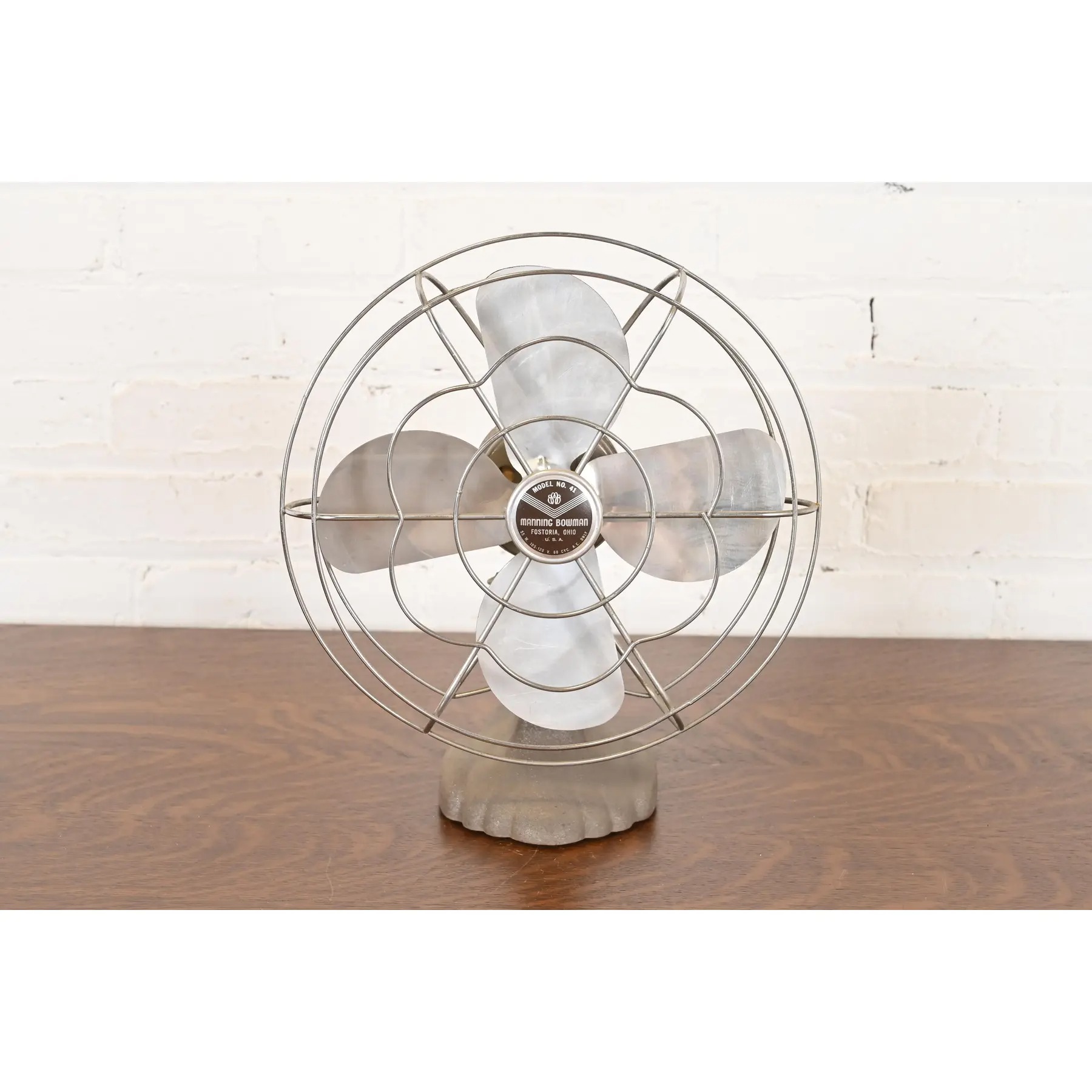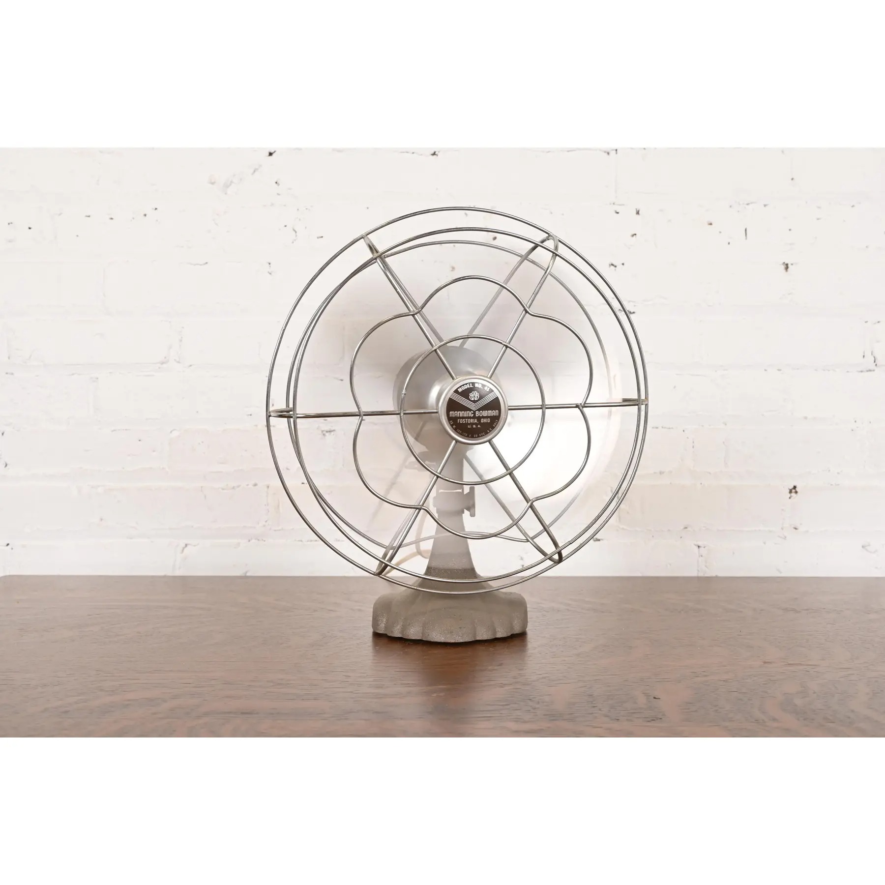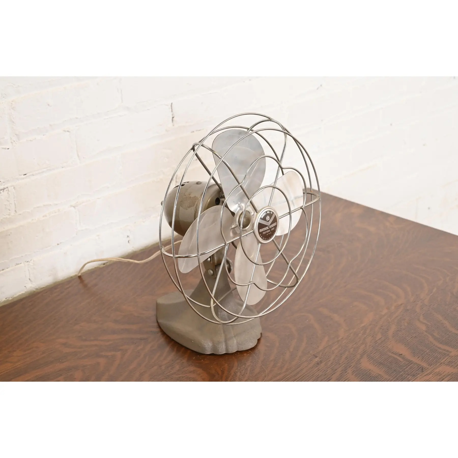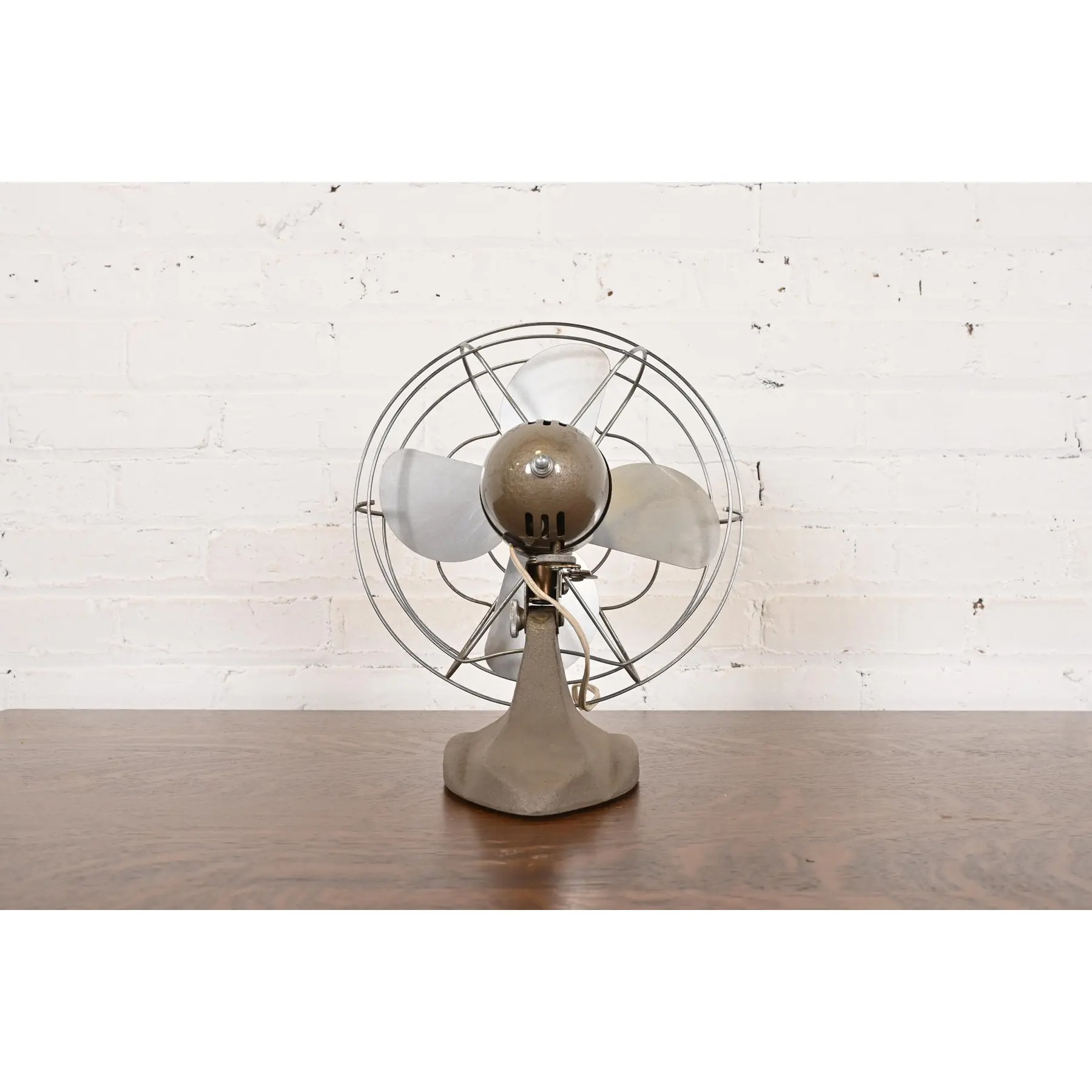 A stylish Mid-Century Modern industrial cast iron metal table or desk fan