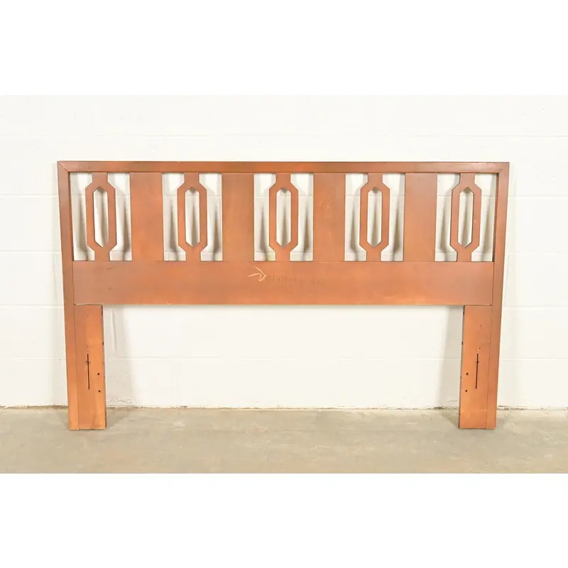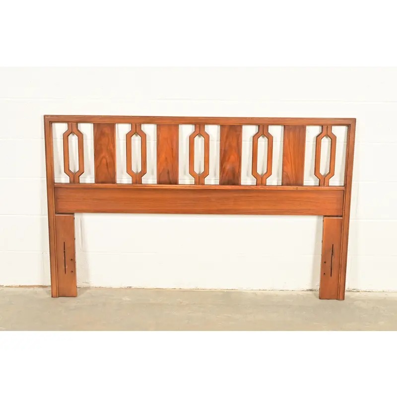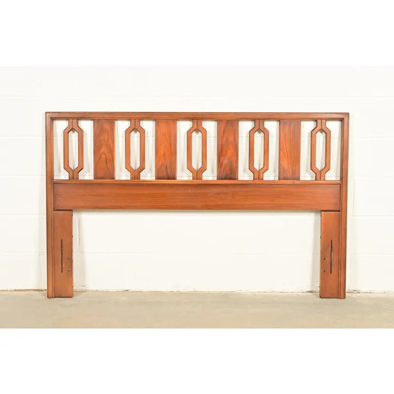 An exceptional Mid-Century Modern sculpted walnut queen size headboard