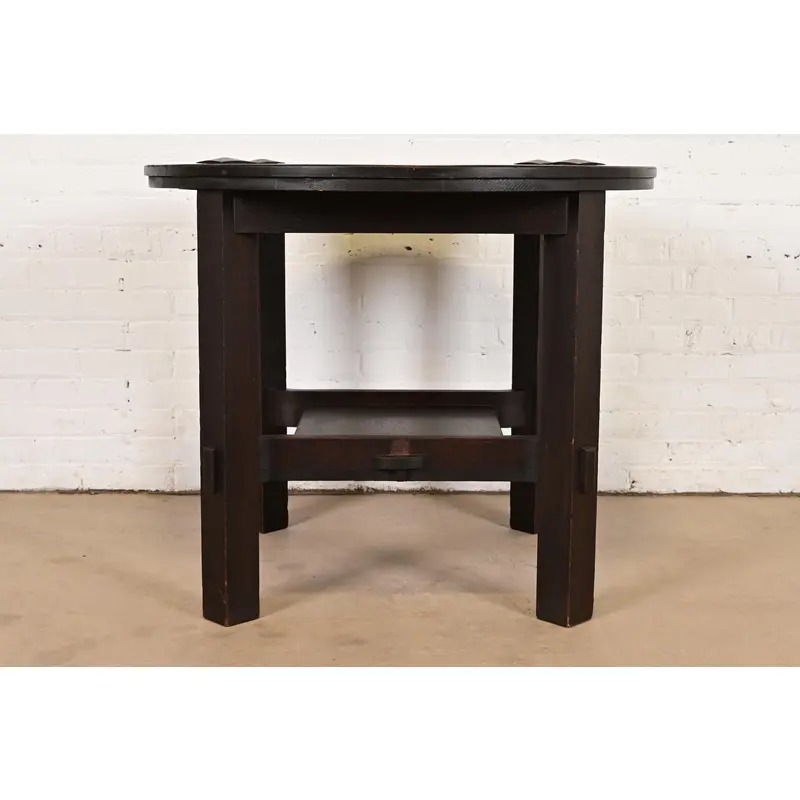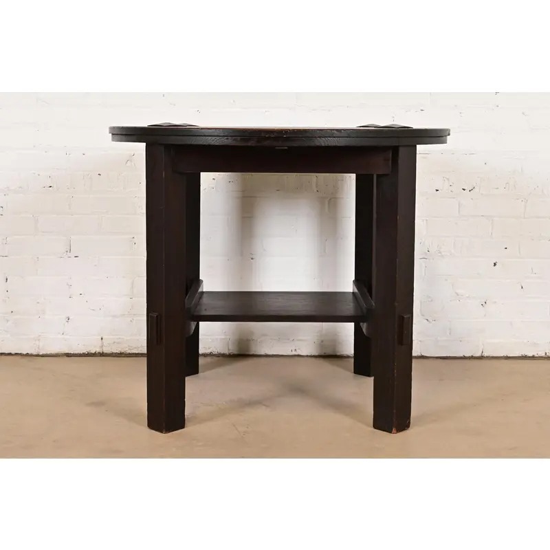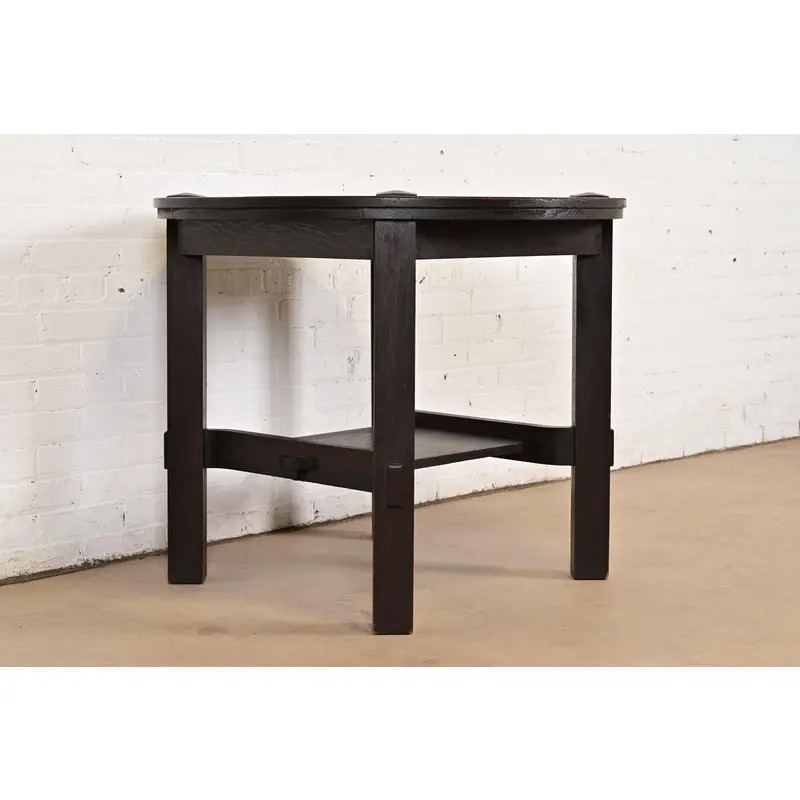 A gorgeous antique Mission oak Arts & Crafts pedestal center table, lamp table, or occasional side table