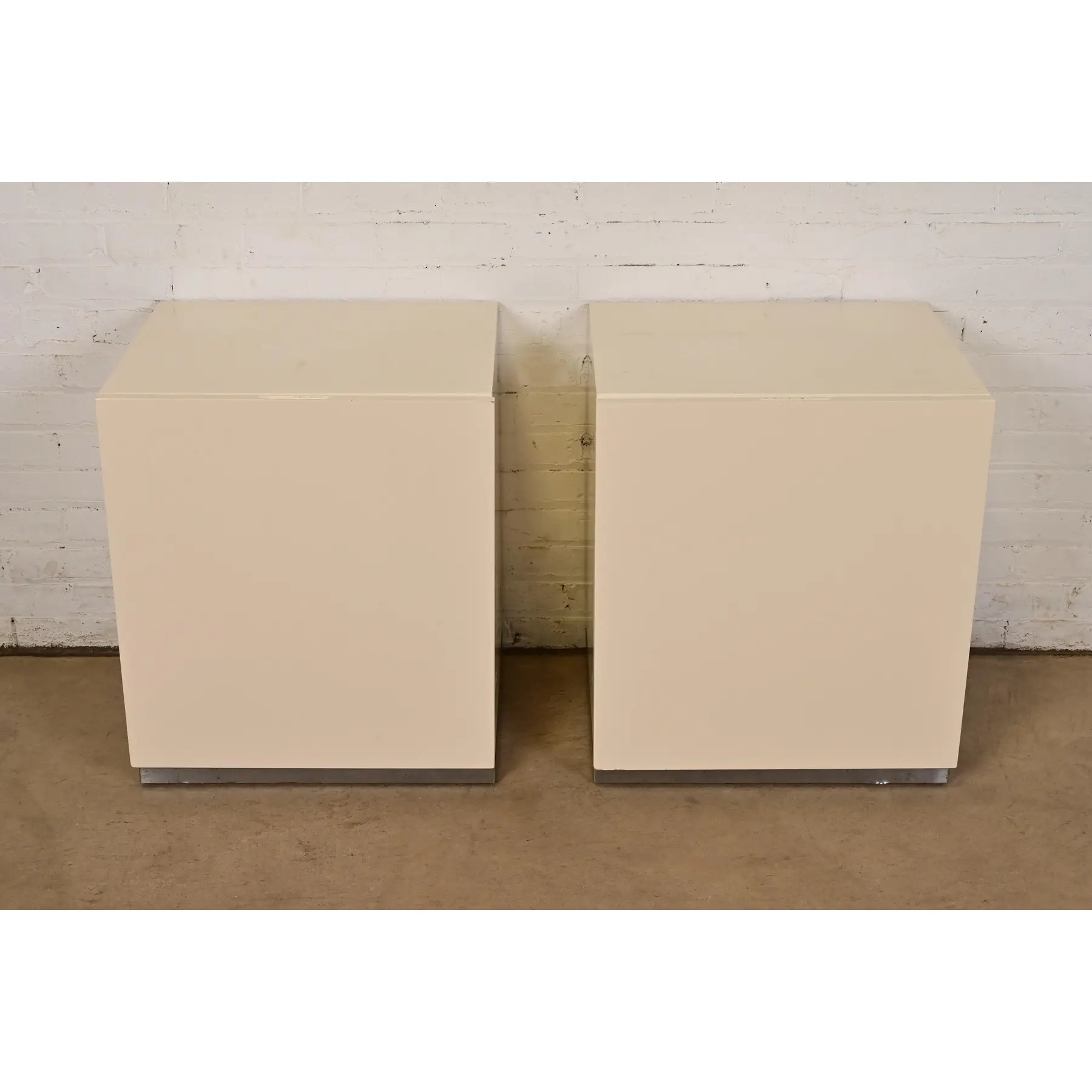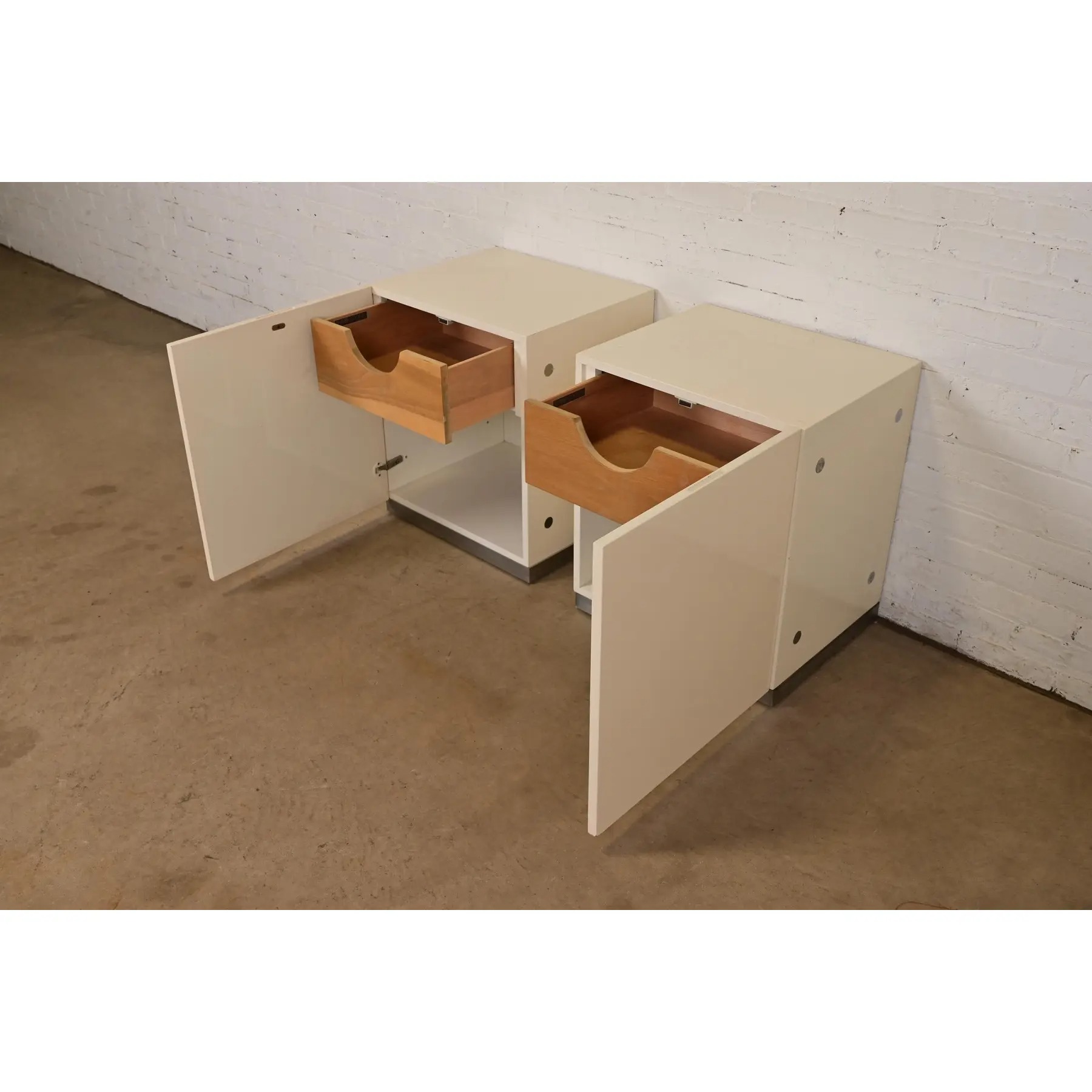 A gorgeous pair of Mid-Century Modern nightstands, bedside chests, or side tables