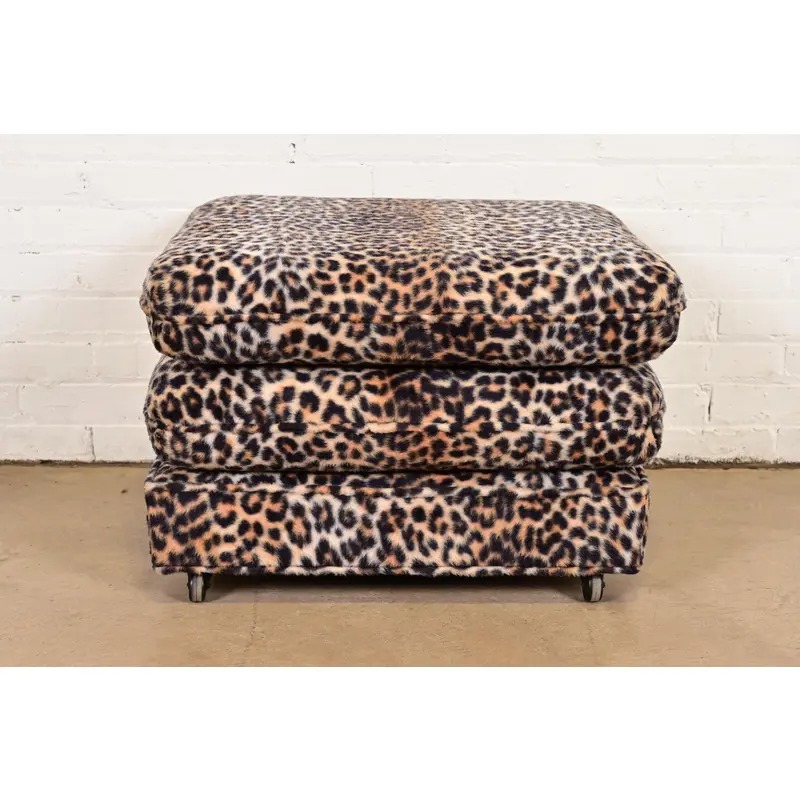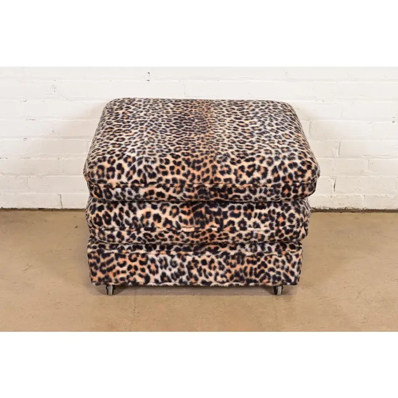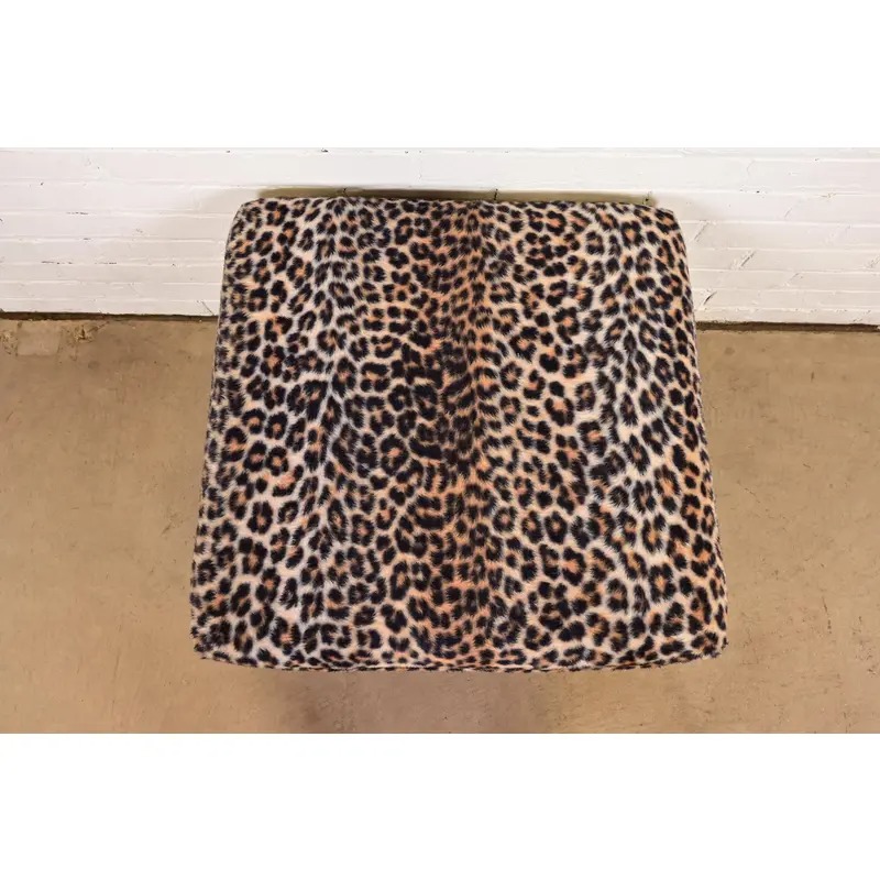 A gorgeous Mid-Century Modern leopard print upholstered stool or ottoman