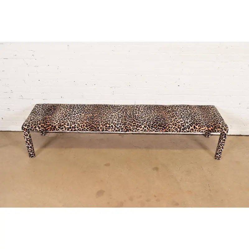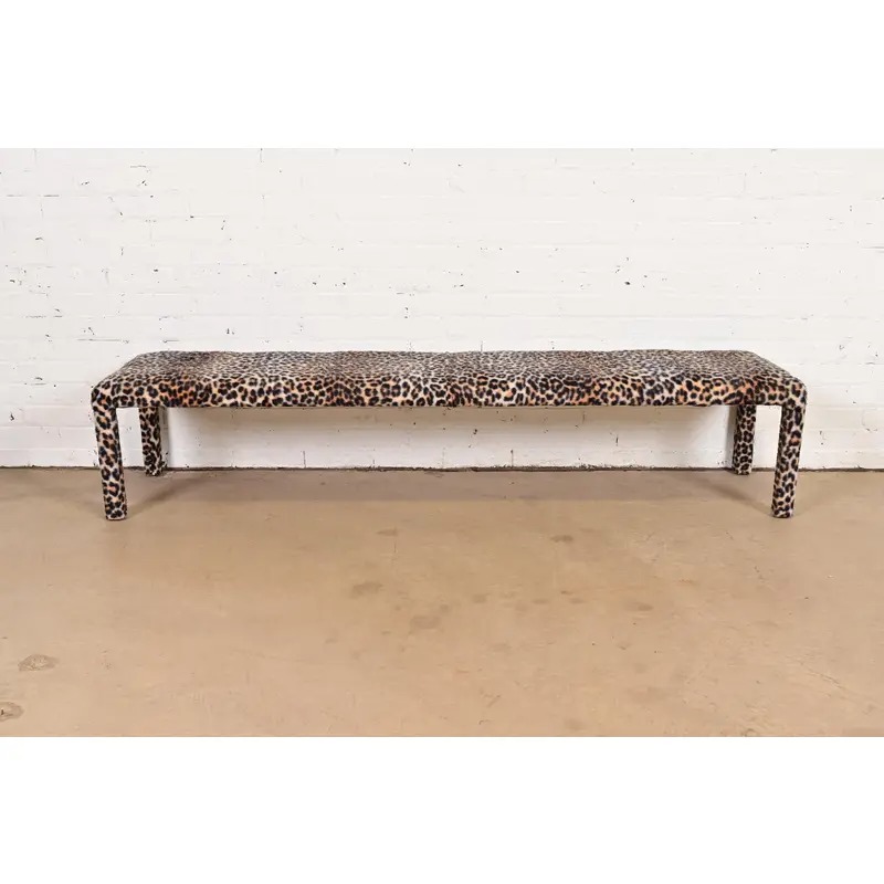A gorgeous mid-century modern Parsons style upholstered window bench or end of bed bench