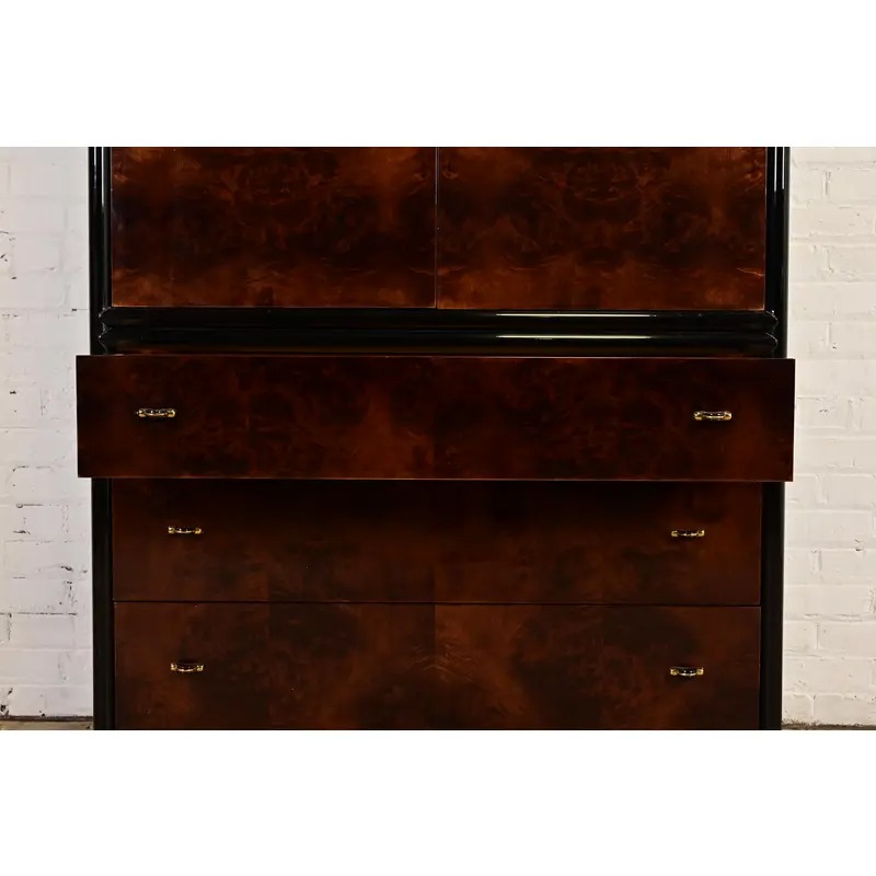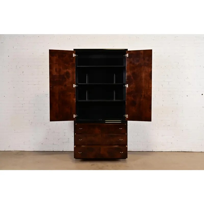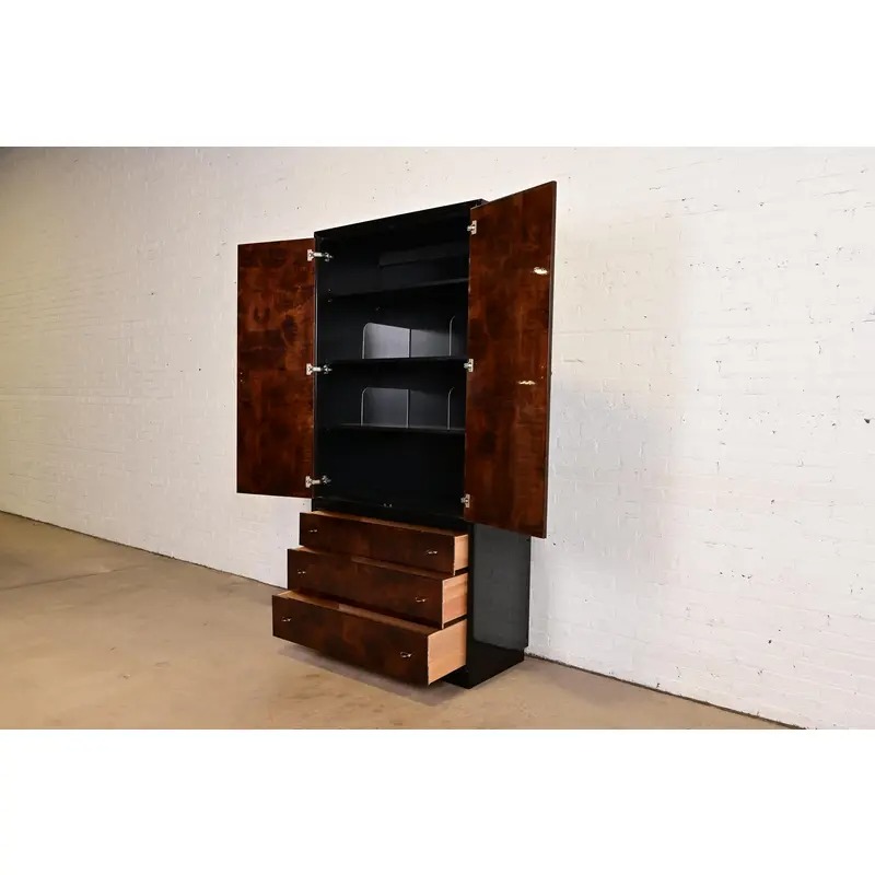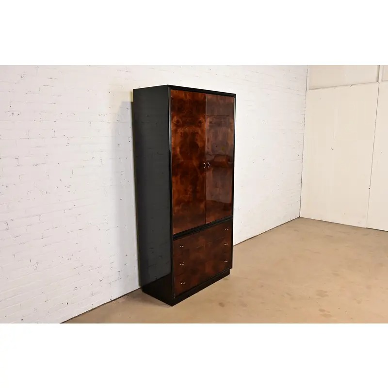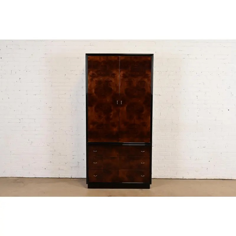 Milo Baughman Style Modern Art Deco Burl Wood Armoire Dresser or Gentleman’s Chest by Henredon