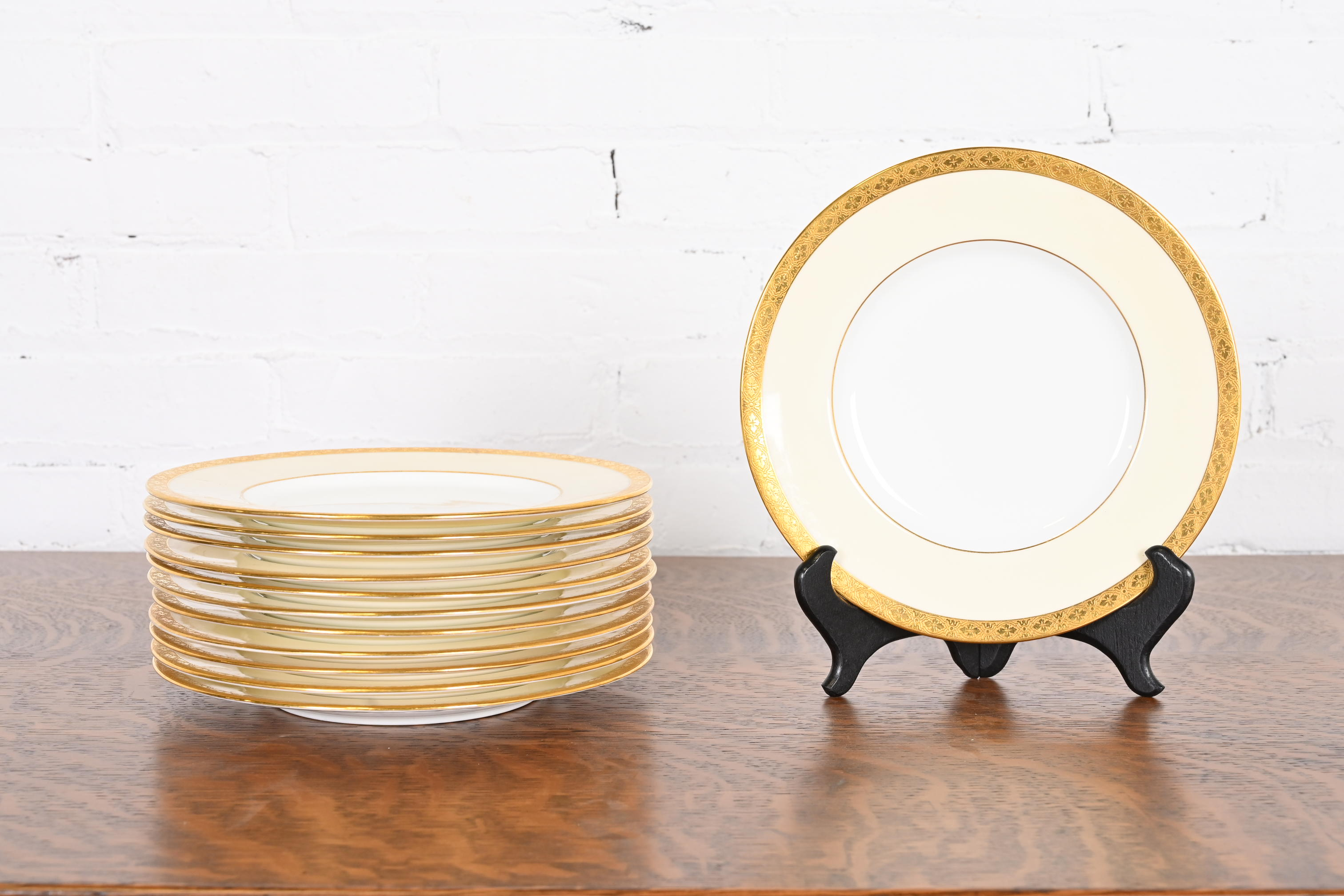 A gorgeous set of twelve Art Deco dessert plates with gold gilt border