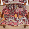 Solid carved walnut frames, with brass studded floral tapestry upholstery.