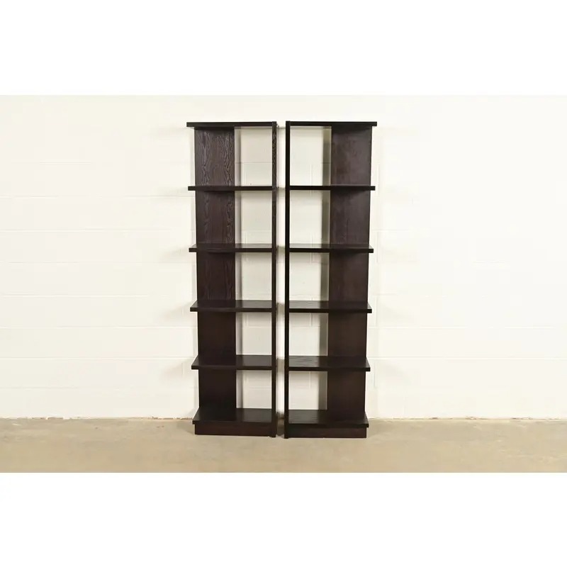 Modern Art Deco Dark Oak Modular Étagères or Bookcases, Pair