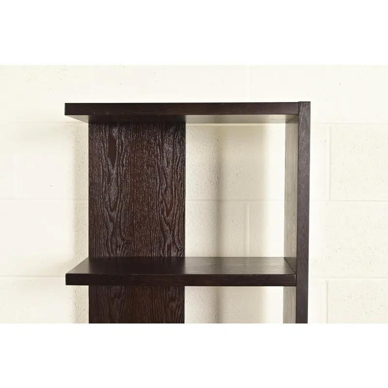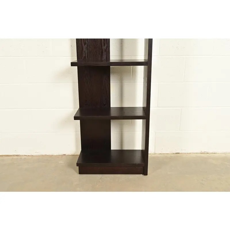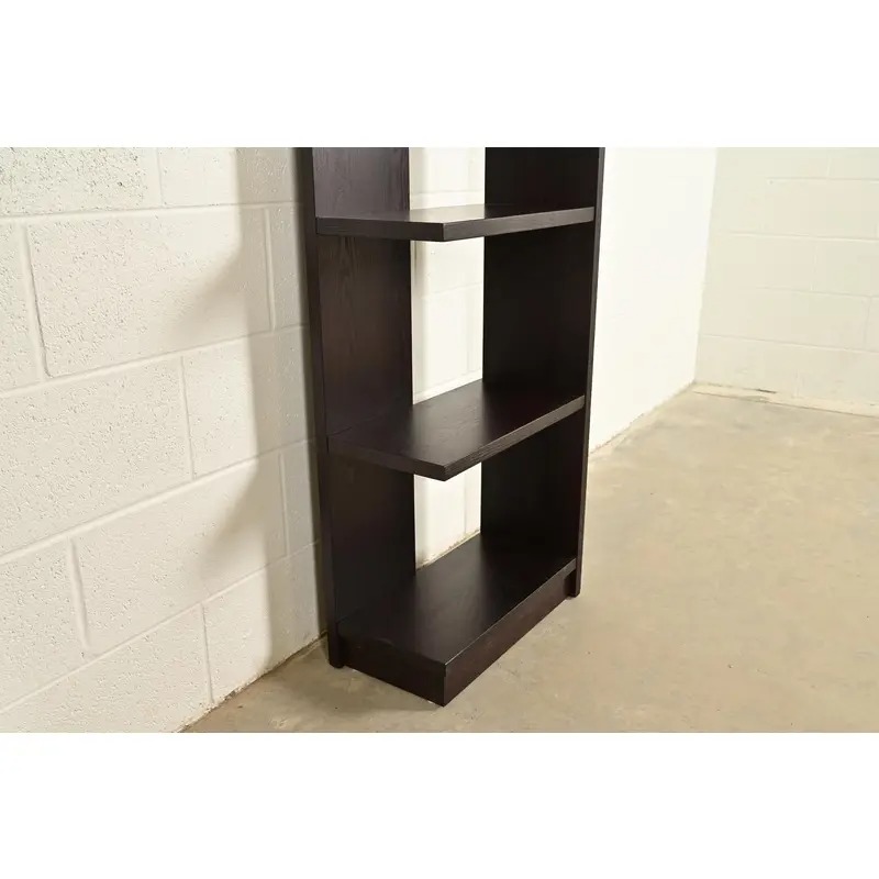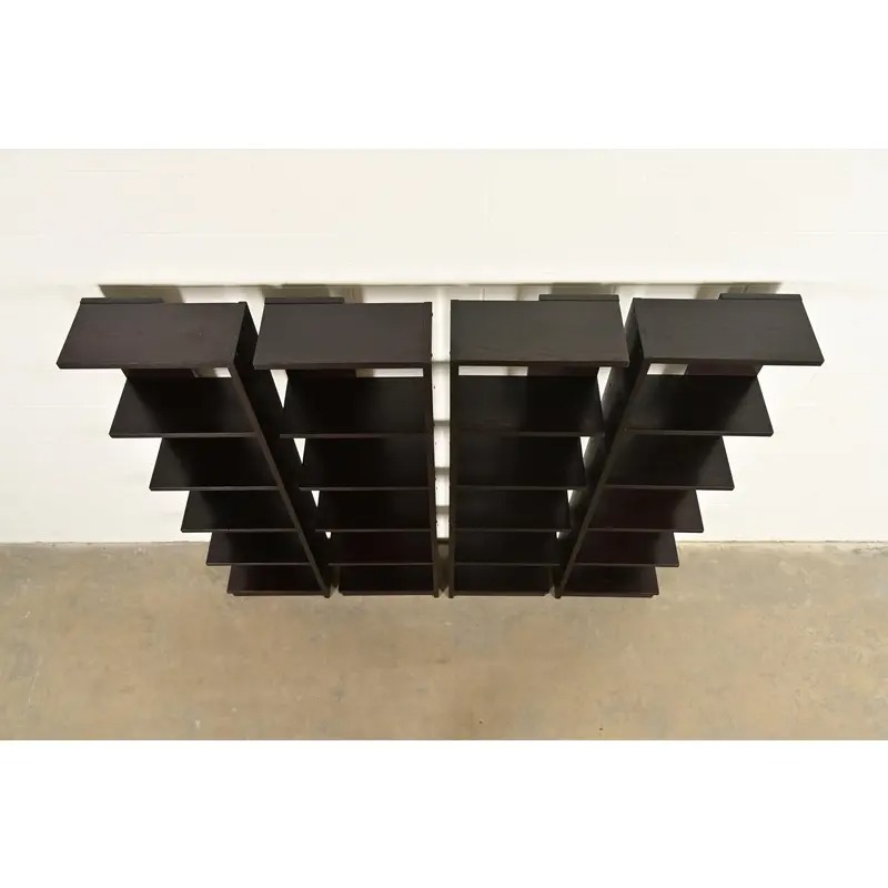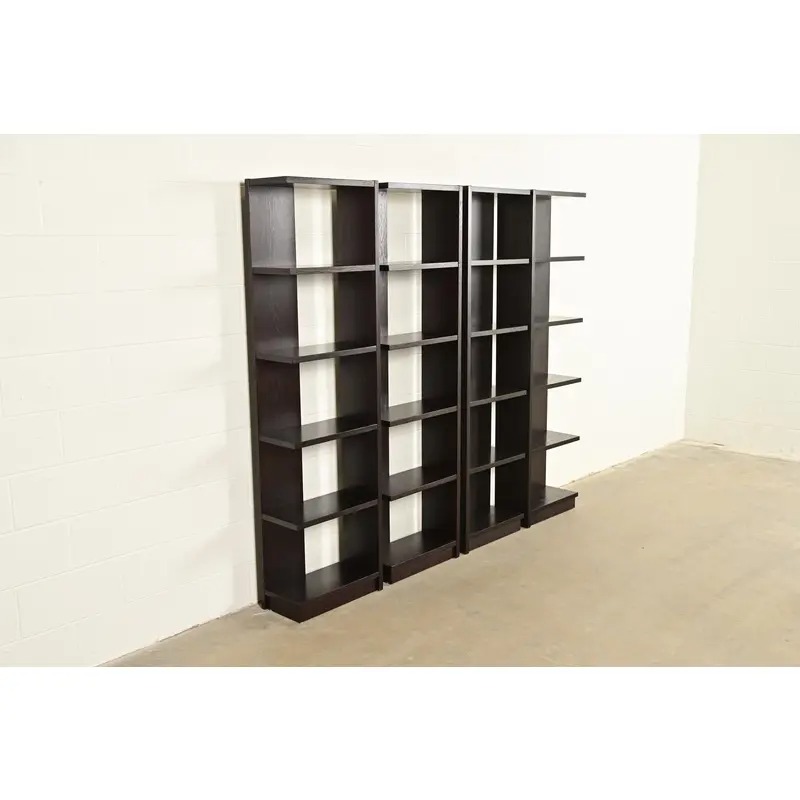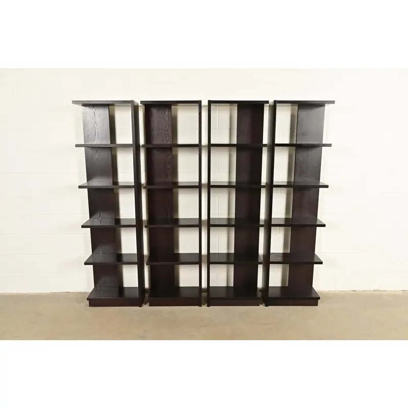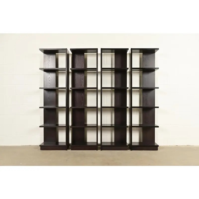 A gorgeous set of four Modern Art Deco style dark oak modular bookshelves, étagères, or display units