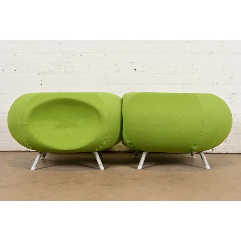 Modern Pebble Scalloped Stools or Ottomans by Allermuir, Pair