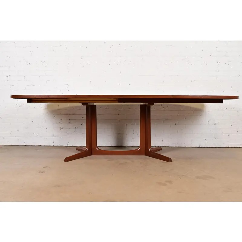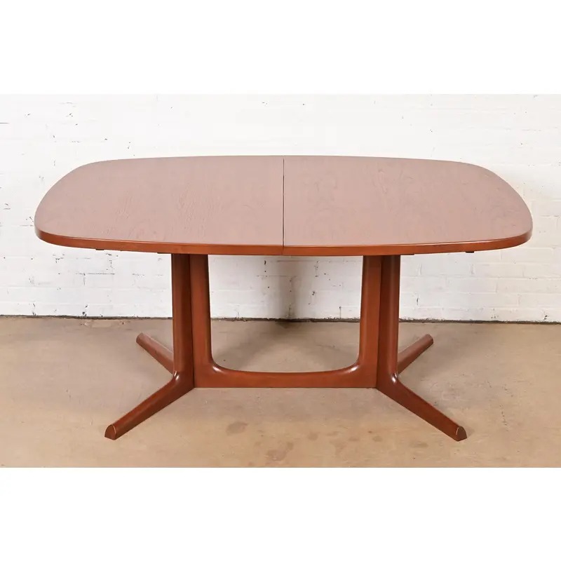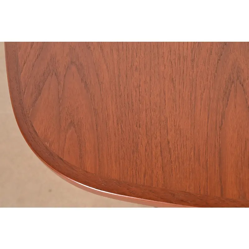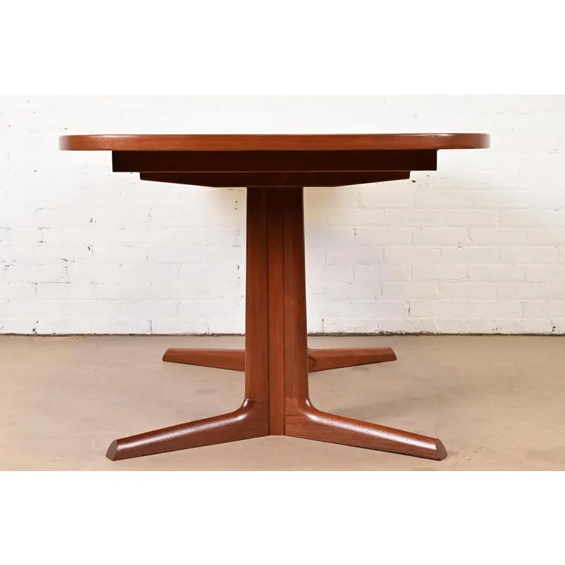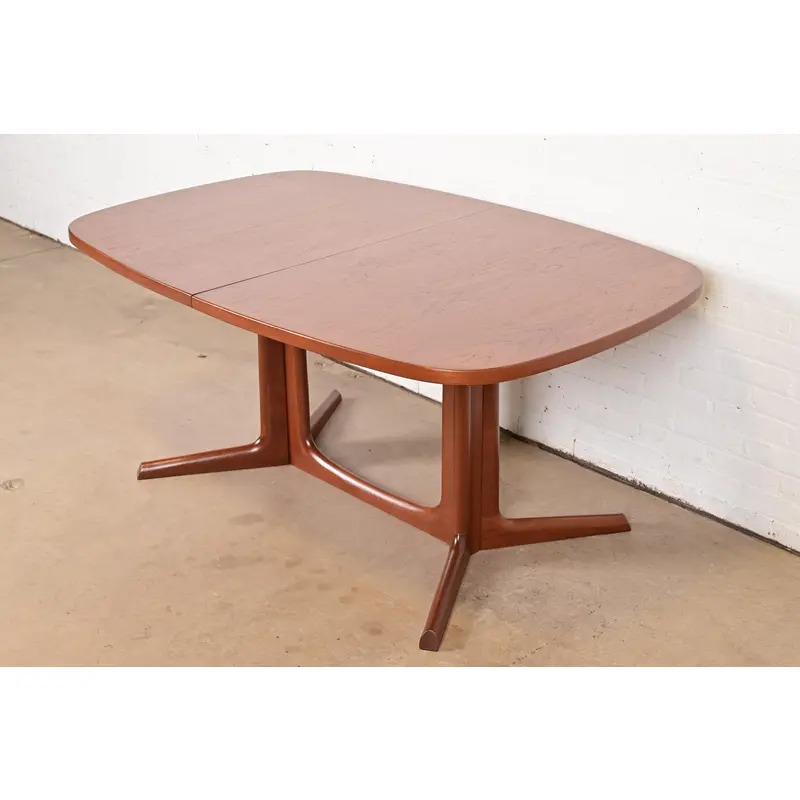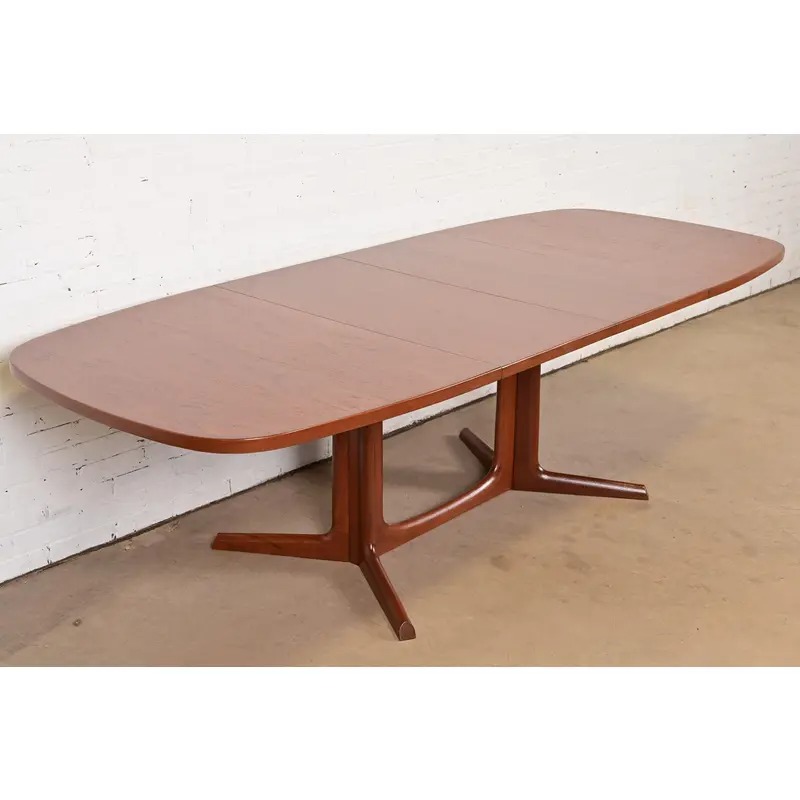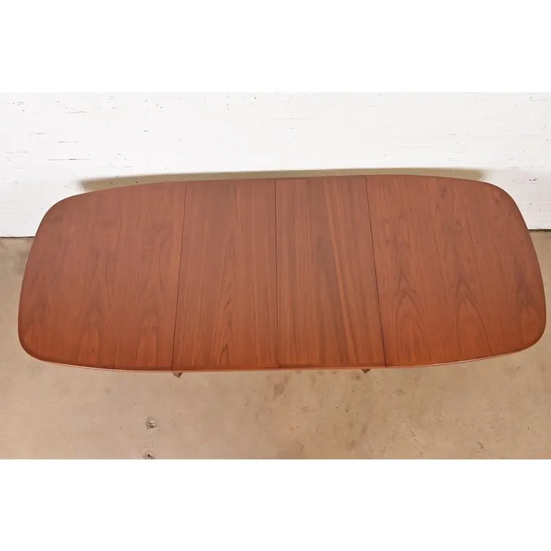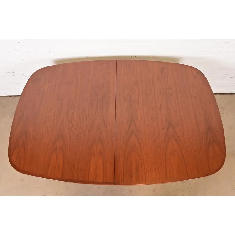A sleek and stylish mid-century Danish Modern sculpted teak extension dining table