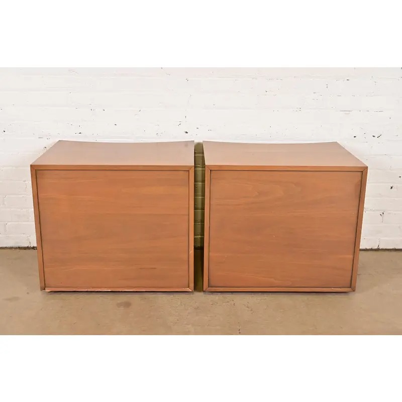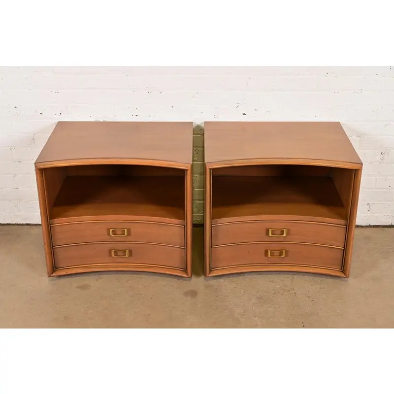 Paul Frankl for Johnson Furniture Mid-Century Modern Concave Walnut Nightstands, Circa 1950s