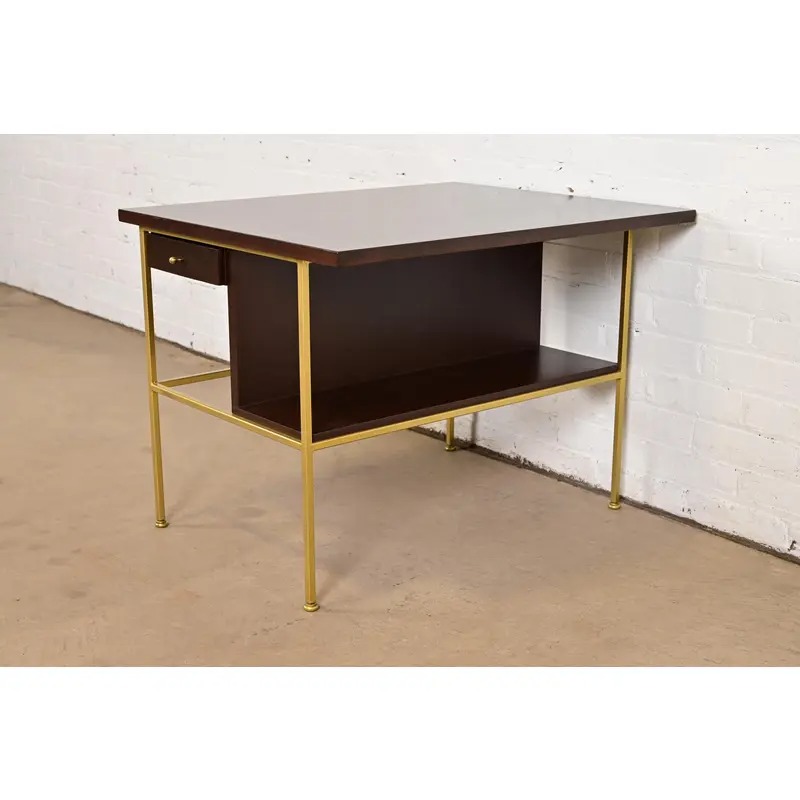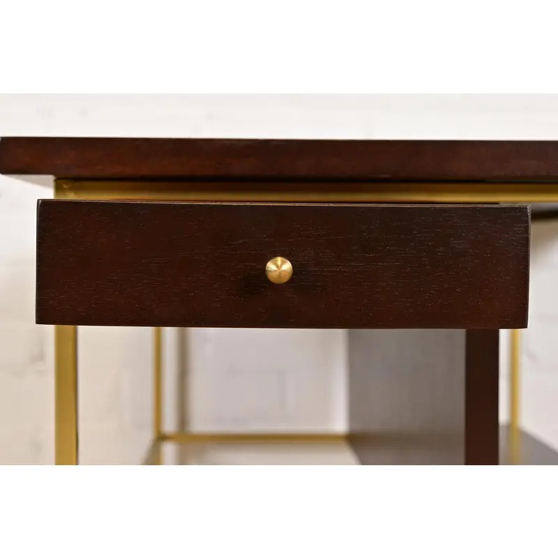 Paul McCobb Irwin Collection Mahogany and Brass Nightstand or End Table, Newly Refinished
