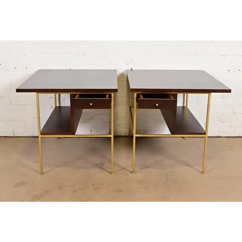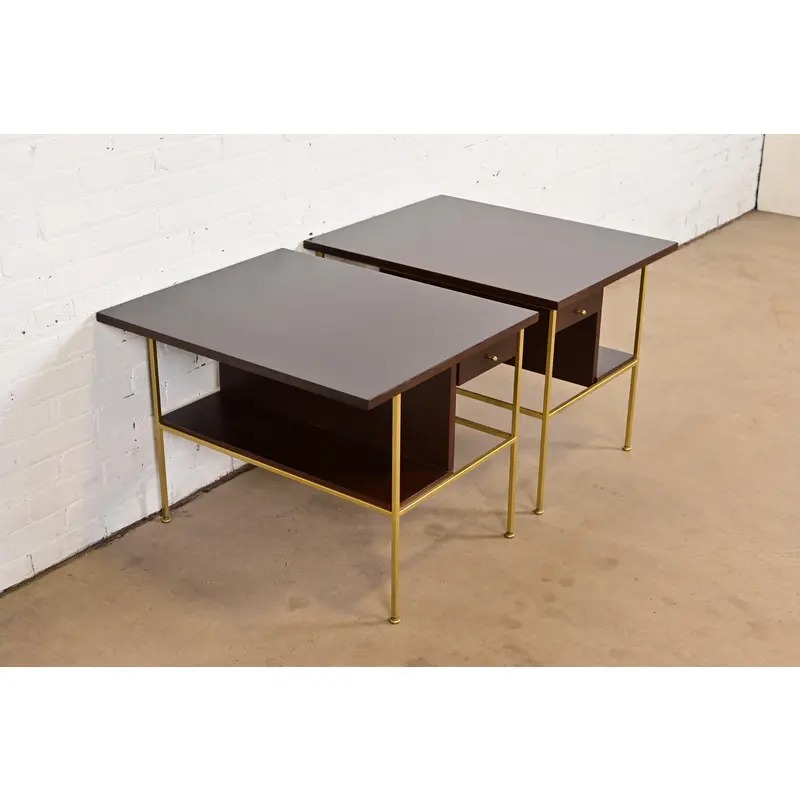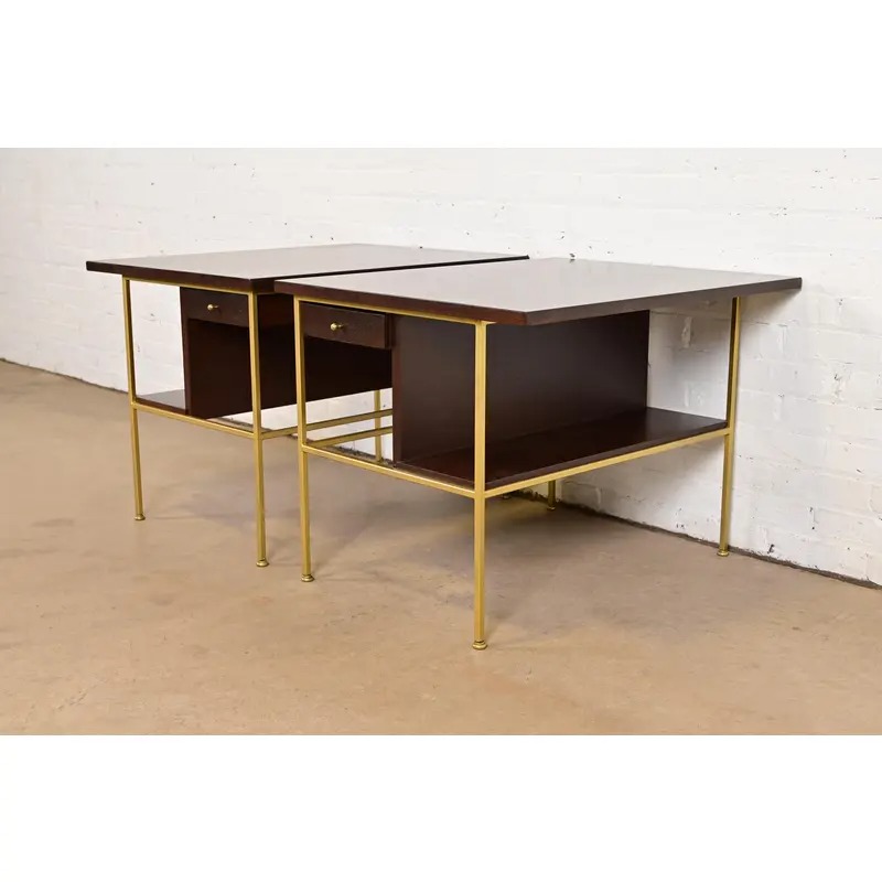 Paul McCobb Irwin Collection Mahogany and Brass Nightstands or End Tables, Newly Refinished