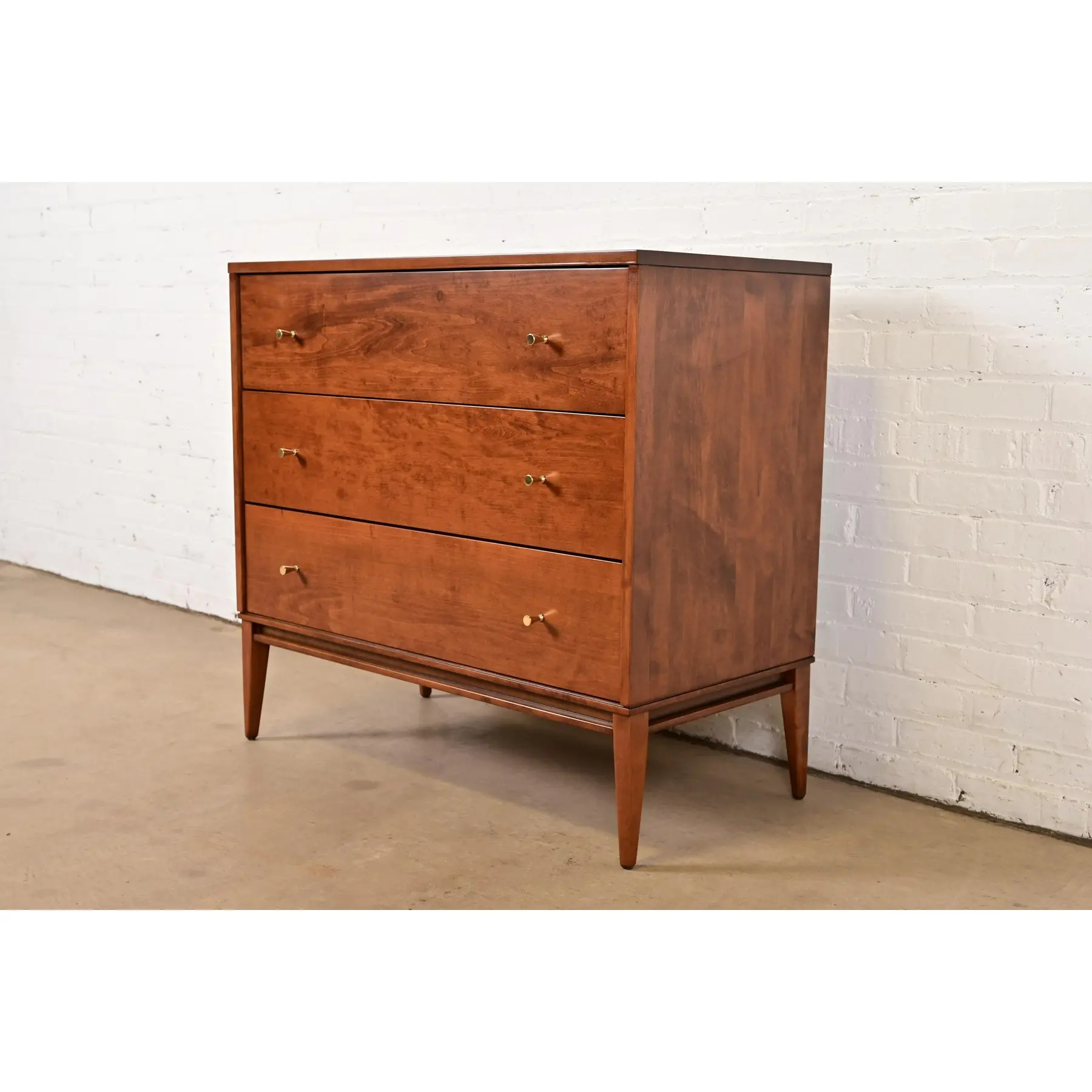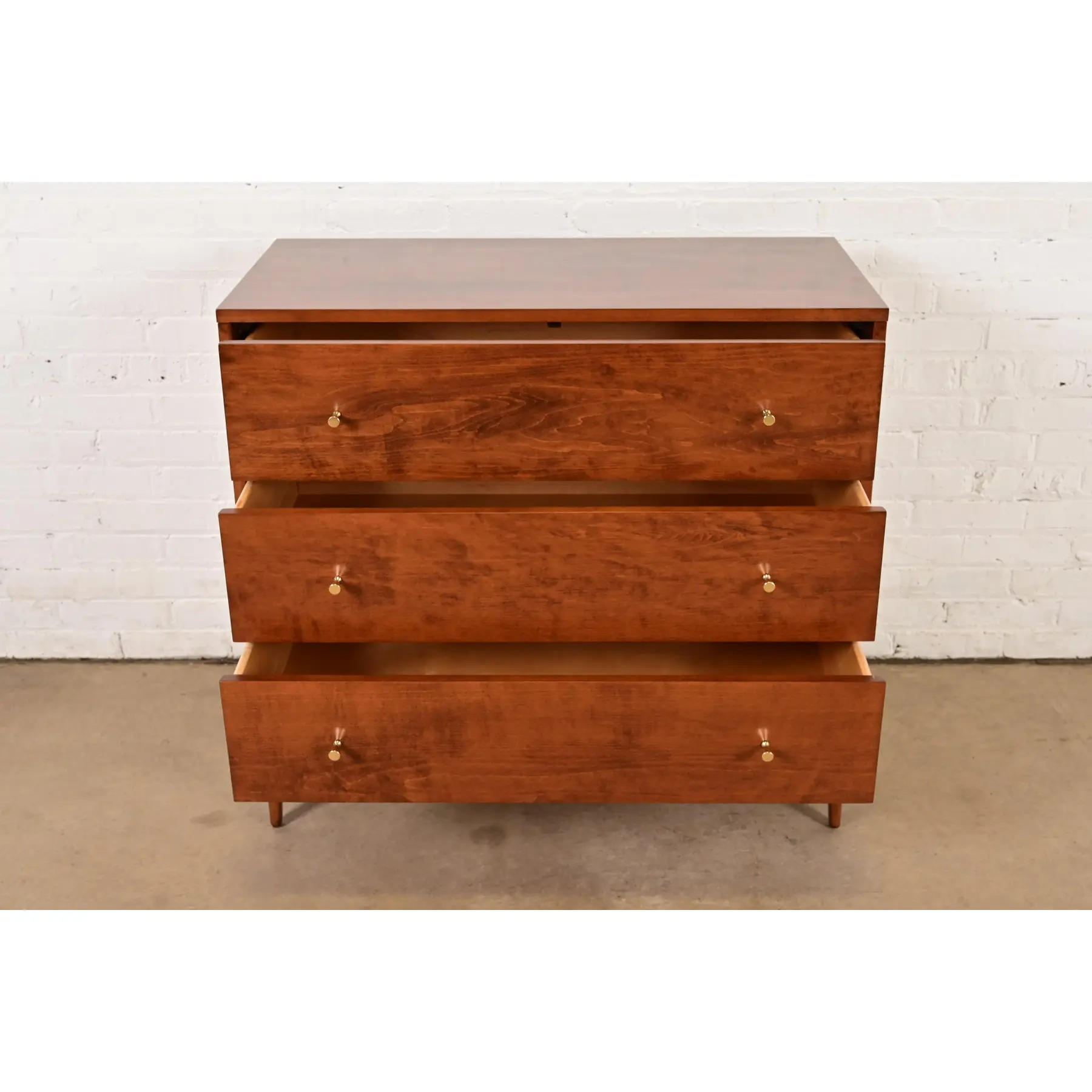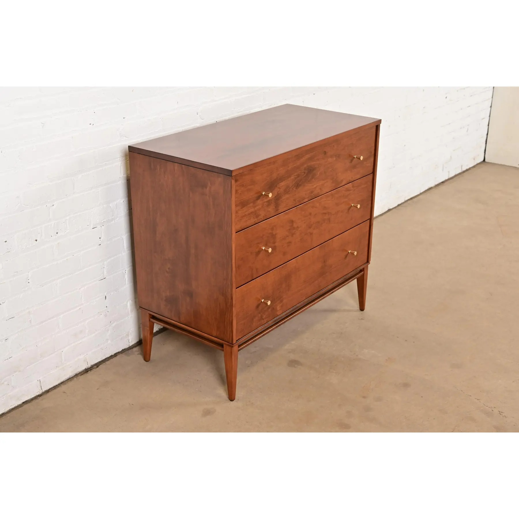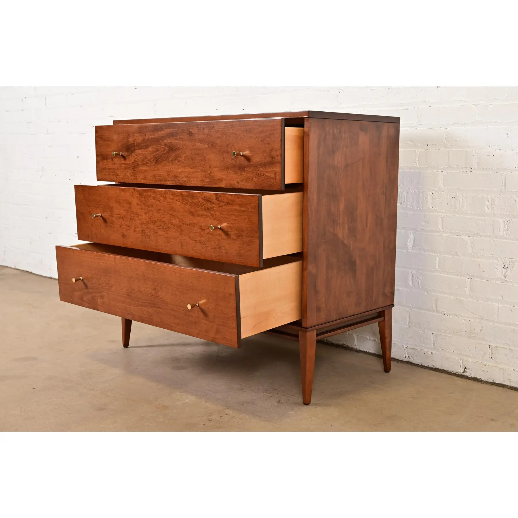 A sleek and stylish Mid-Century Modern three-drawer dresser or chest of drawers