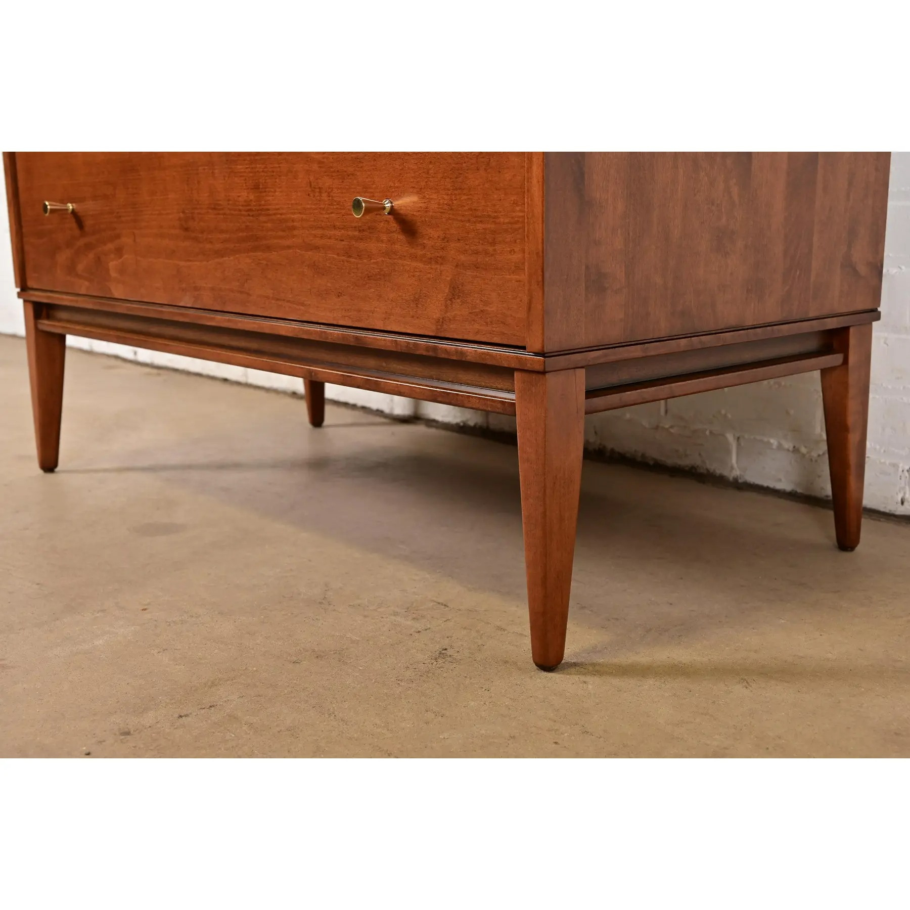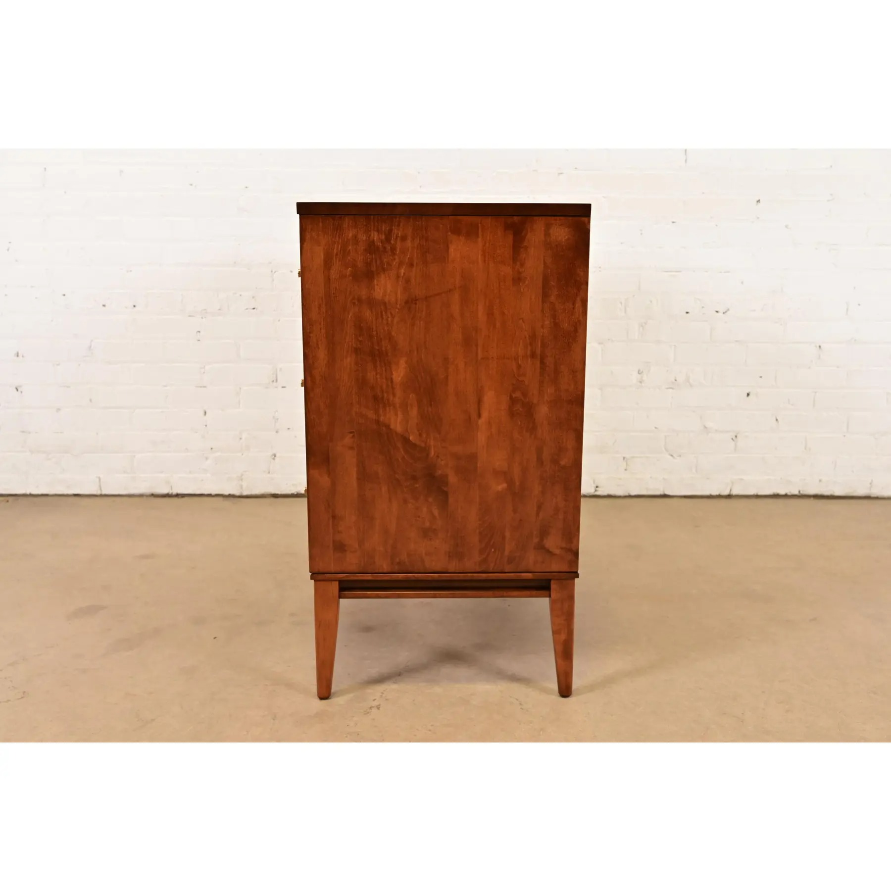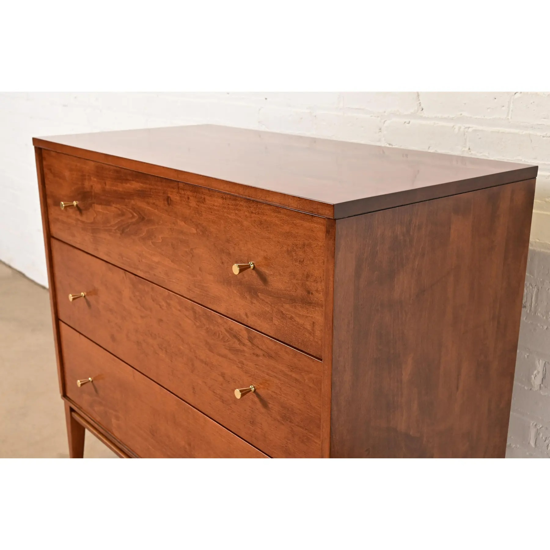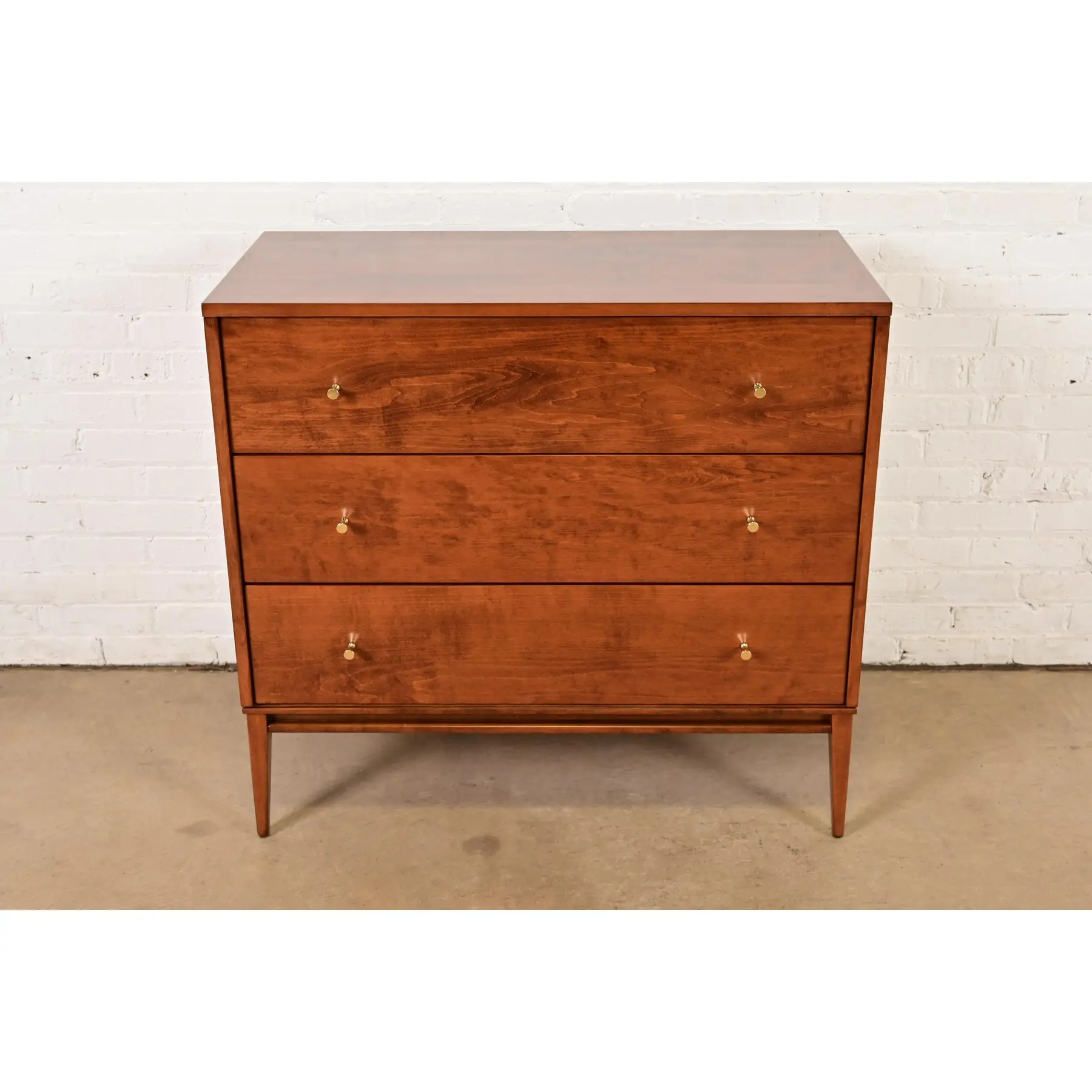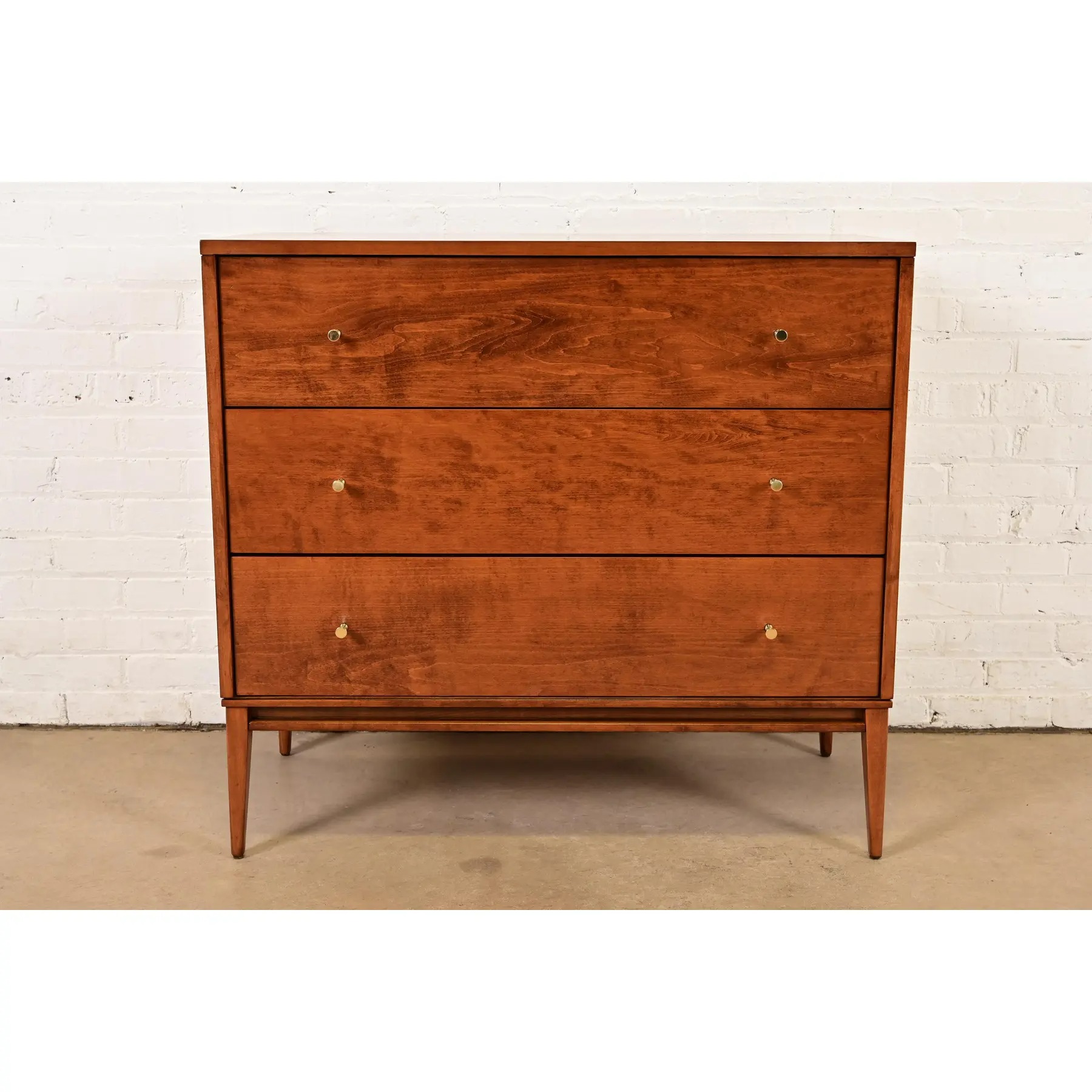 A sleek and stylish Mid-Century Modern three-drawer dresser or chest of drawers