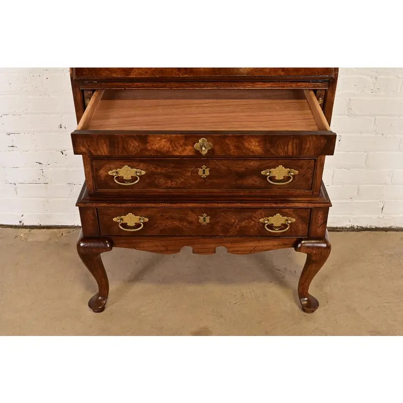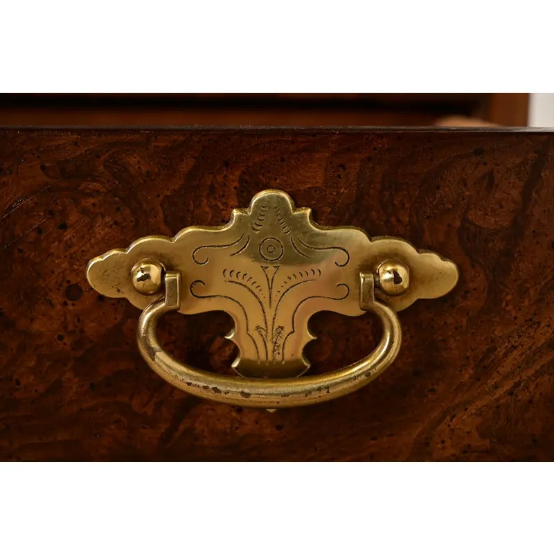 Beautiful burled walnut, with original brass hardware.