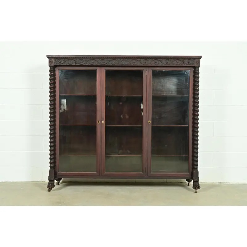 An outstanding antique American Empire or Victorian triple bookcase or display cabinet