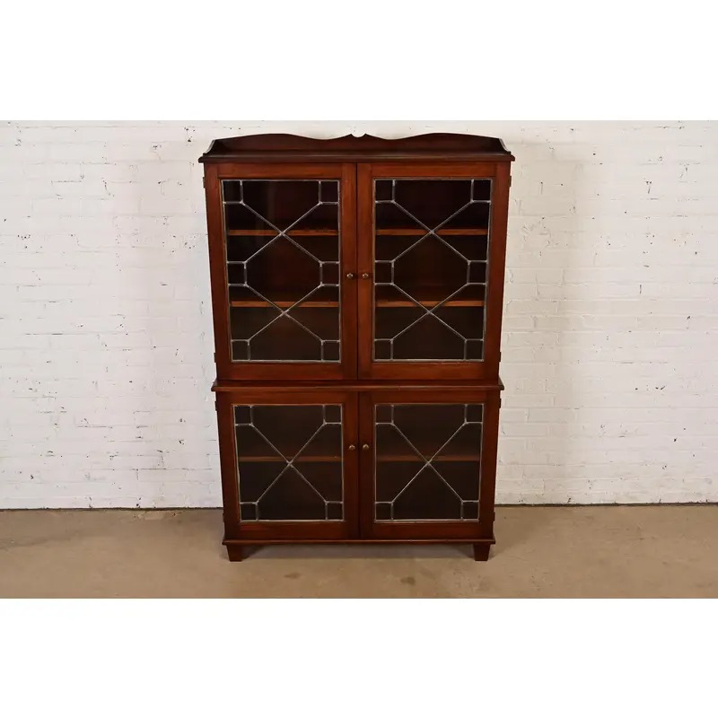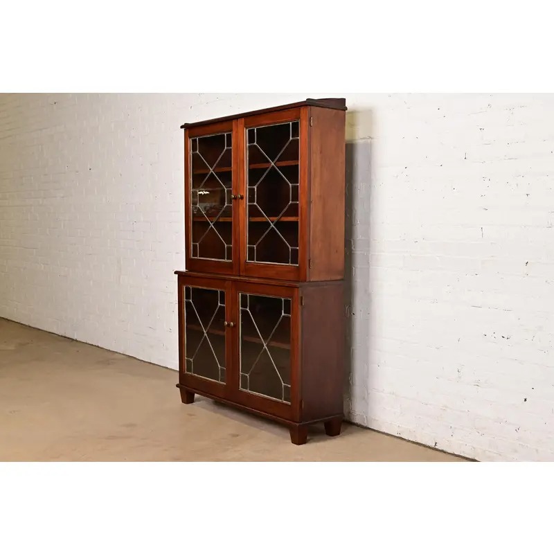 R. J. Horner Style Antique Arts & Crafts Mahogany Leaded Glass Bookcase, Circa 1920s