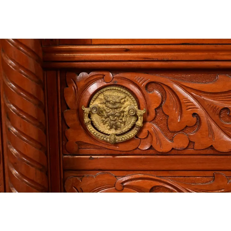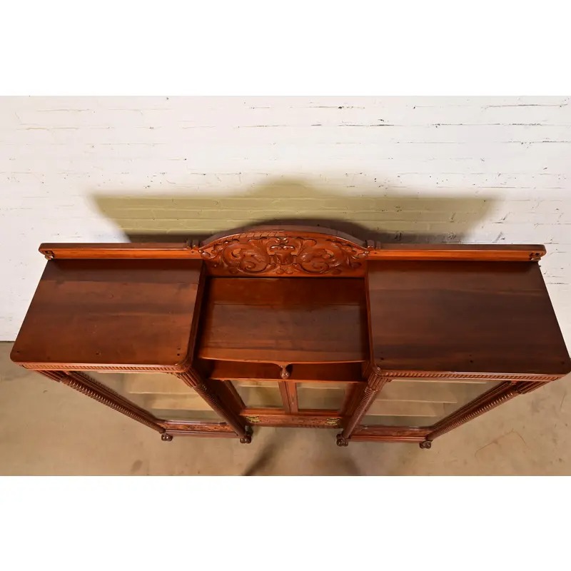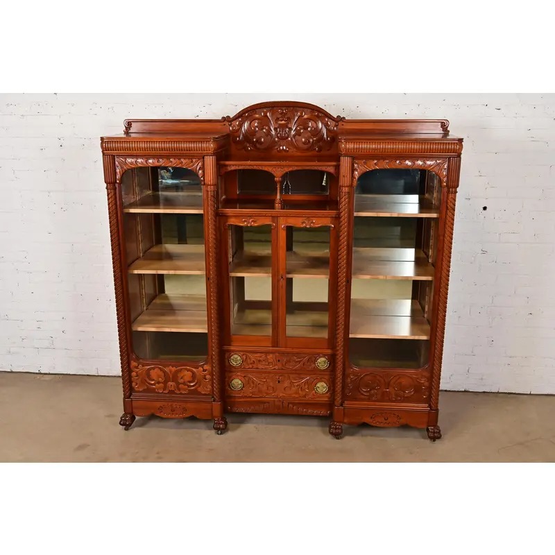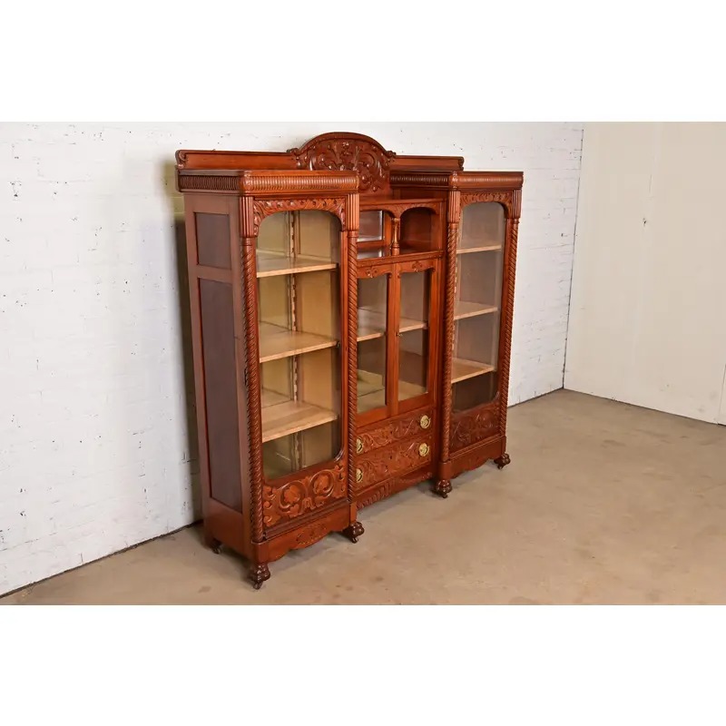 An exceptional antique Victorian or Renaissance Revival triple bookcase, display cabinet, or bar cabinet