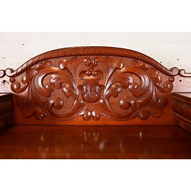 R. J. Horner Style Antique Victorian Carved Cherry Wood Triple Bookcase, Circa 1880s