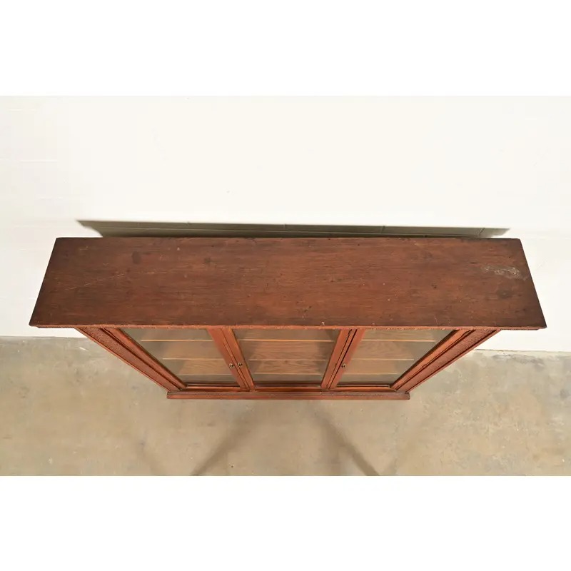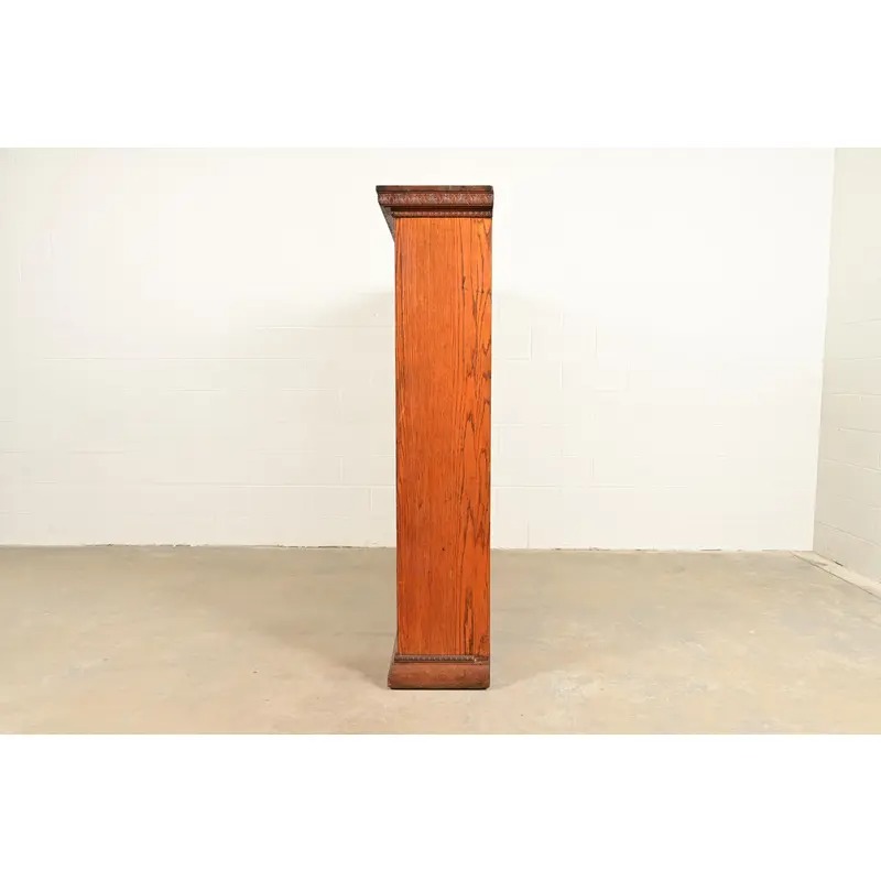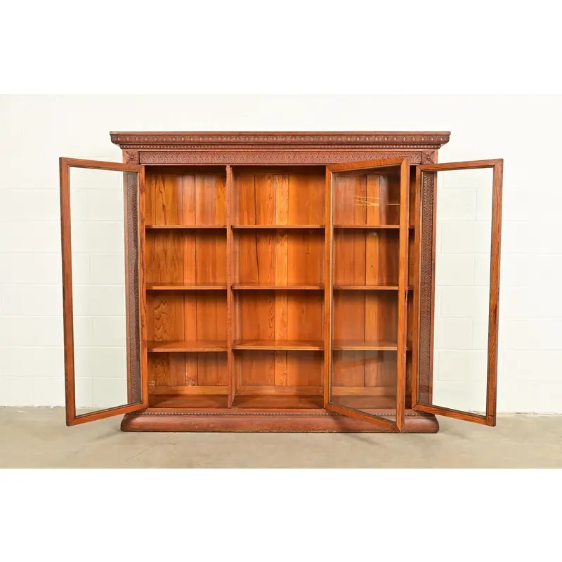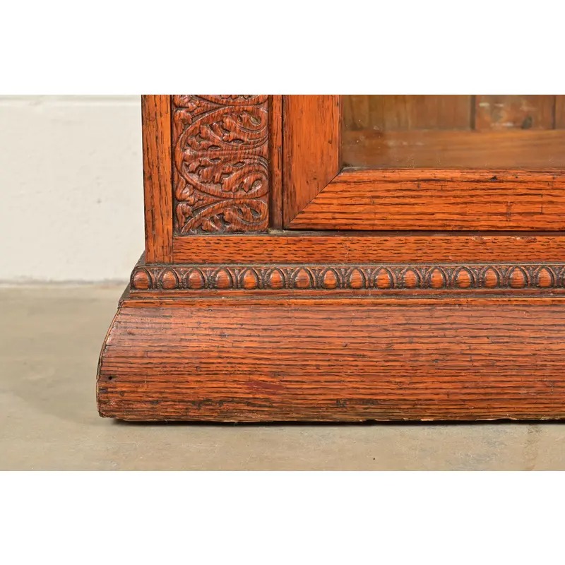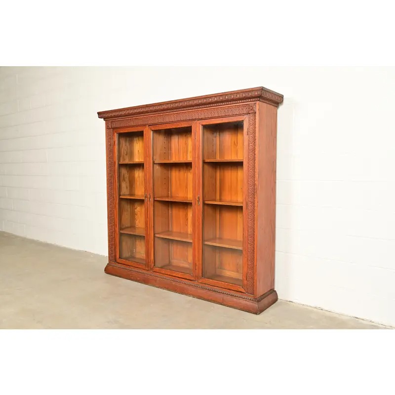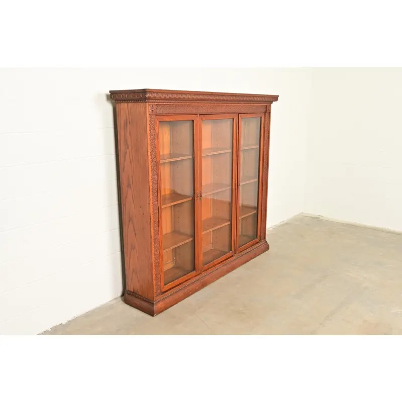 R. J. Horner Style Antique Victorian Carved Oak Triple Bookcase Cabinet, Circa 1880s