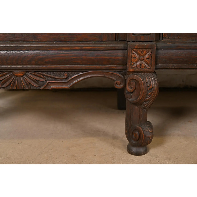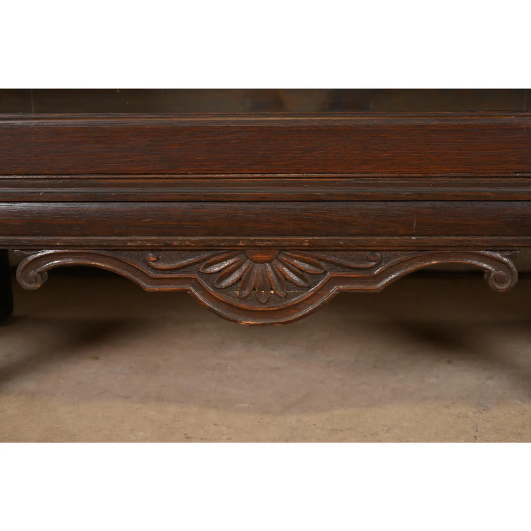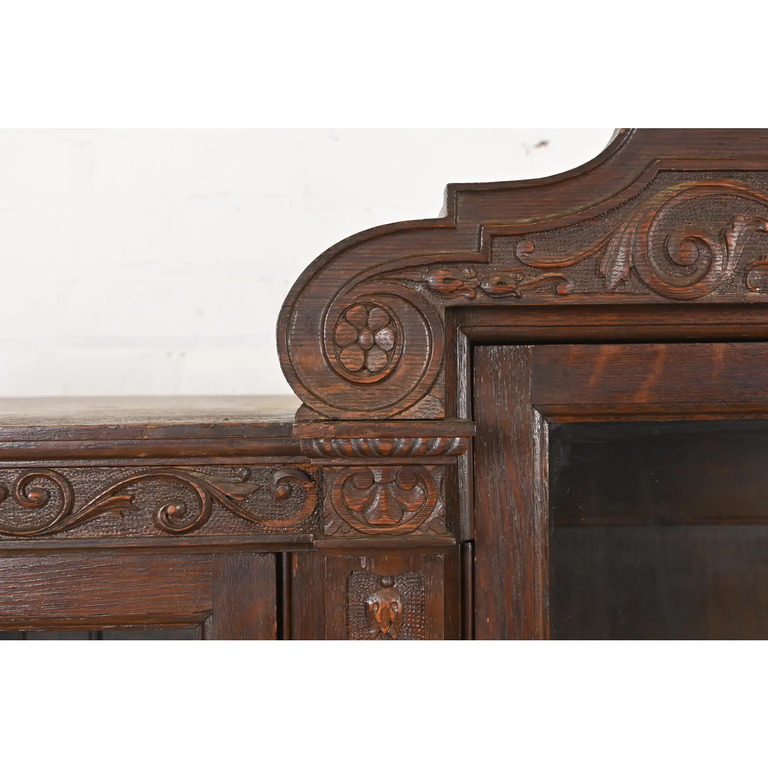 R. J. Horner Style Antique Victorian Carved Oak Triple Bookcase, Circa 1890s