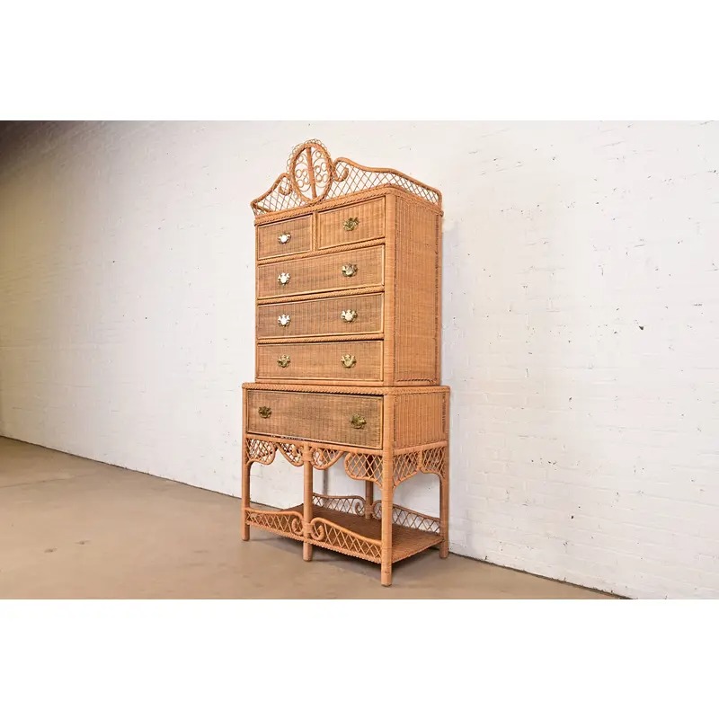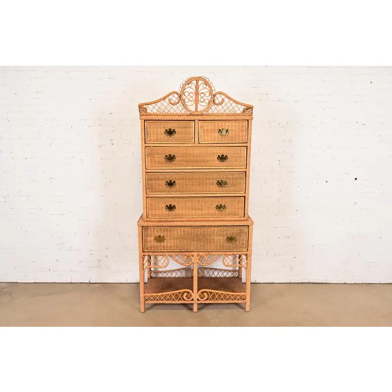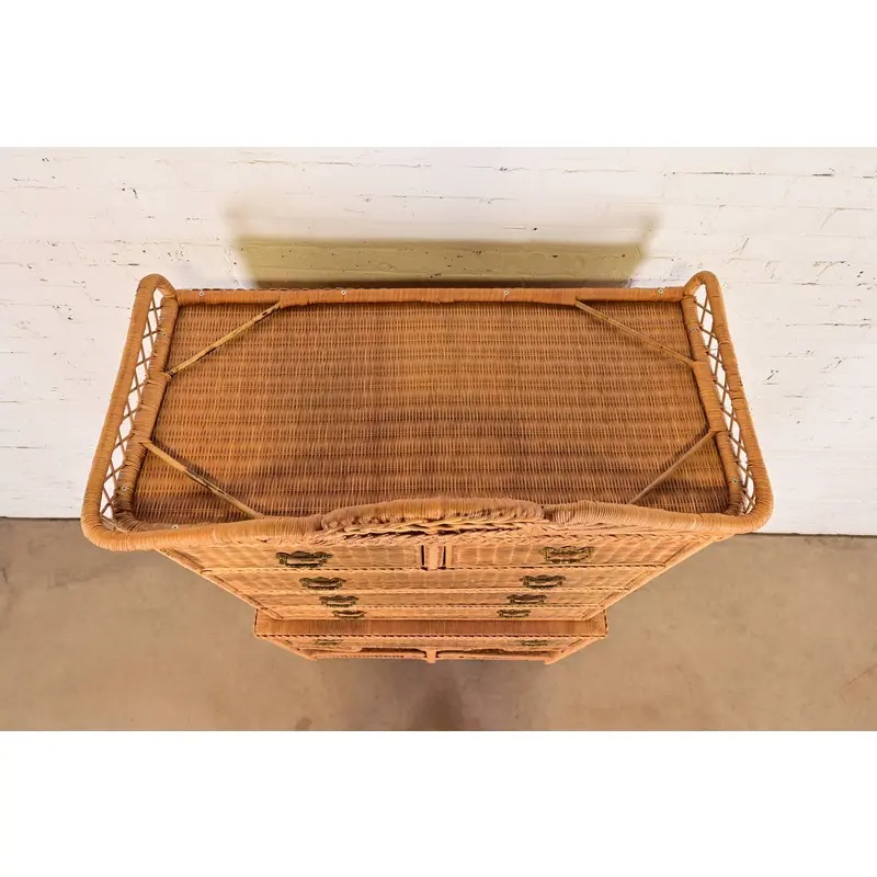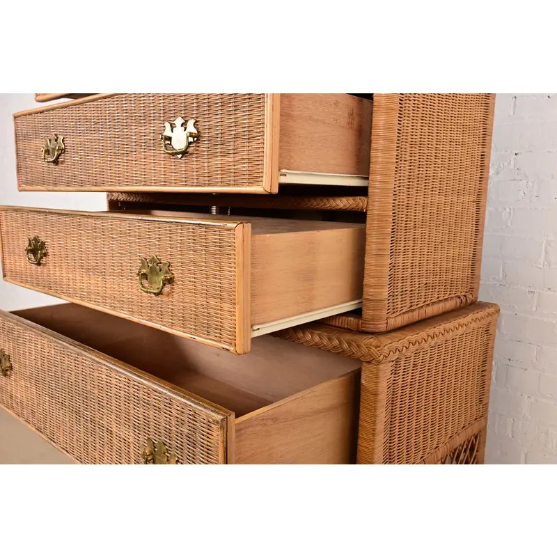 Ralph Lauren Safari Collection Organic Modern Woven Wicker Rattan Highboy Dresser