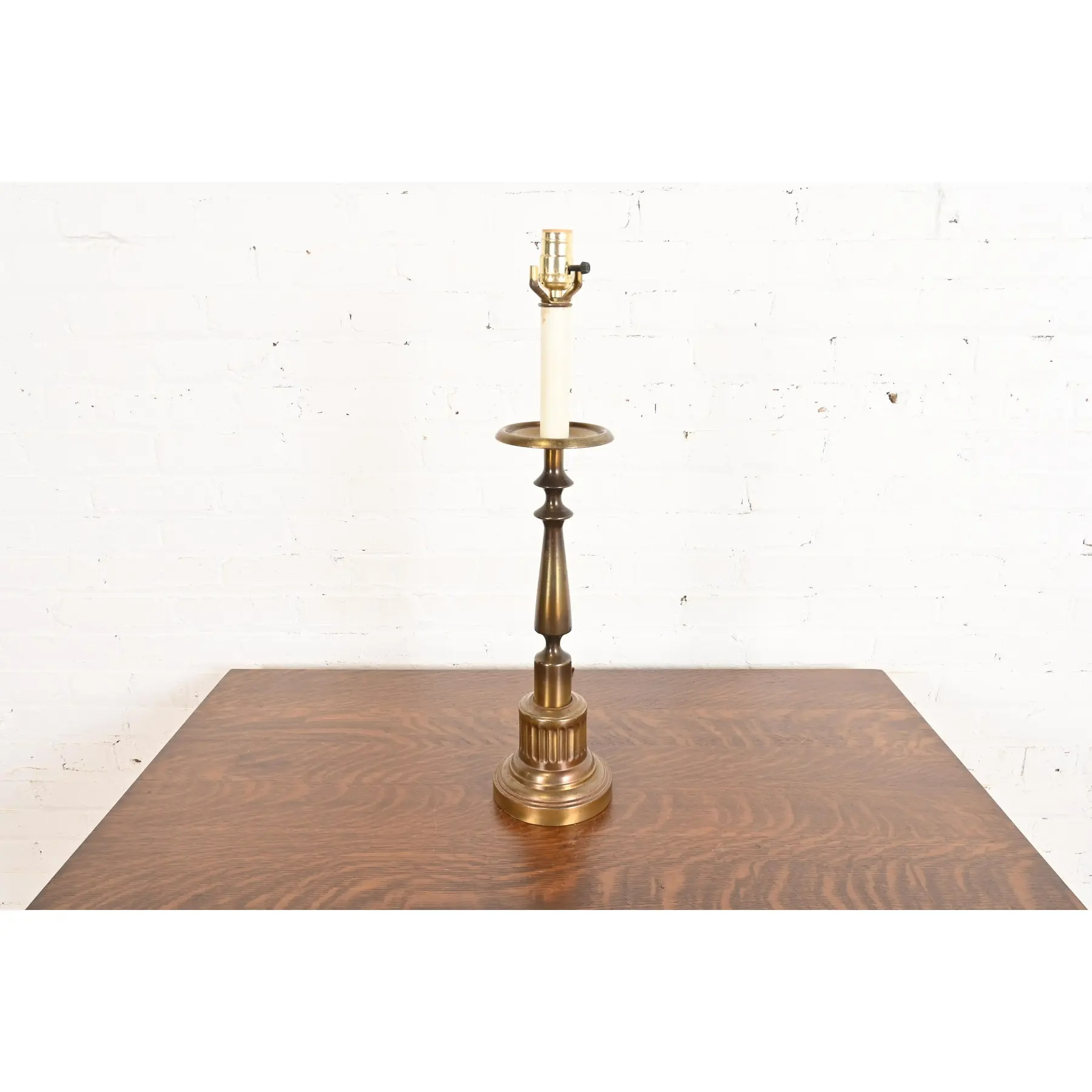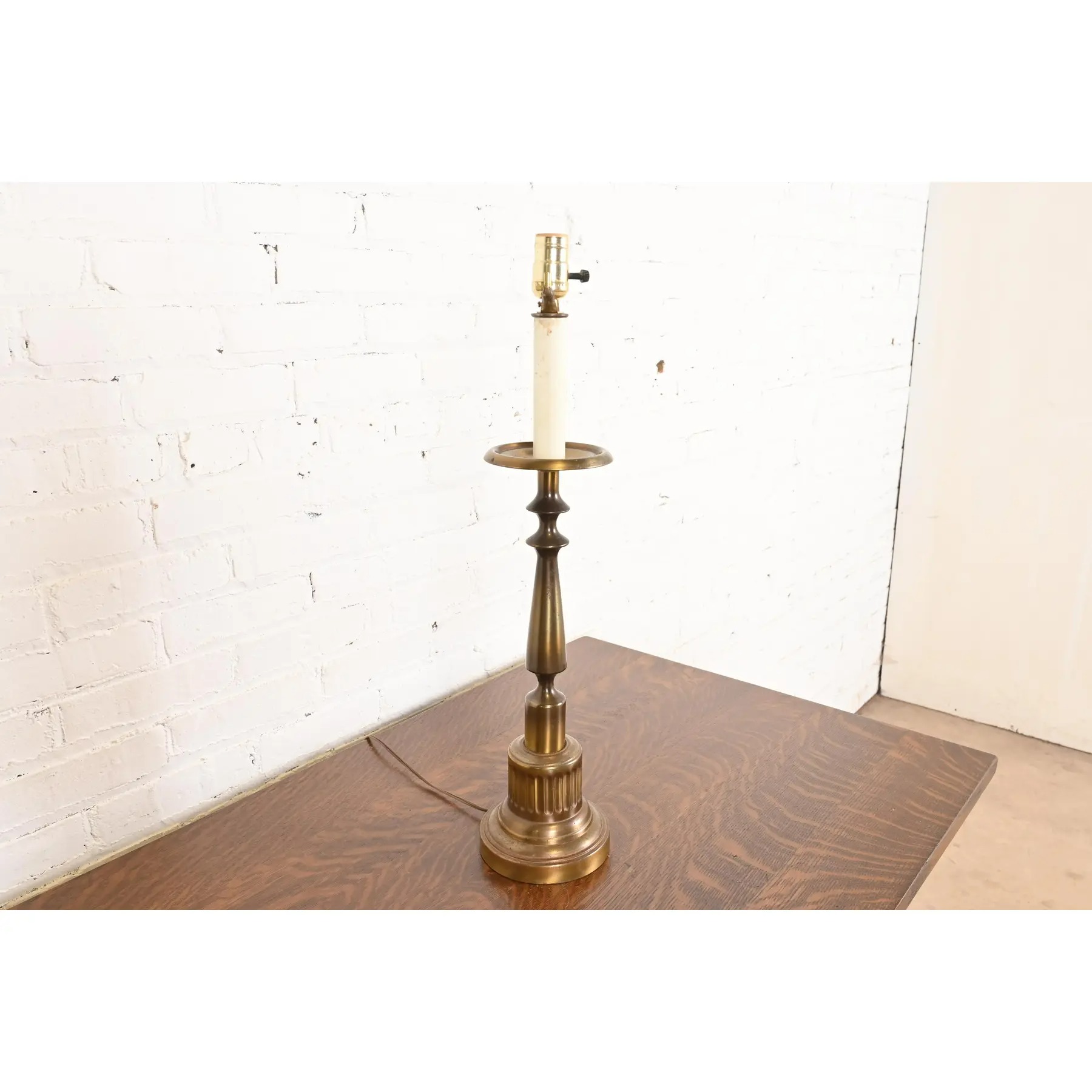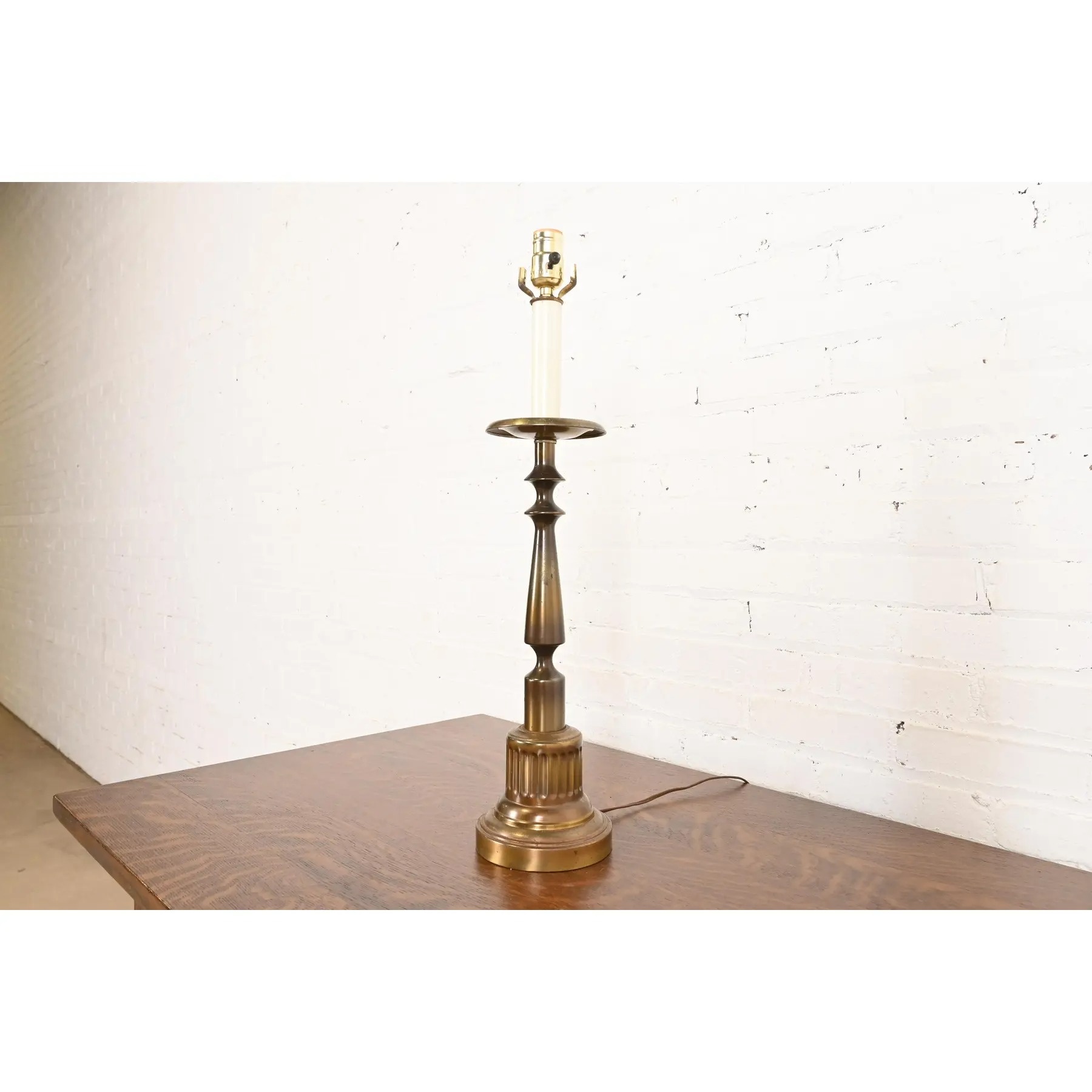 Ralph Lauren Style Mid-Century Hollywood Regency Brass Candlestick Table Lamp