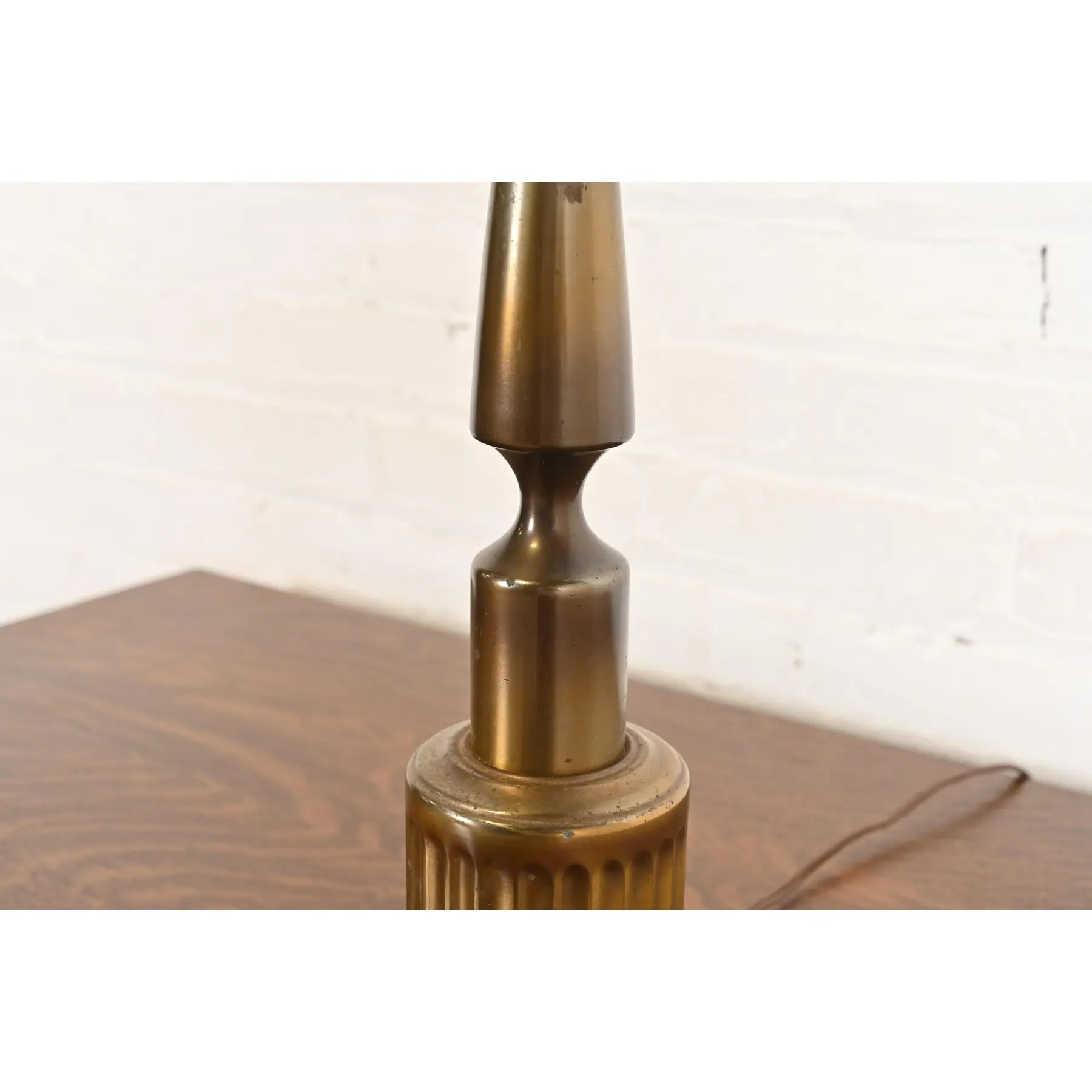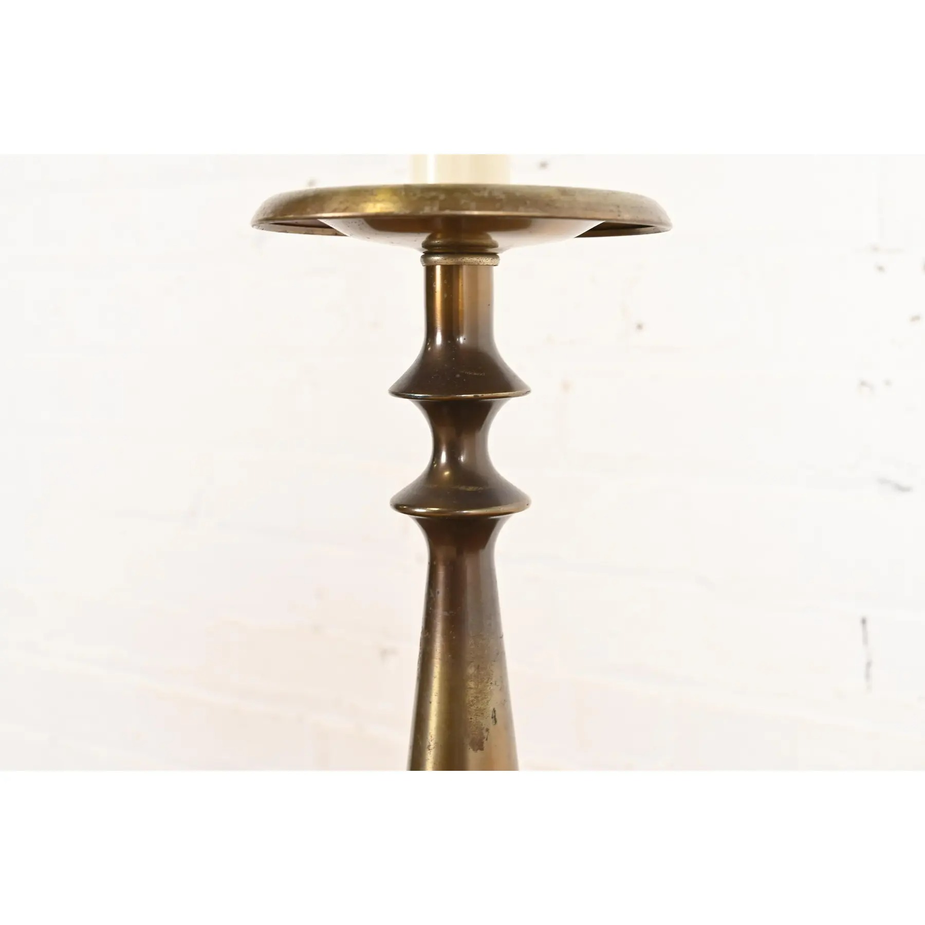 An exceptional Mid-Century Modern Hollywood Regency brass candlestick table lamp