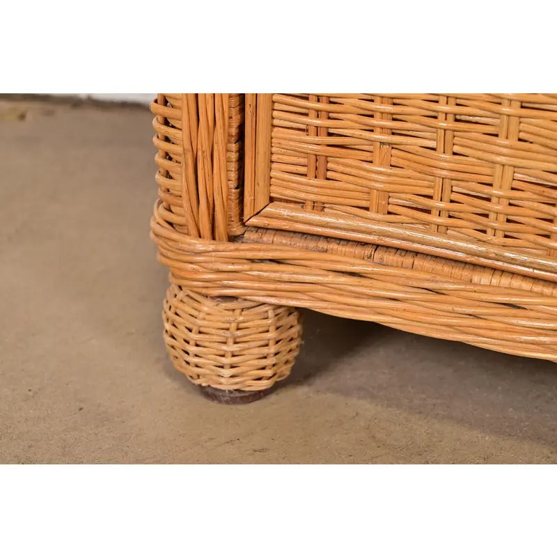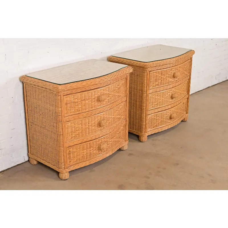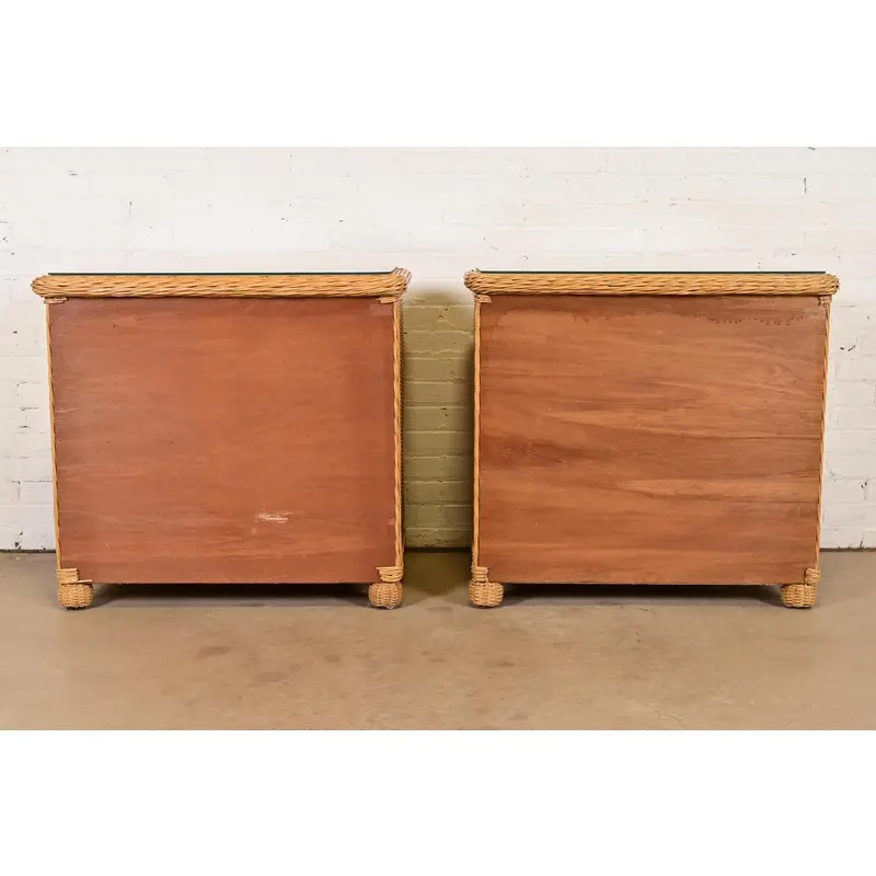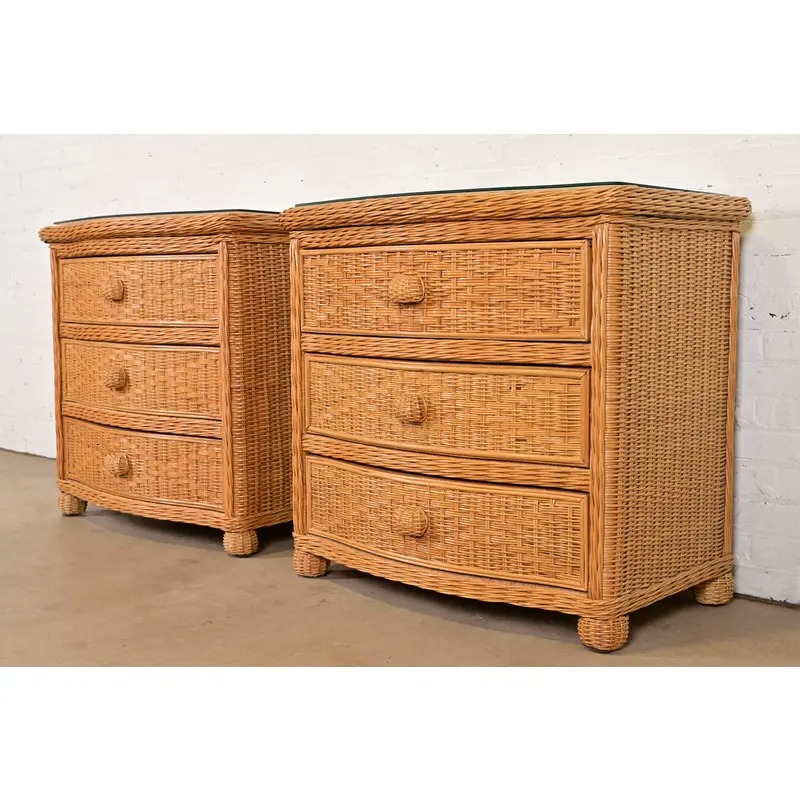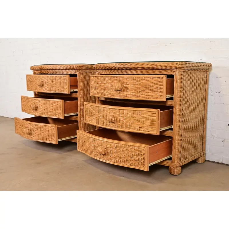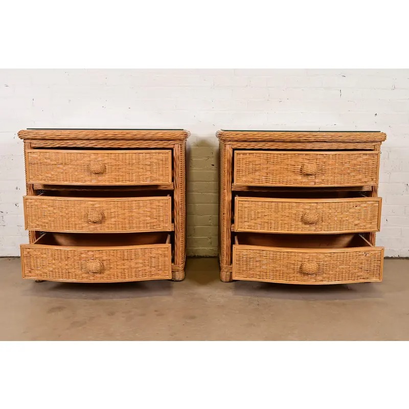 Woven wicker rattan, with glass tops.