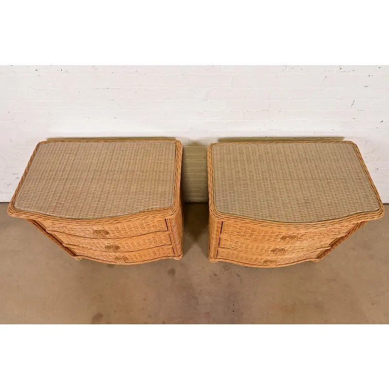 A gorgeous pair of Organic Modern three-drawer nightstands or chests of drawers