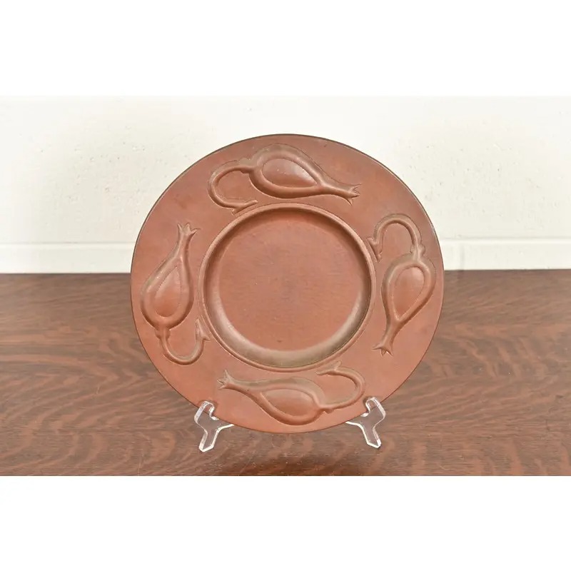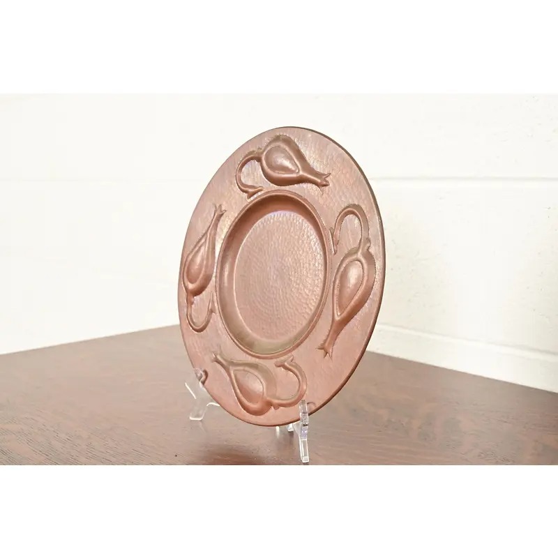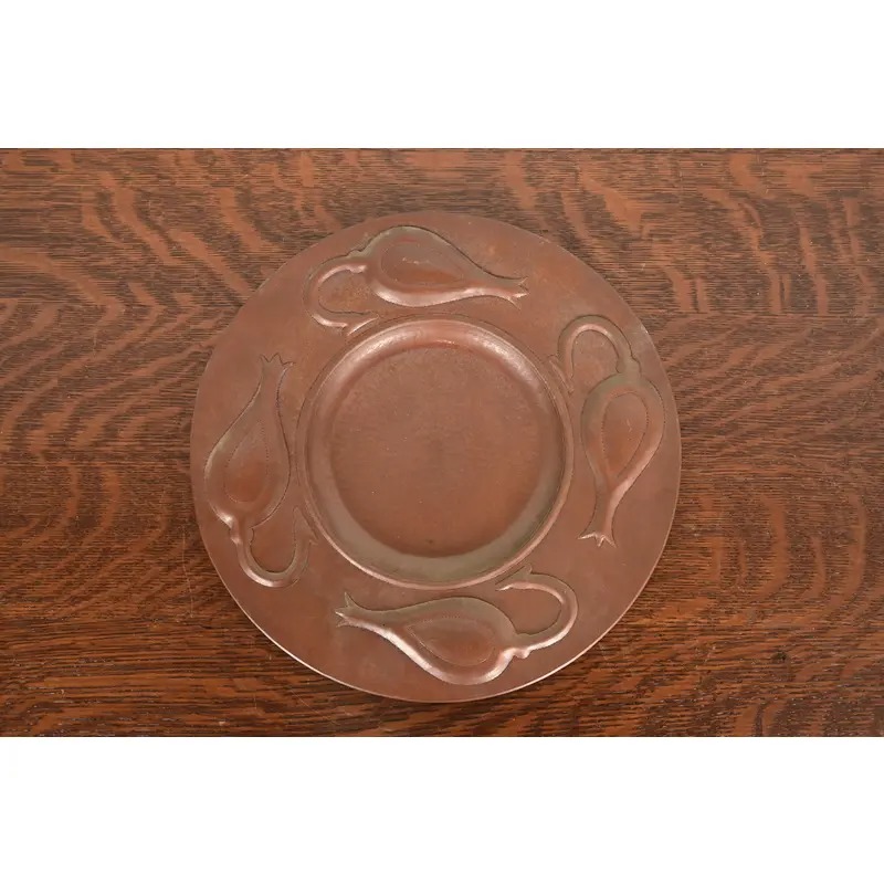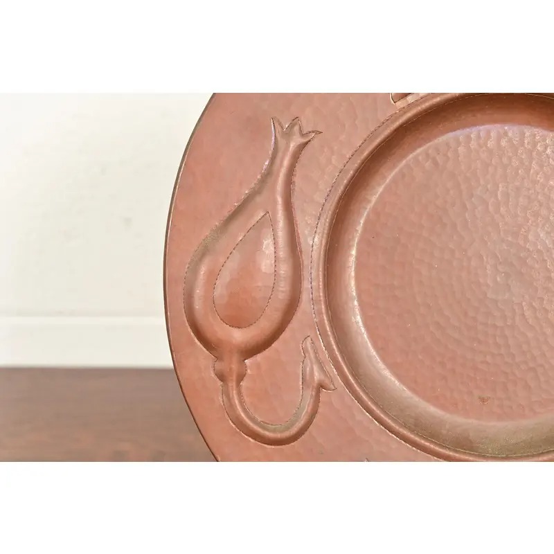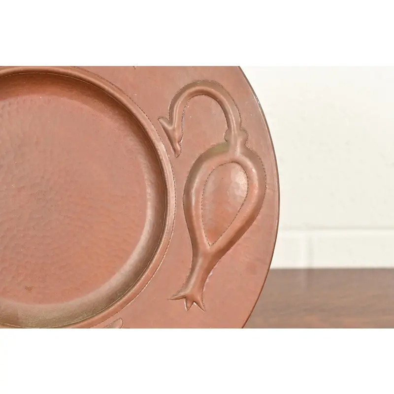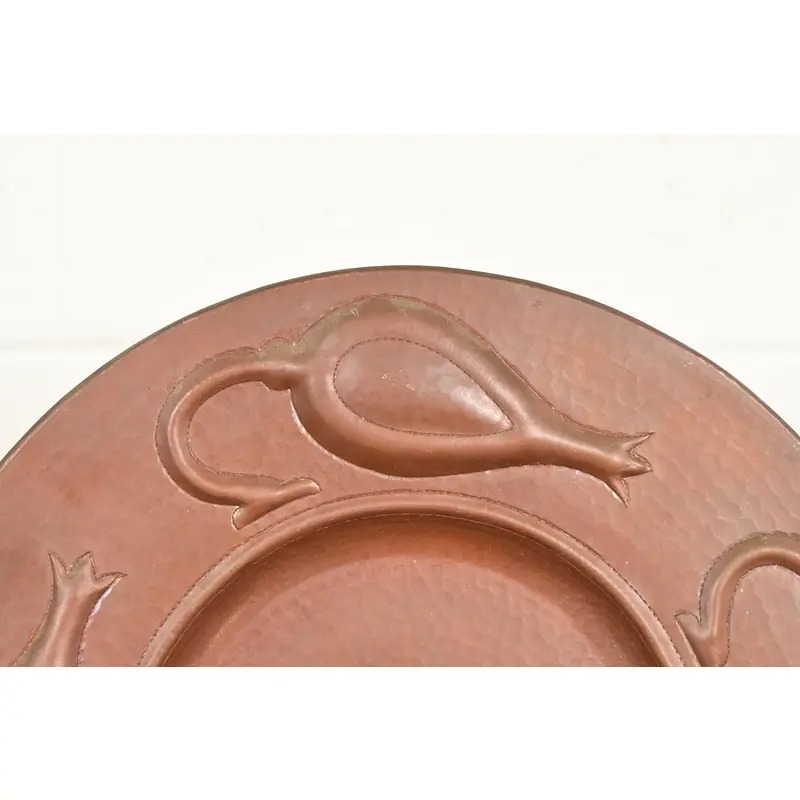 A gorgeous Arts & Crafts hammered copper charger plate or tray