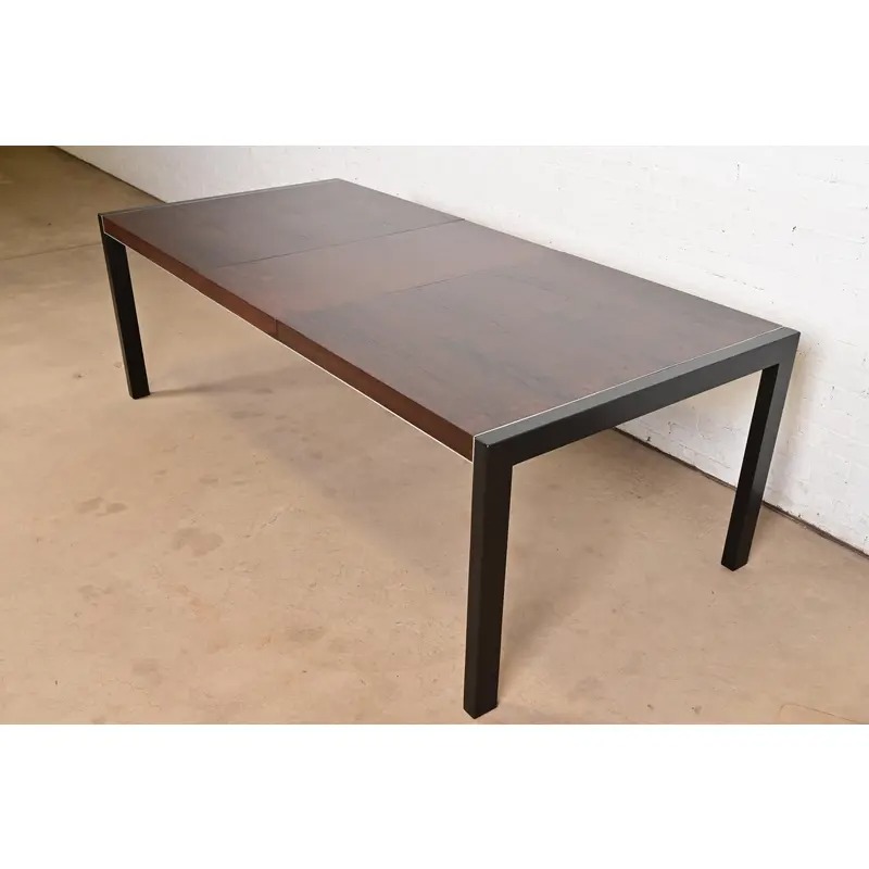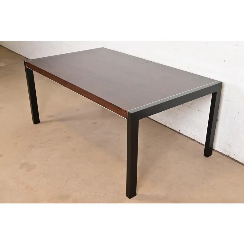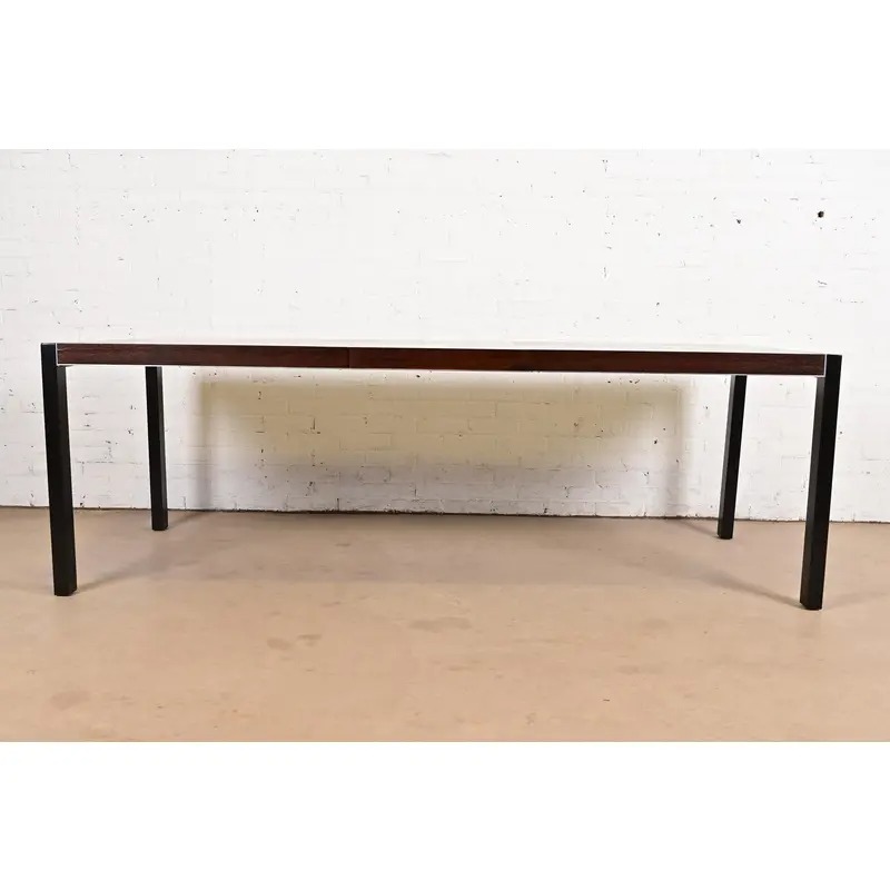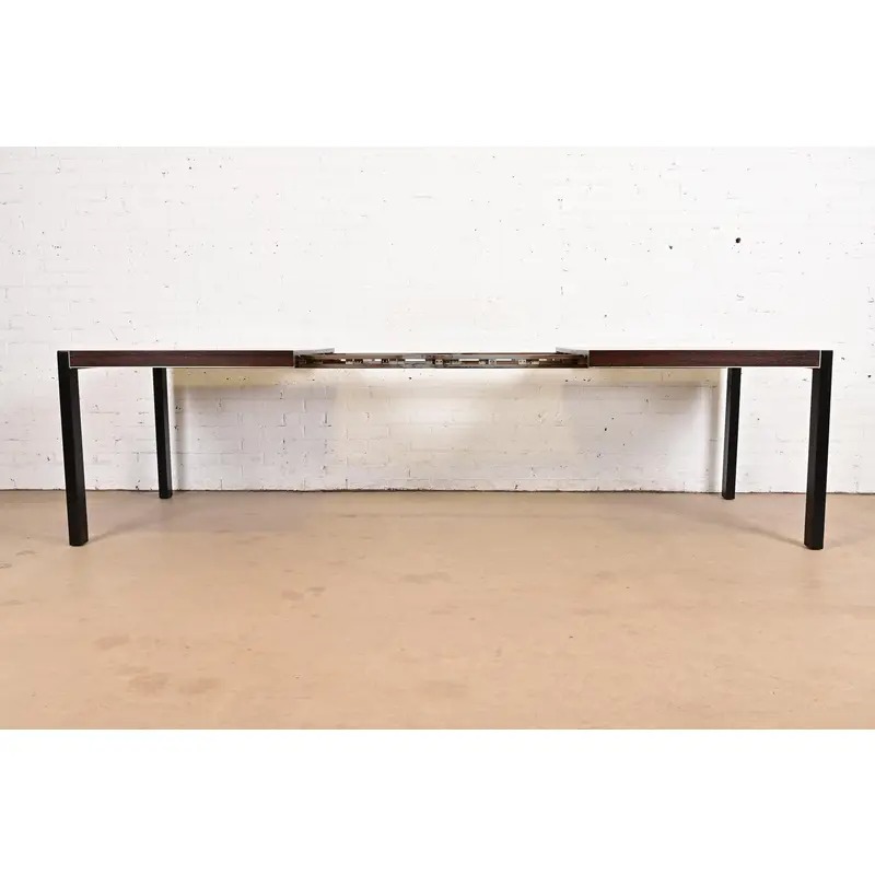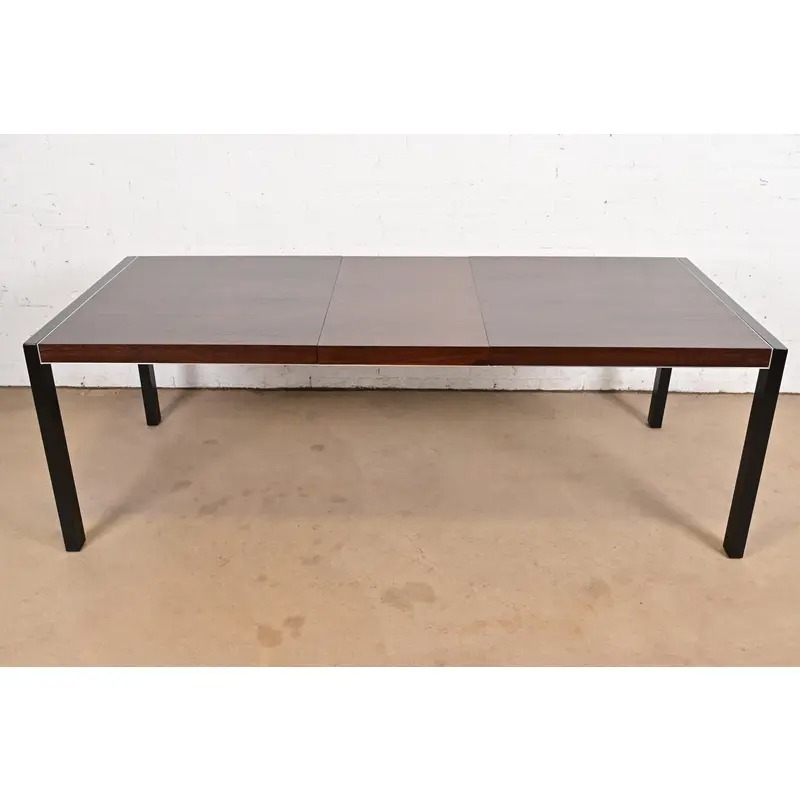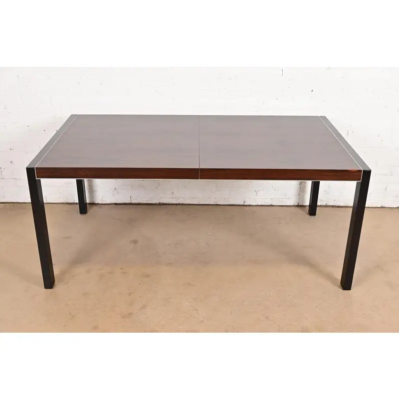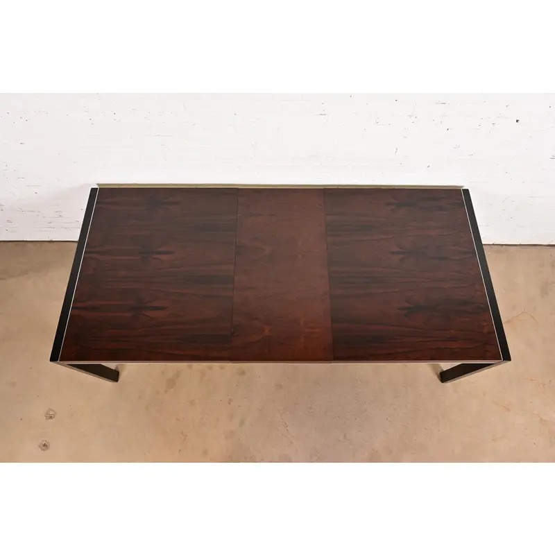 Stunning book-matched Brazilian rosewood, with ebonized legs and chrome trim.