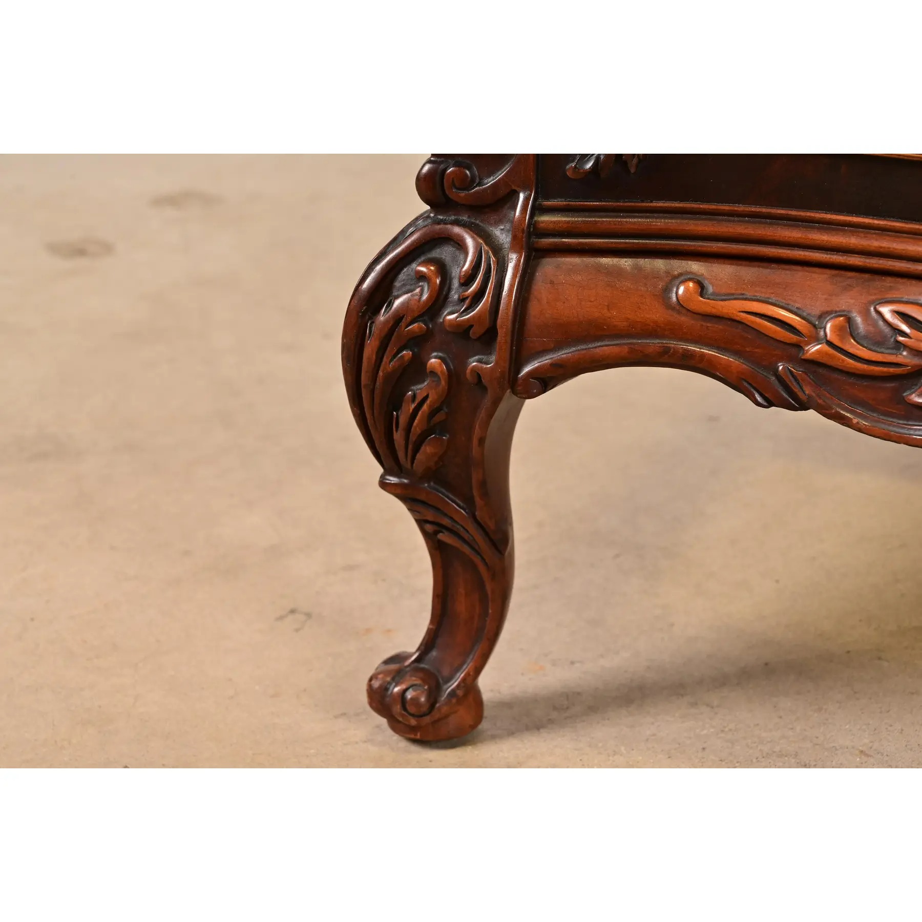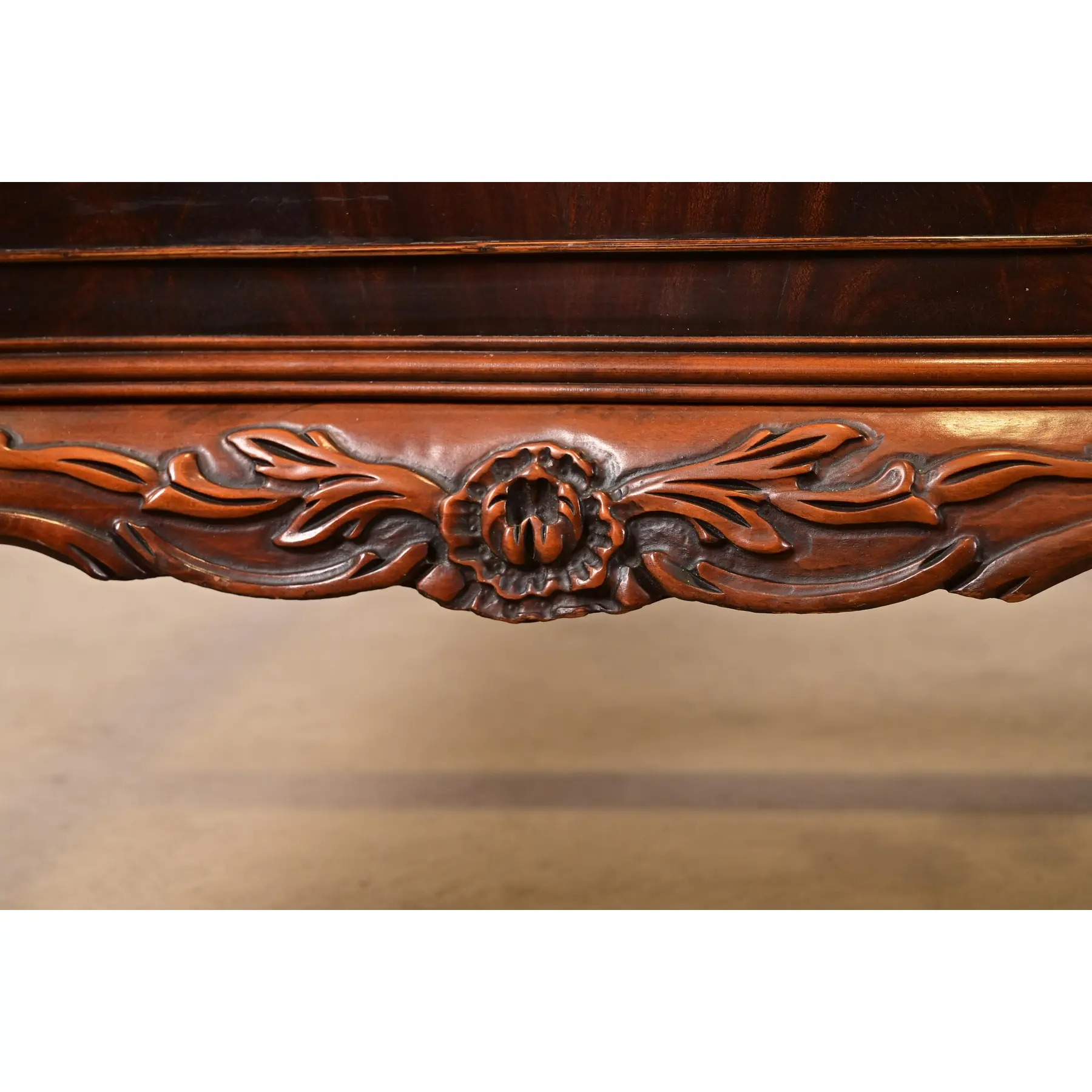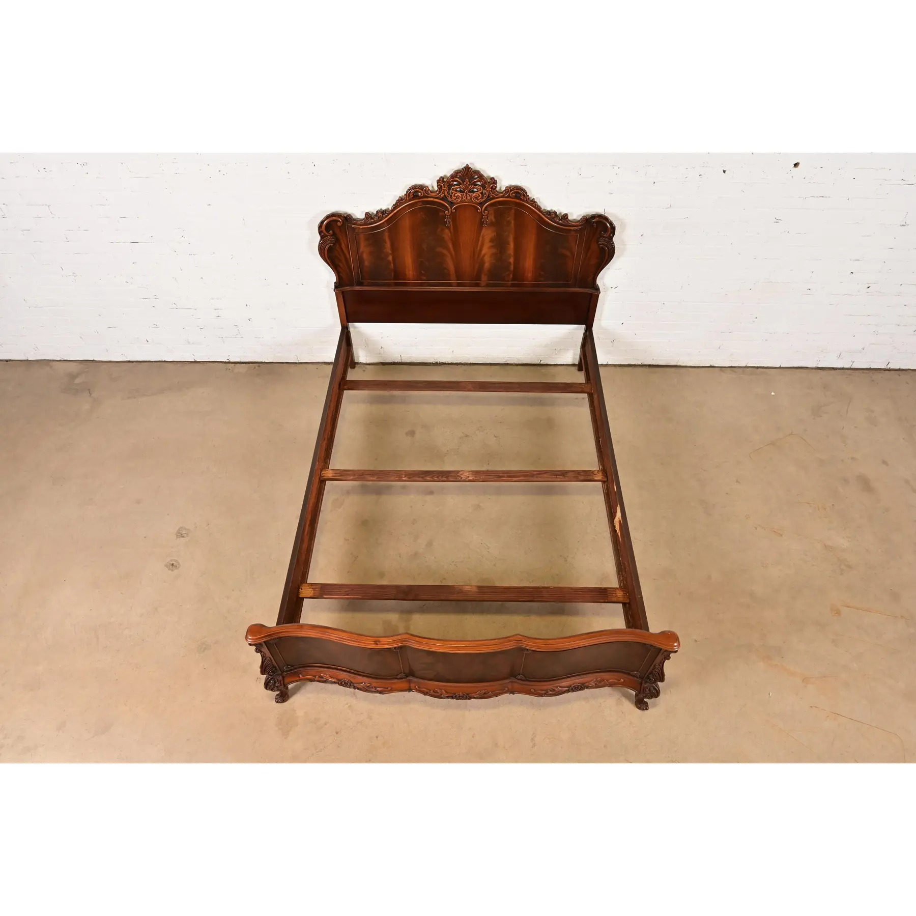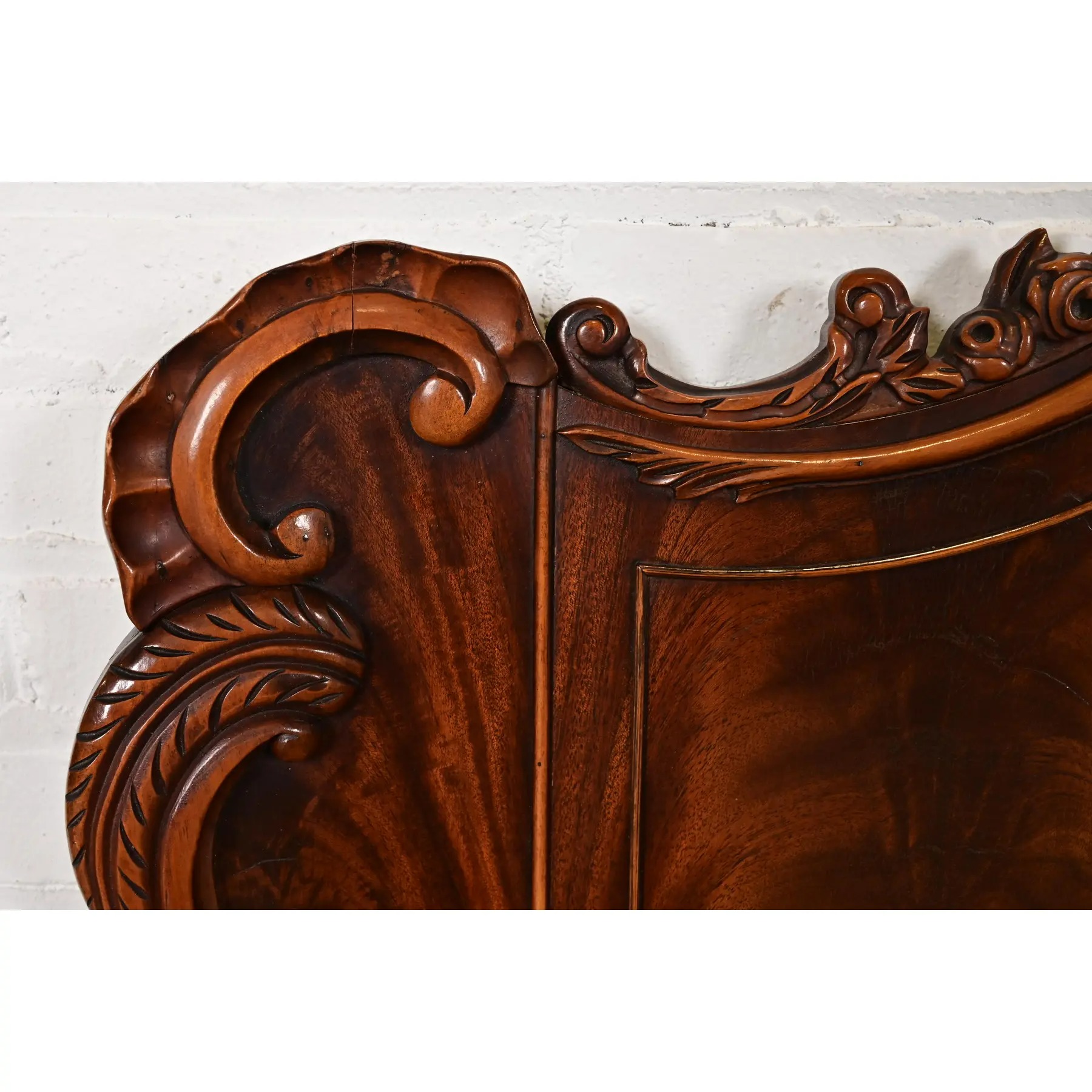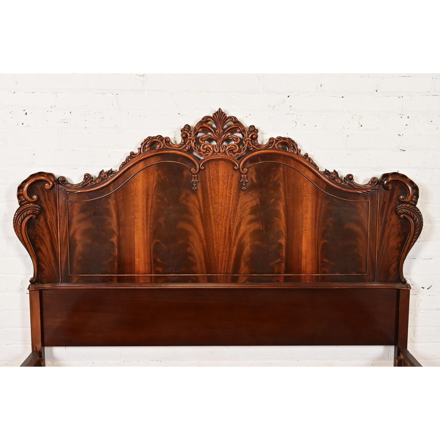 Romweber Antique French Provincial Louis XV Carved Flame Mahogany Full Size Bed, Circa 1920s