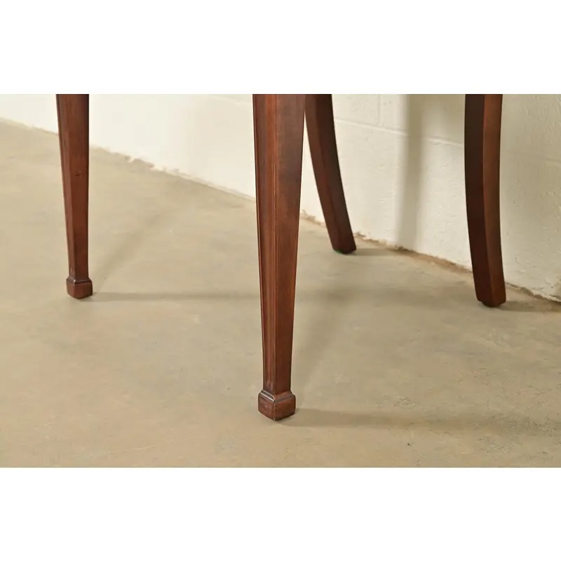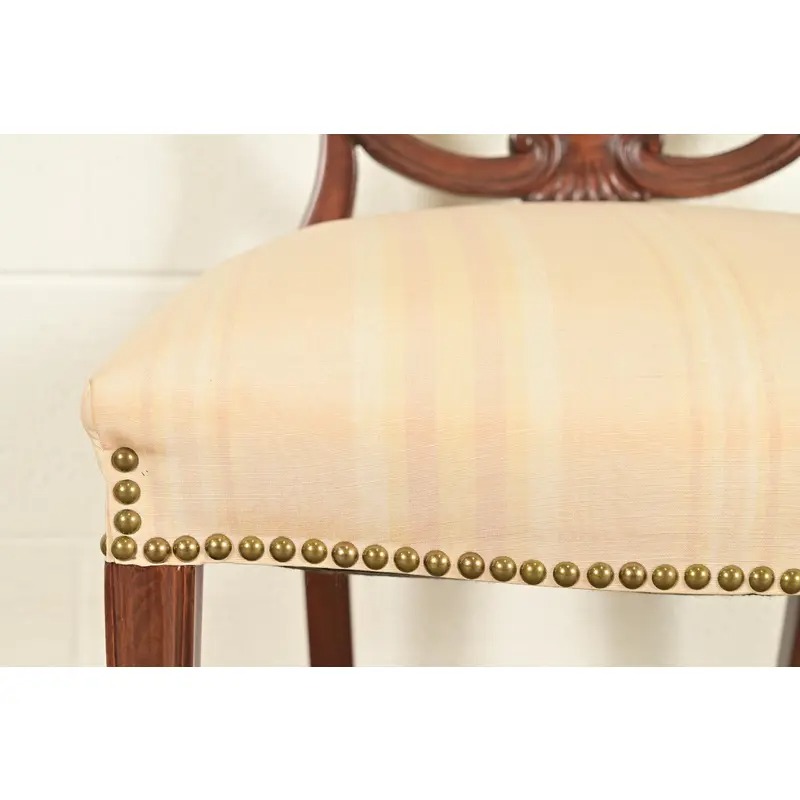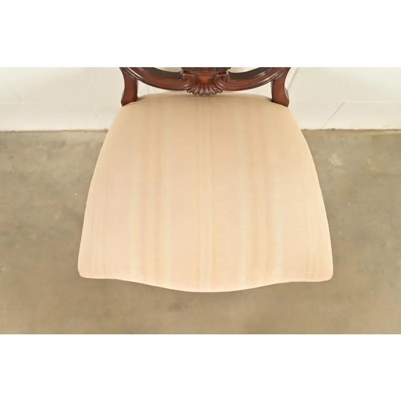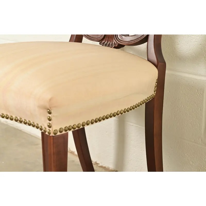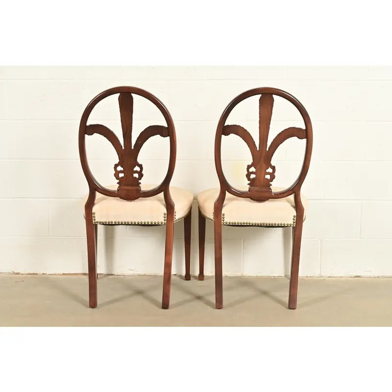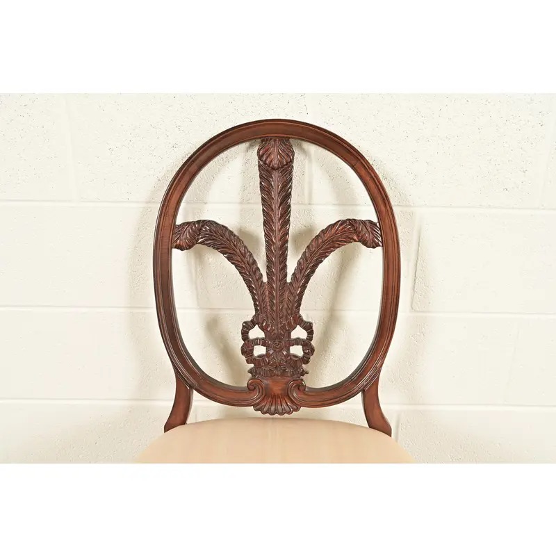 Solid carved mahogany frames, with brass studded upholstered seats.