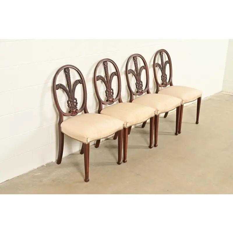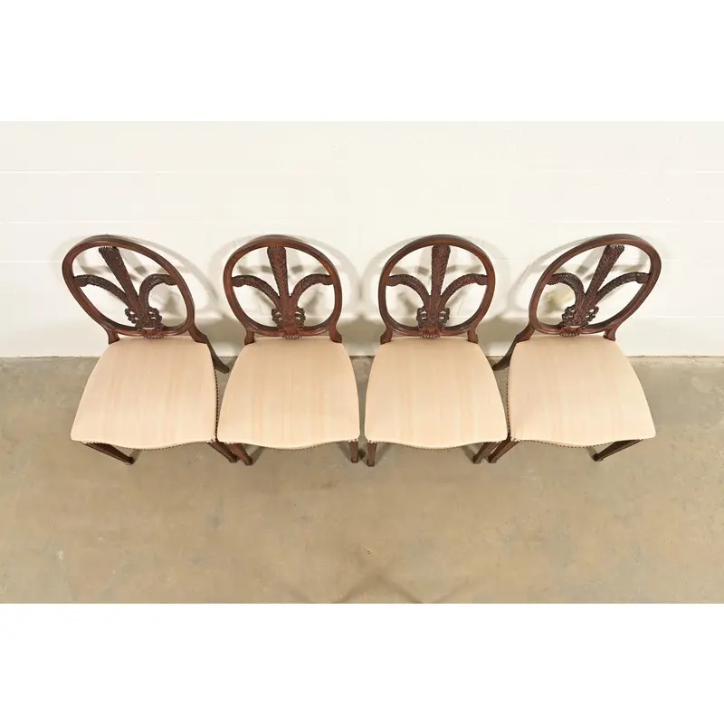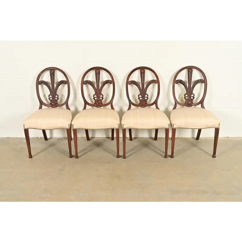 A gorgeous set of four antique French Regency Louis XVI style side chairs or dining chairs