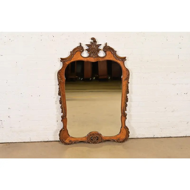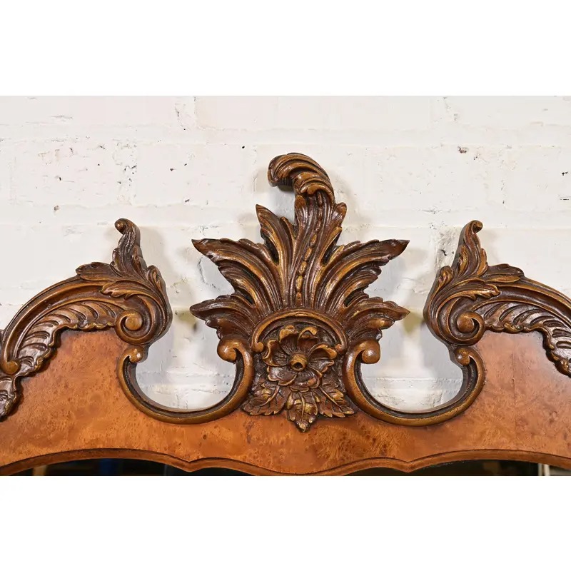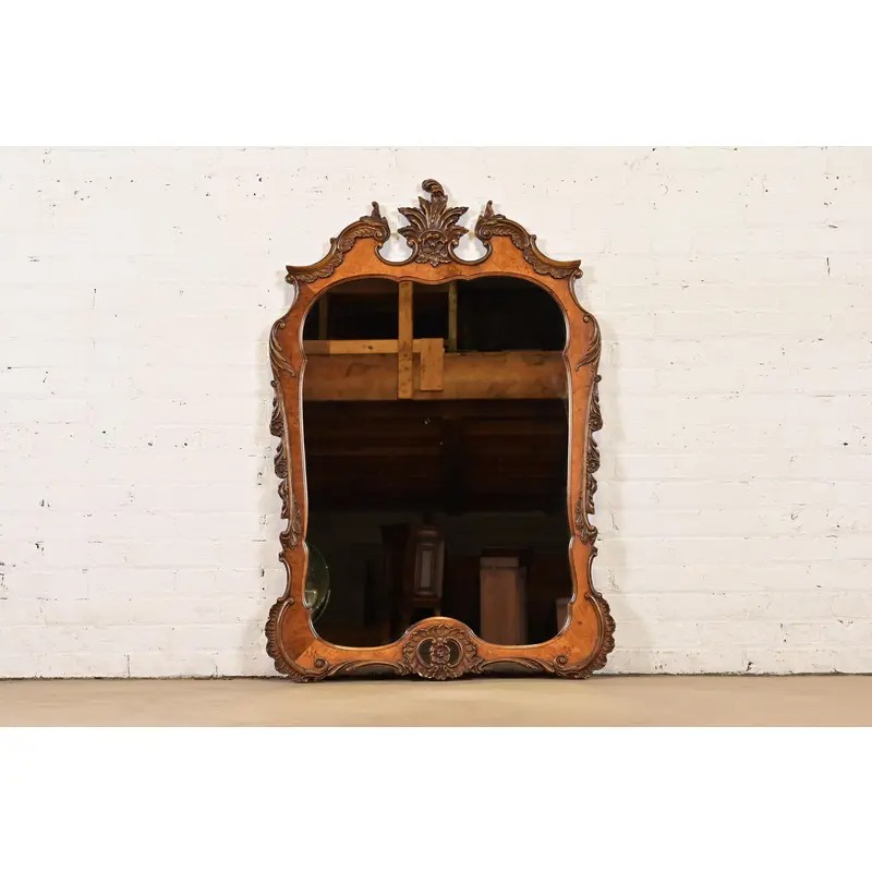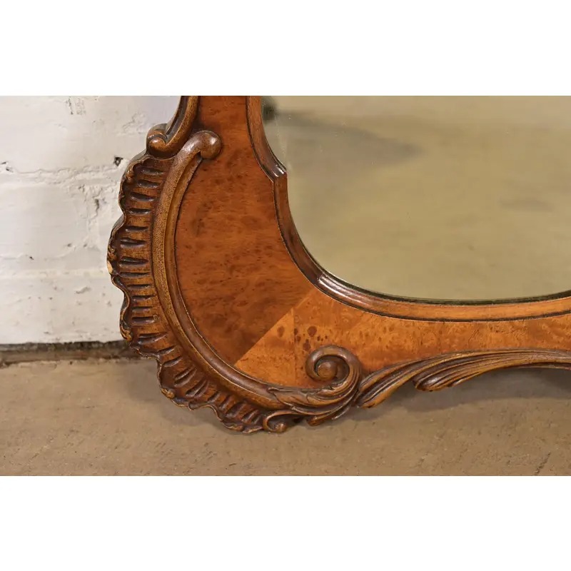 A beautiful antique French Rococo Louis XV or Baroque style carved burl wood framed wall mirror