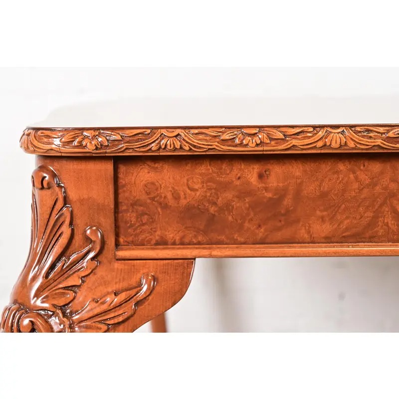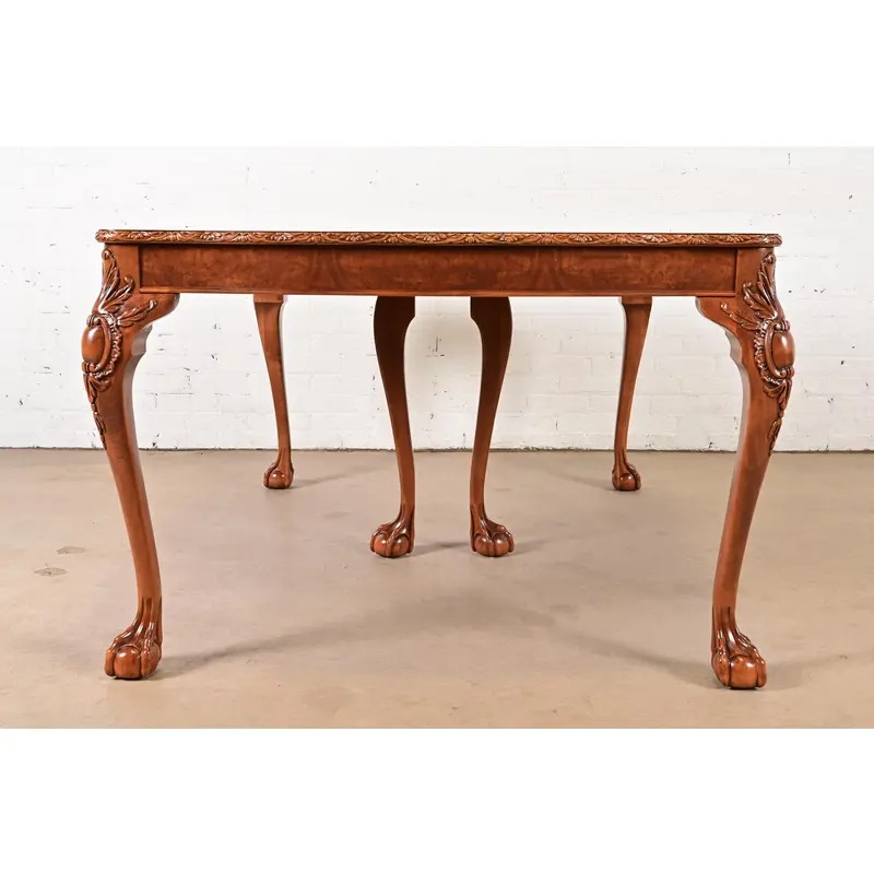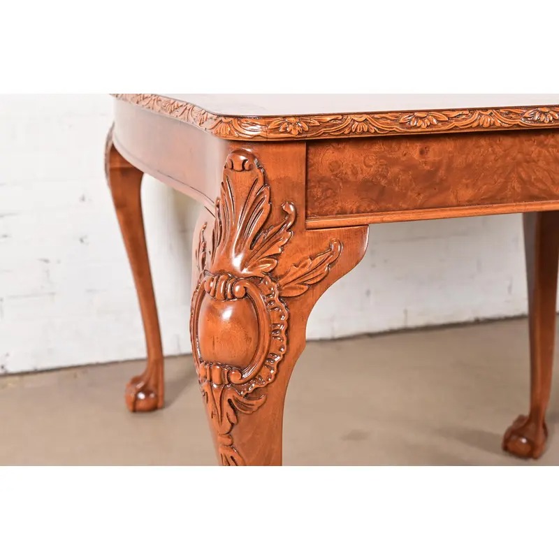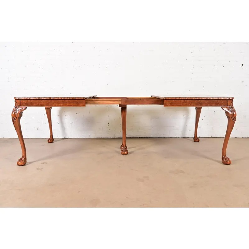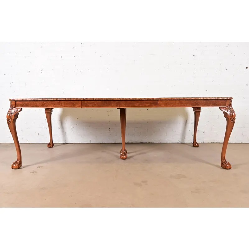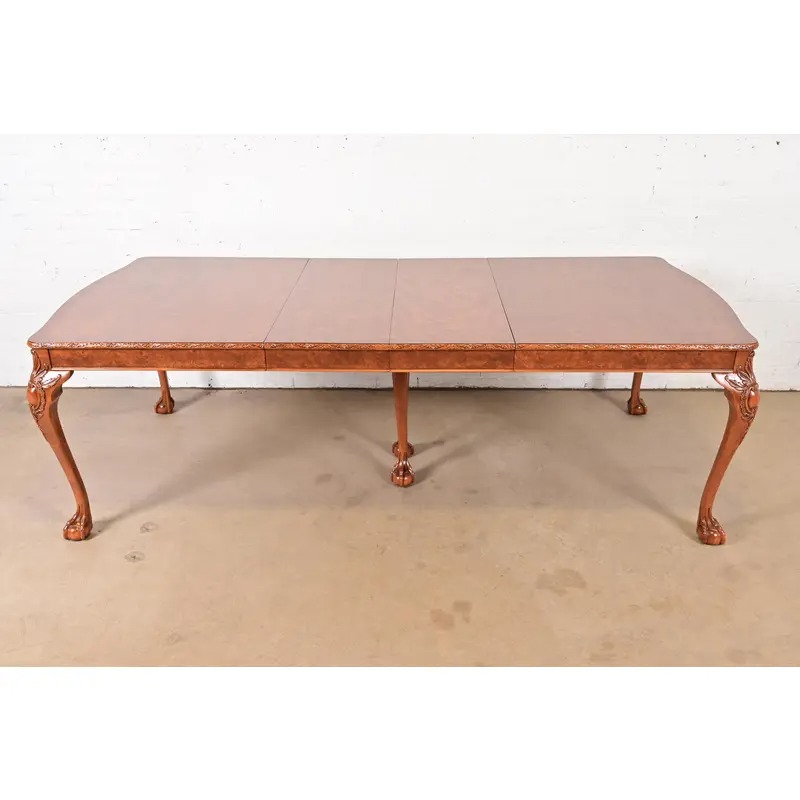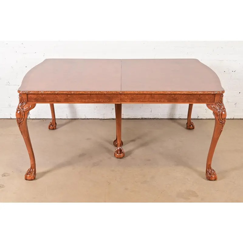 Romweber Chippendale Burl Wood Extension Dining Table, Newly Refinished