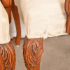 Beautiful carved exotic burled acacia wood, with upholstered seats.