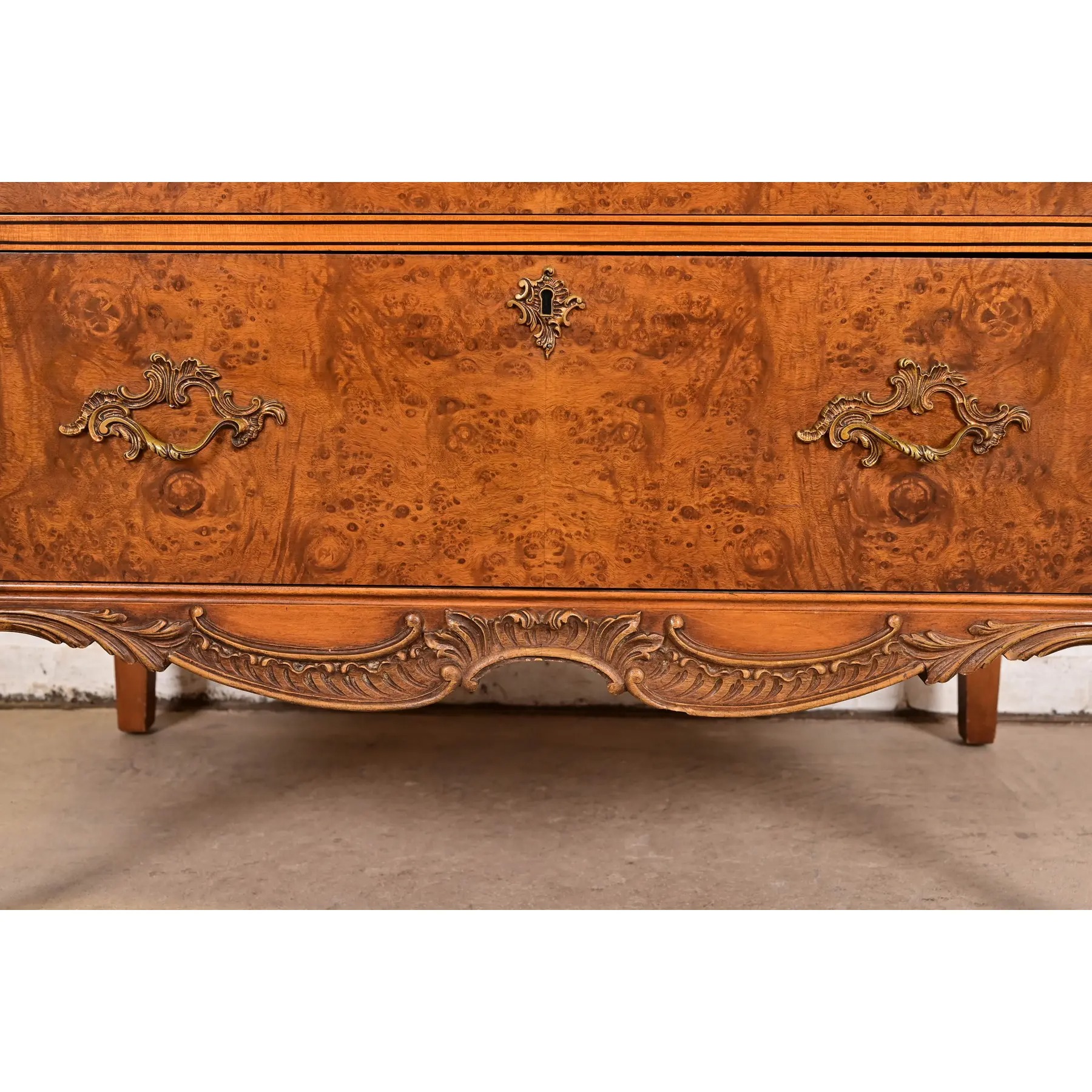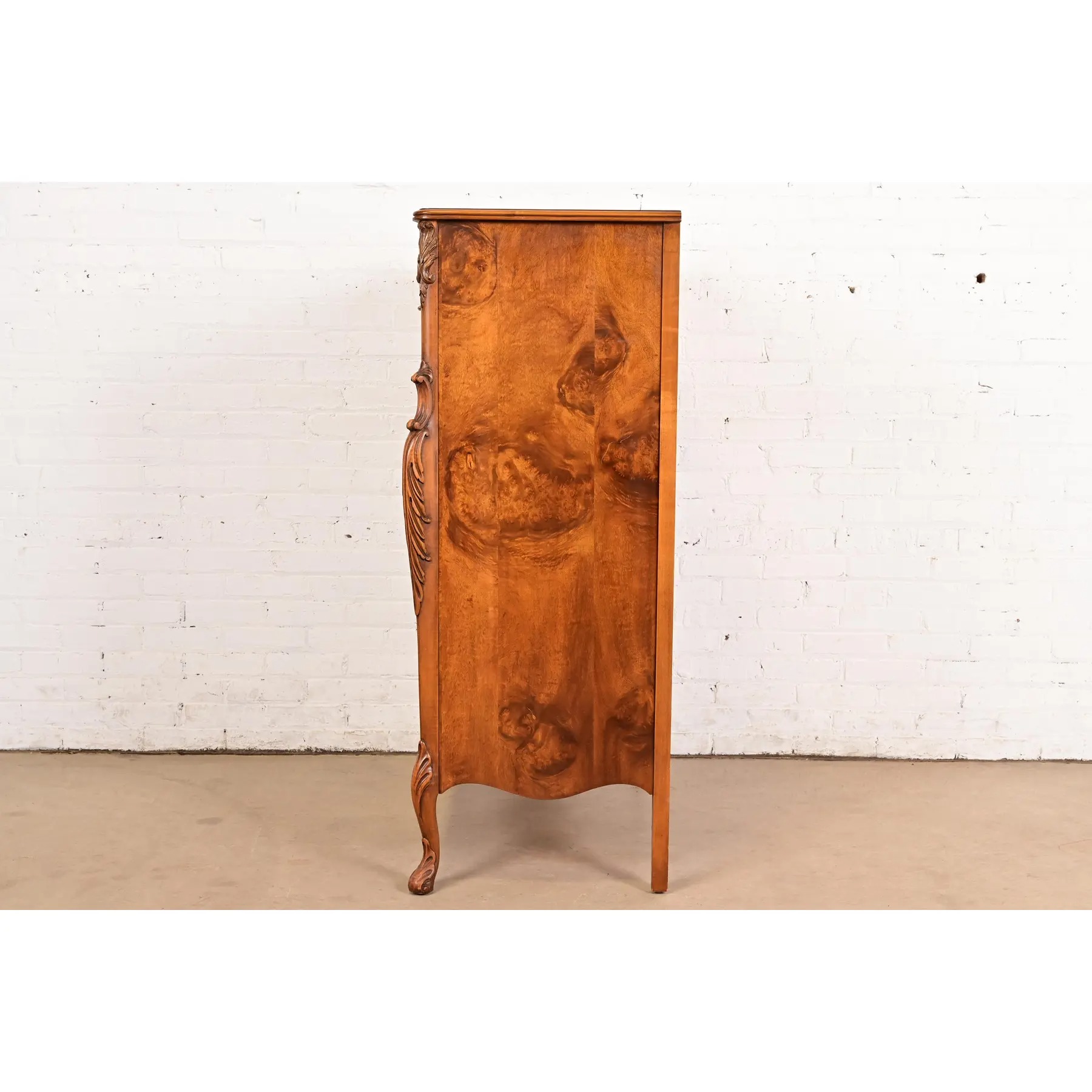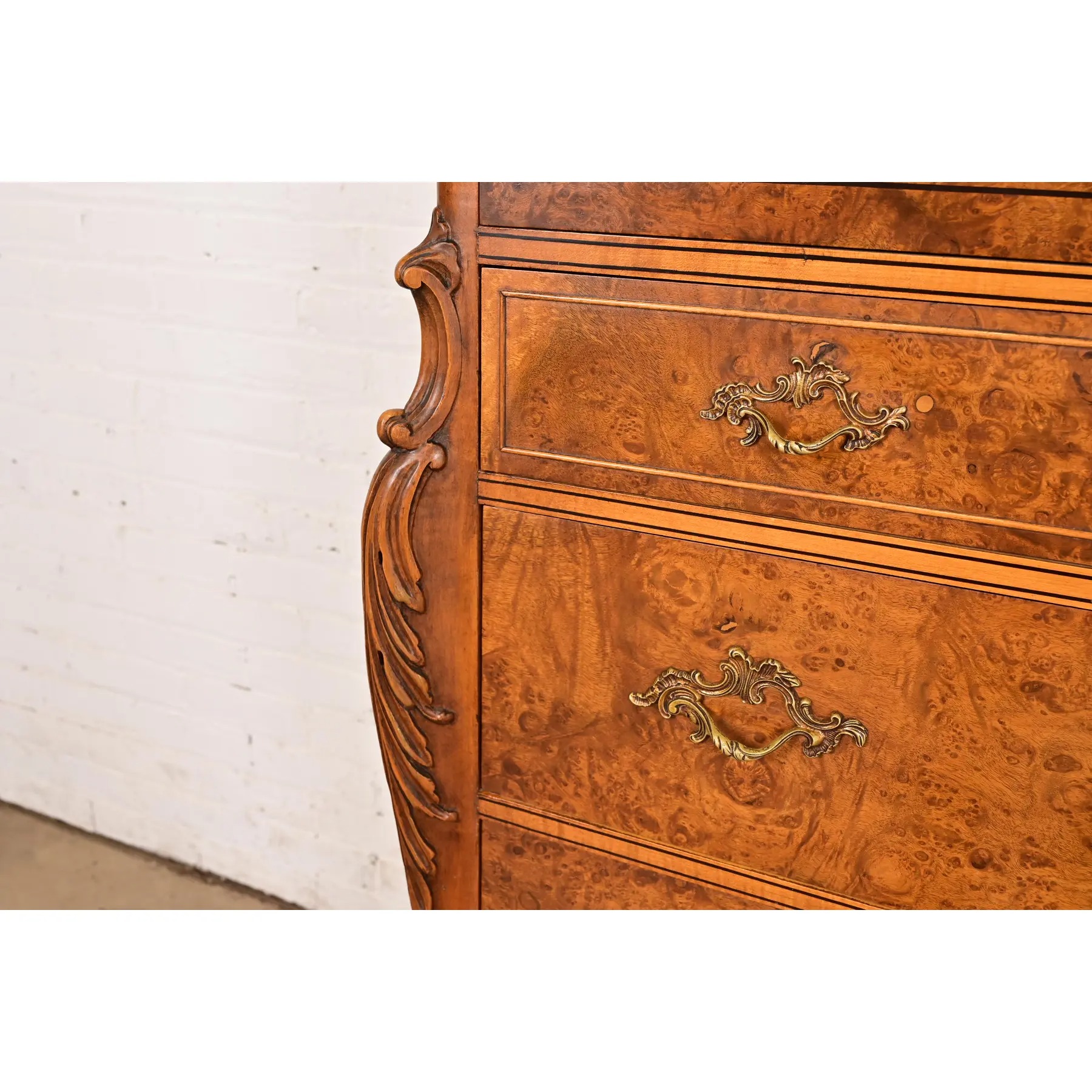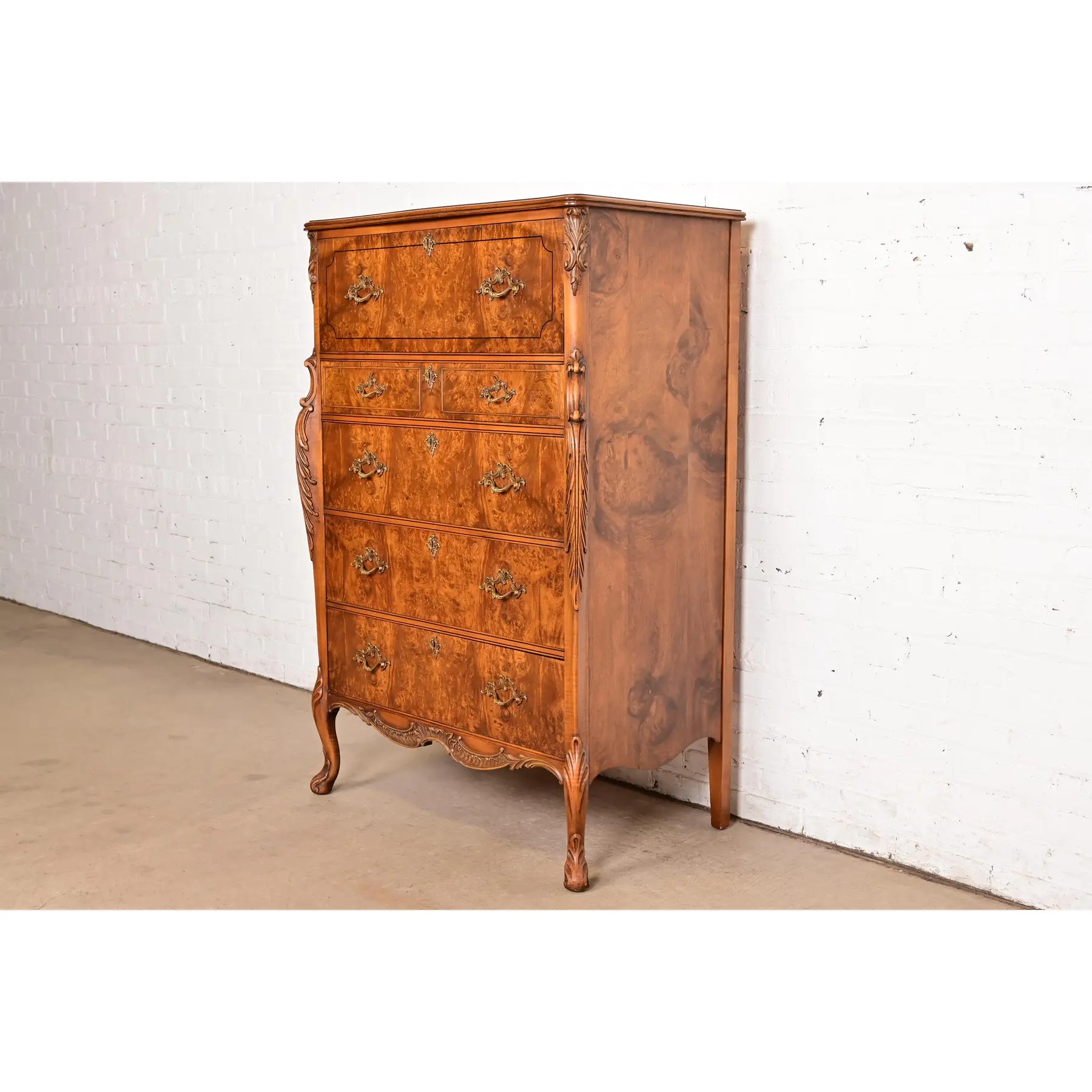 An exceptional French Provincial Louis XV style highboy dresser or chest of drawers