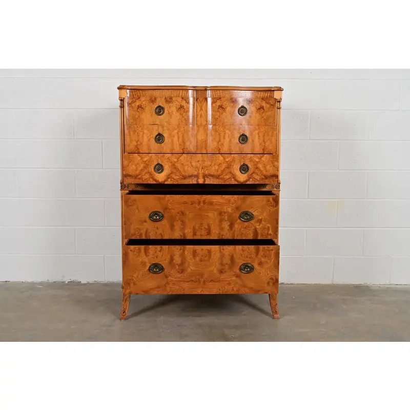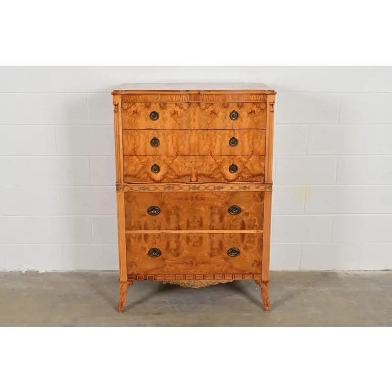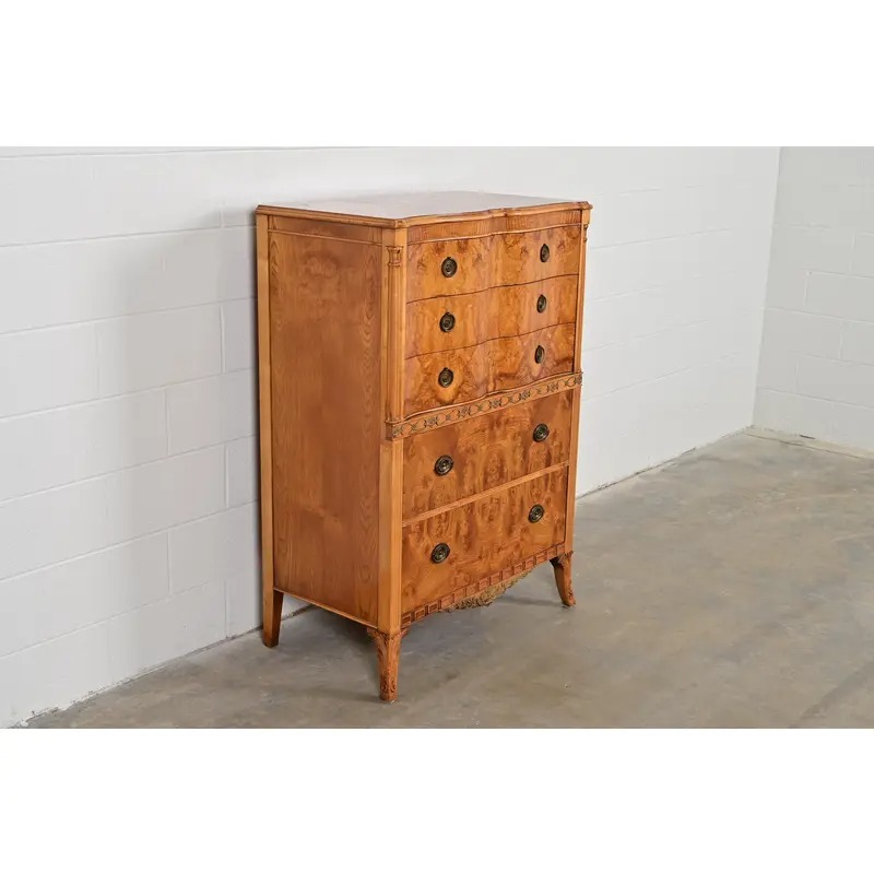 Romweber French Regency Louis XVI Burl Wood Highboy Dresser, Circa 1920s