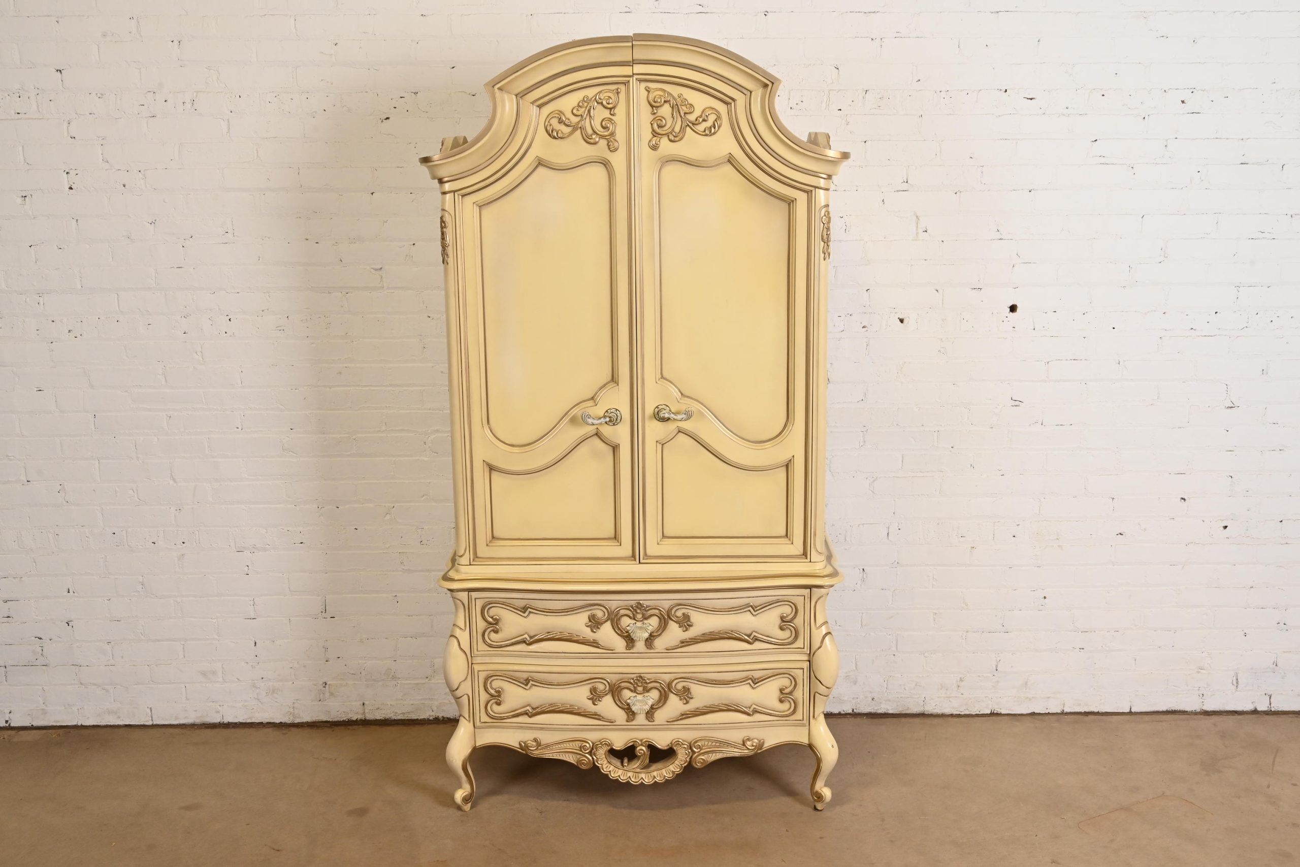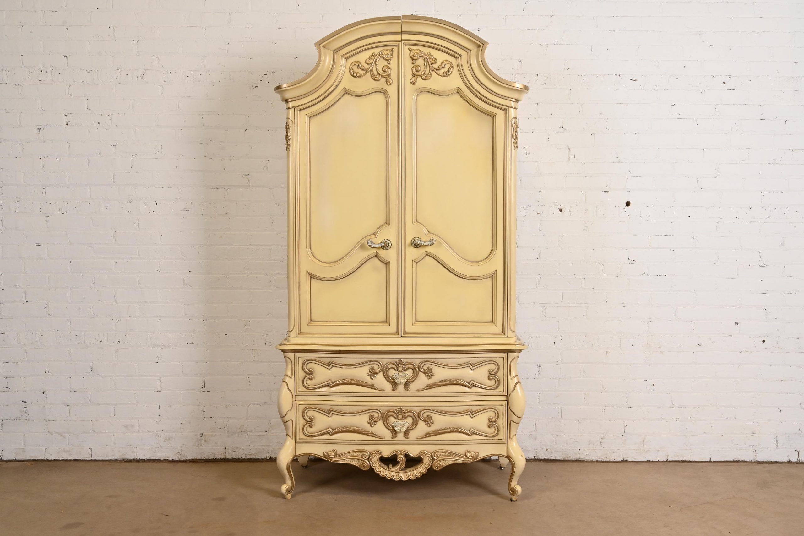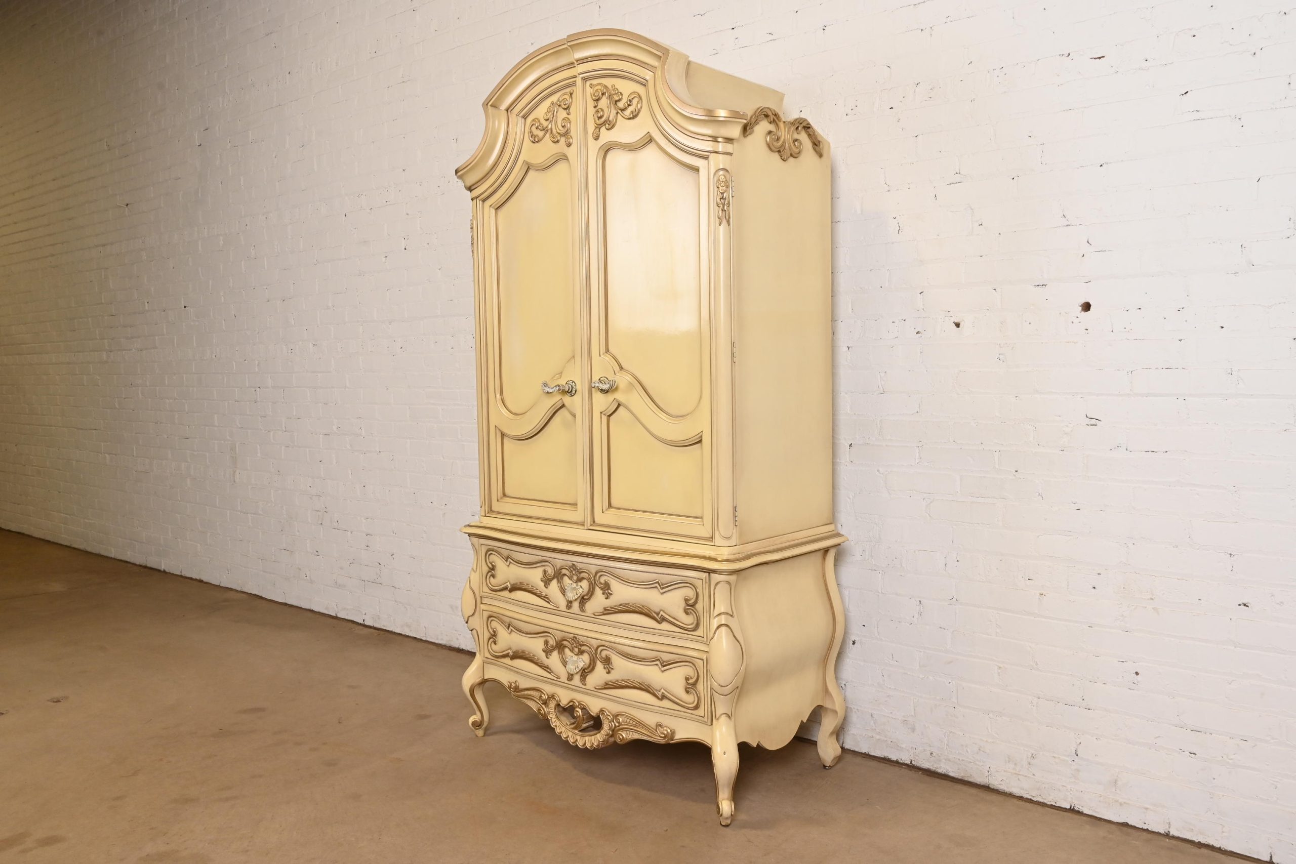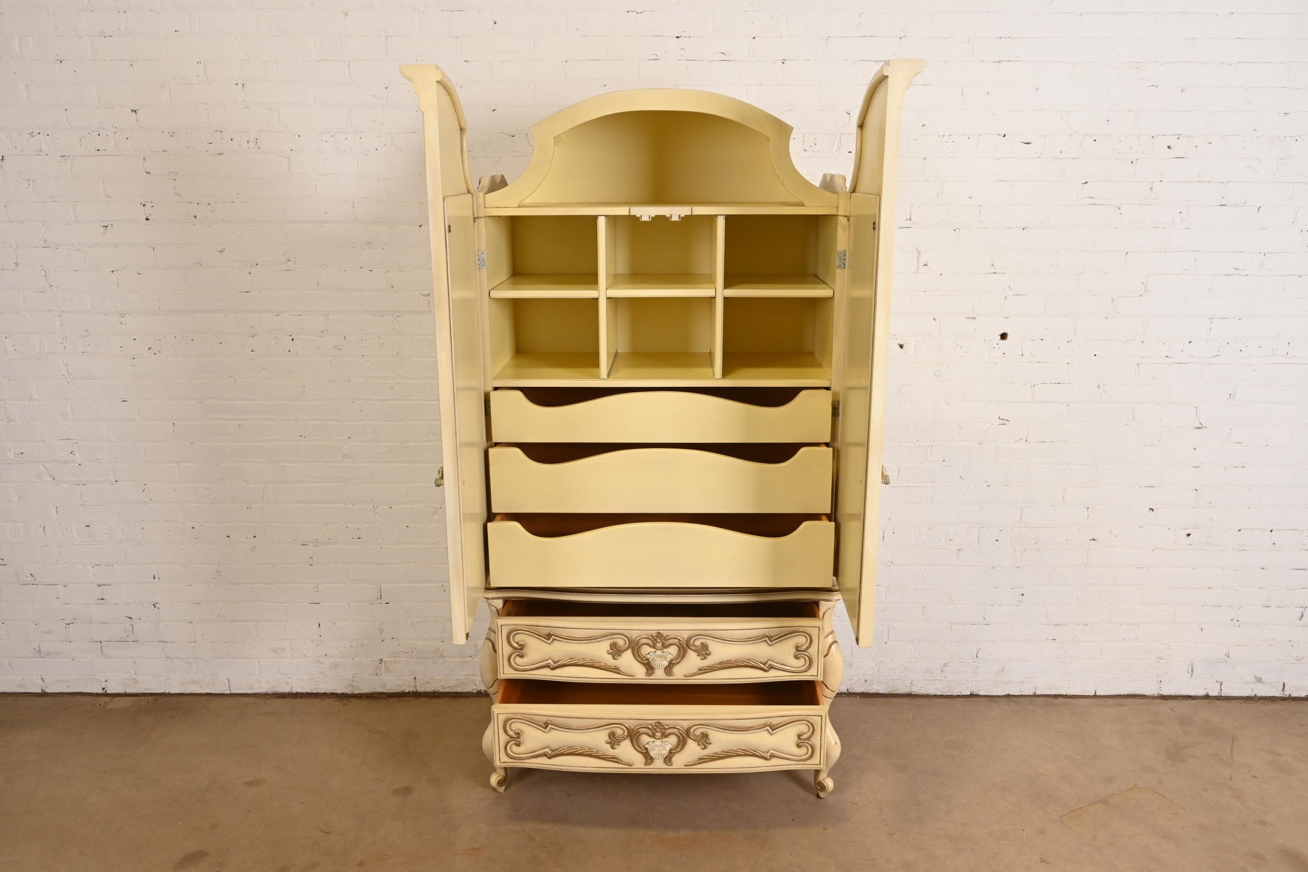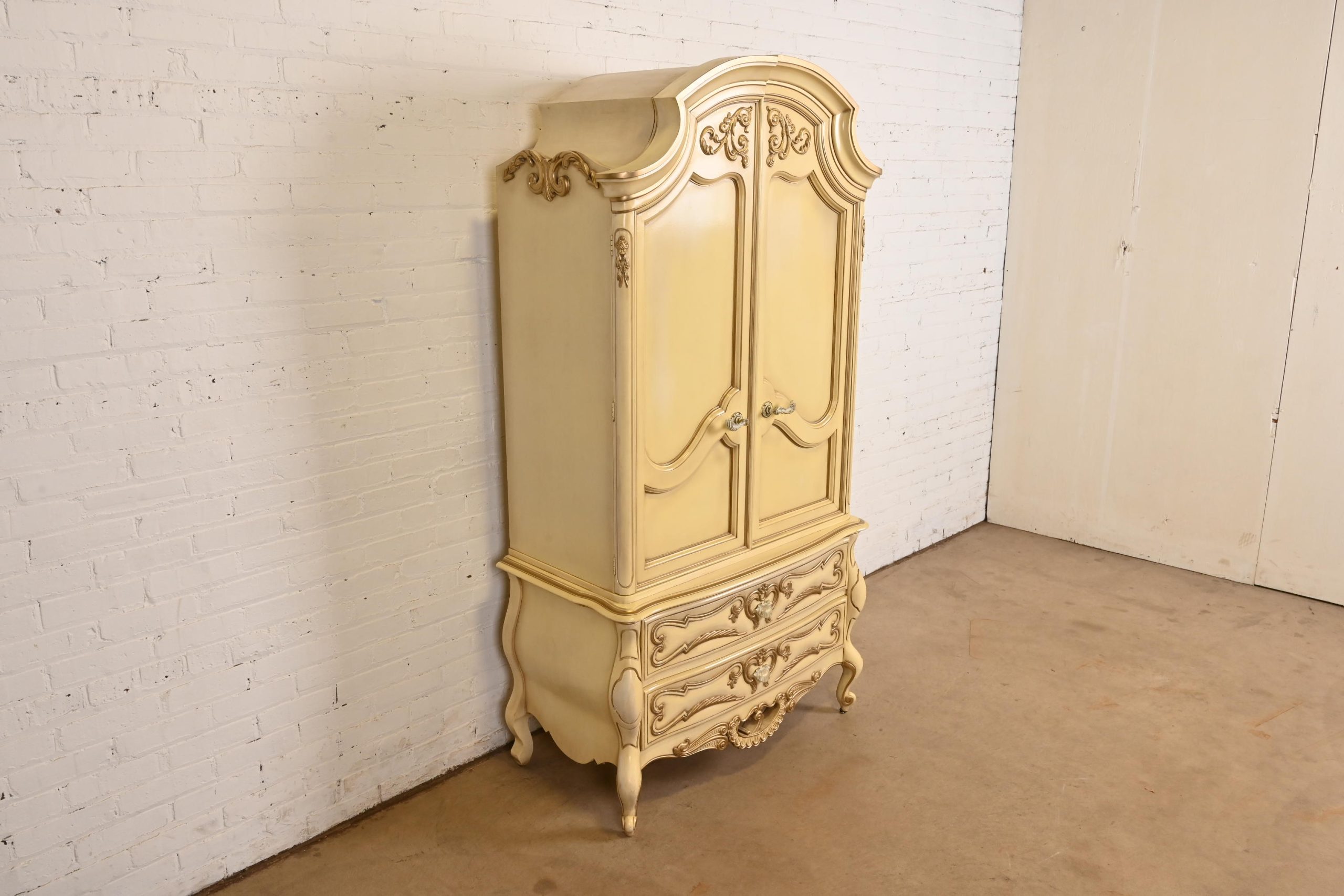 Romweber French Rococo Louis XV Cream Lacquered Armoire Dresser, Circa 1960s