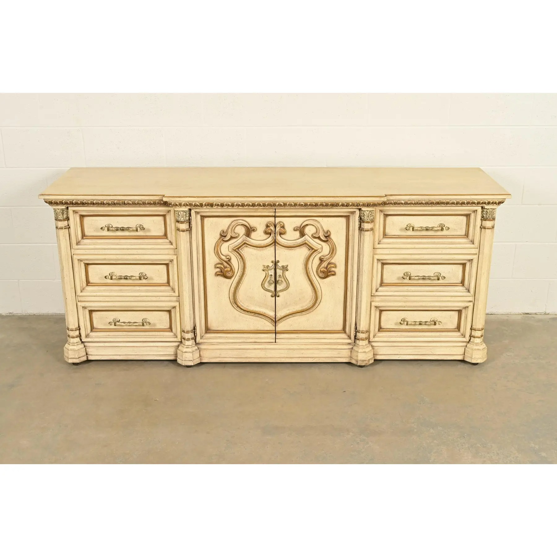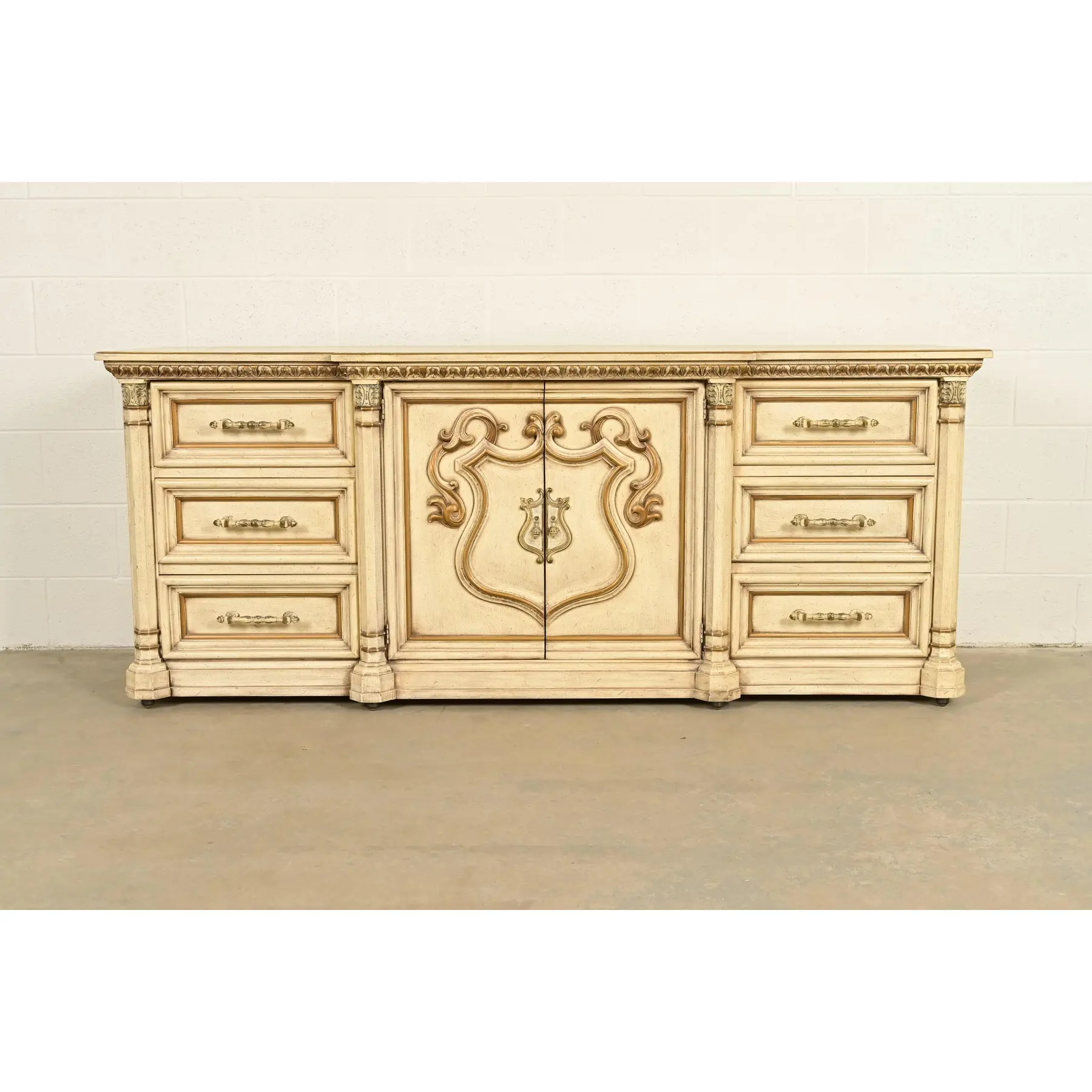 A gorgeous Hollywood Regency or French Rococo style nine-drawer dresser