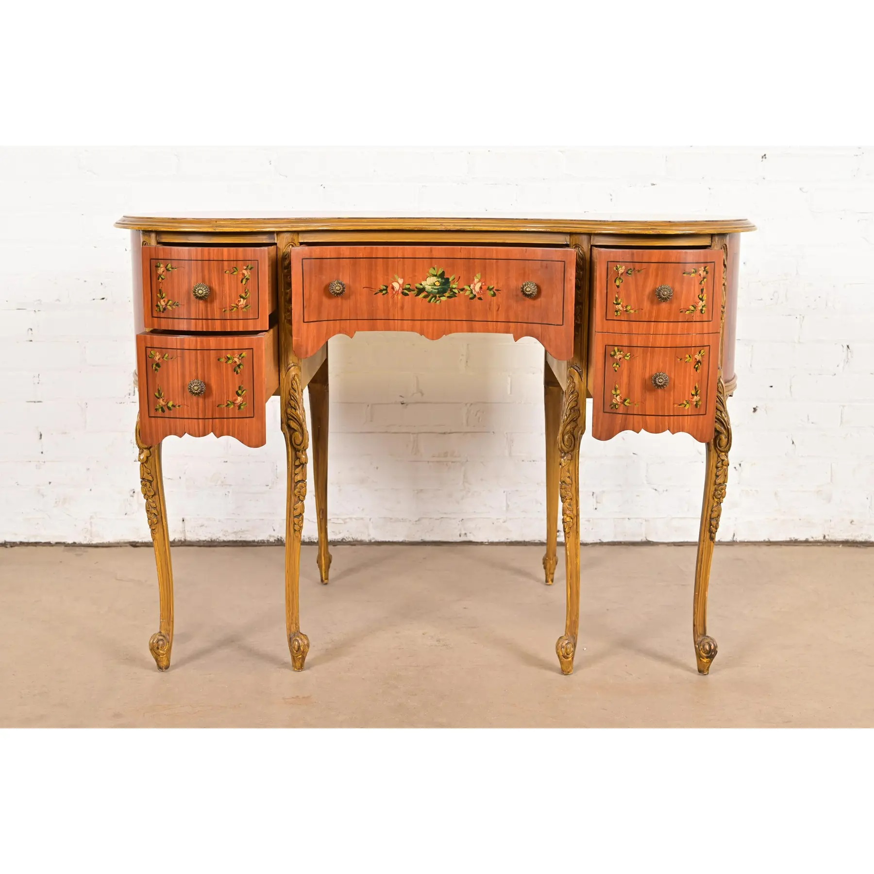 A gorgeous French Provincial Louis XV style kidney shaped vanity or ladies writing desk