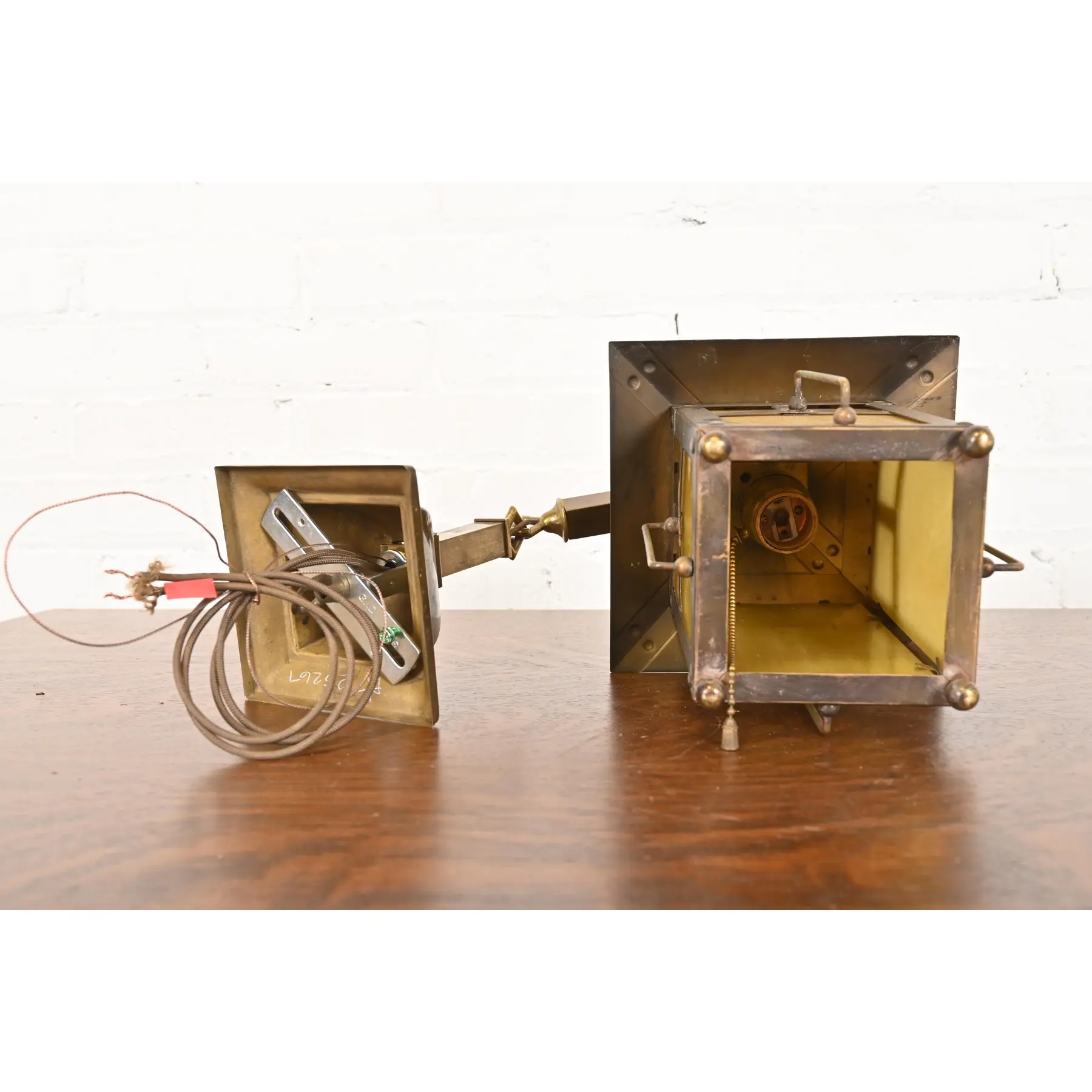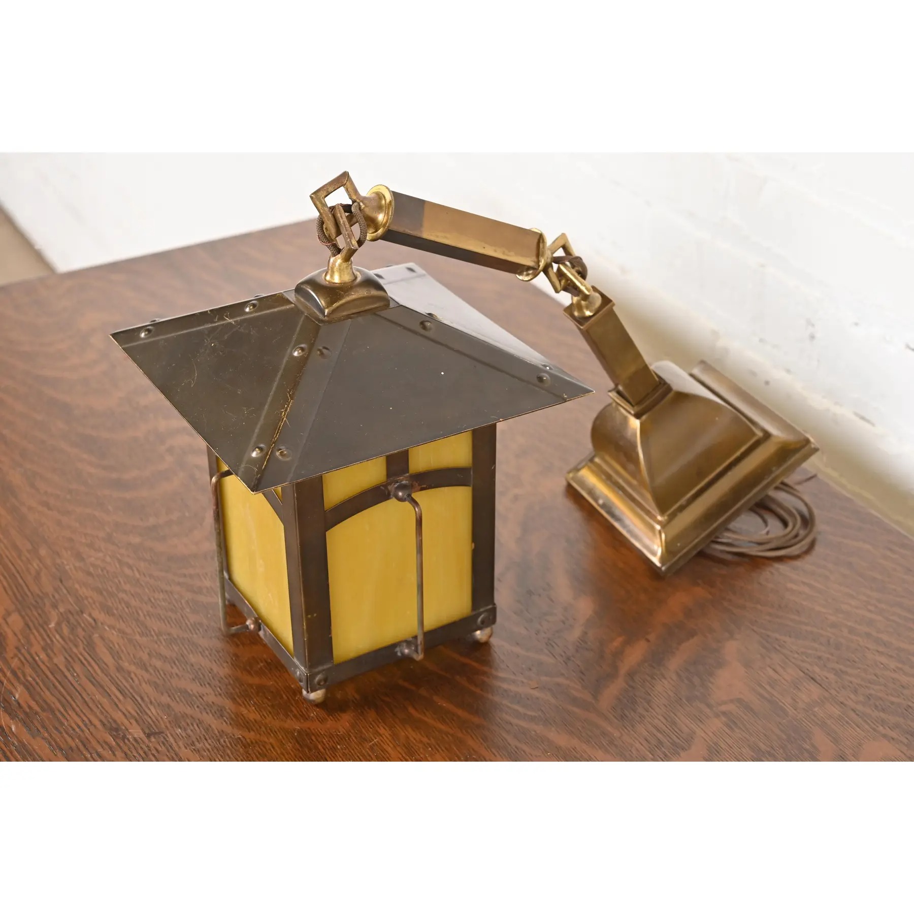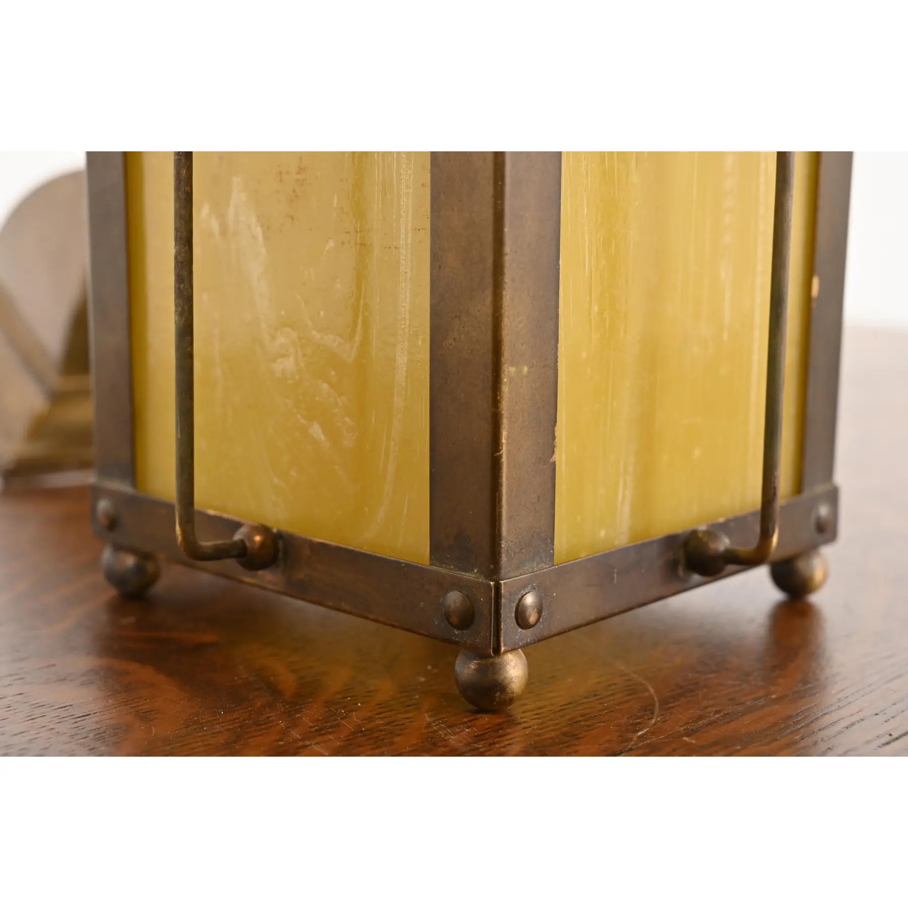 Roycroft Antique Arts & Crafts Brass and Caramel Glass Lantern Pendant Light, Circa 1920s