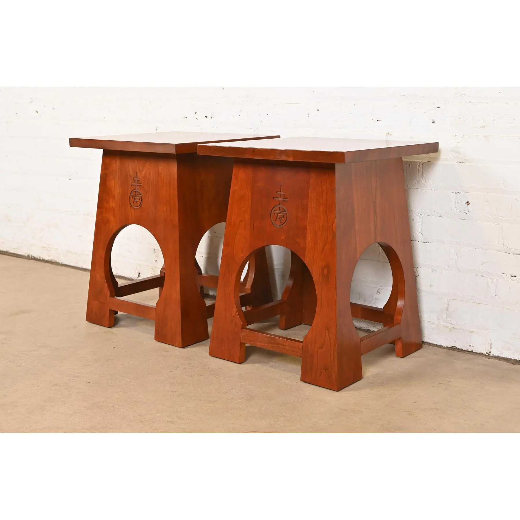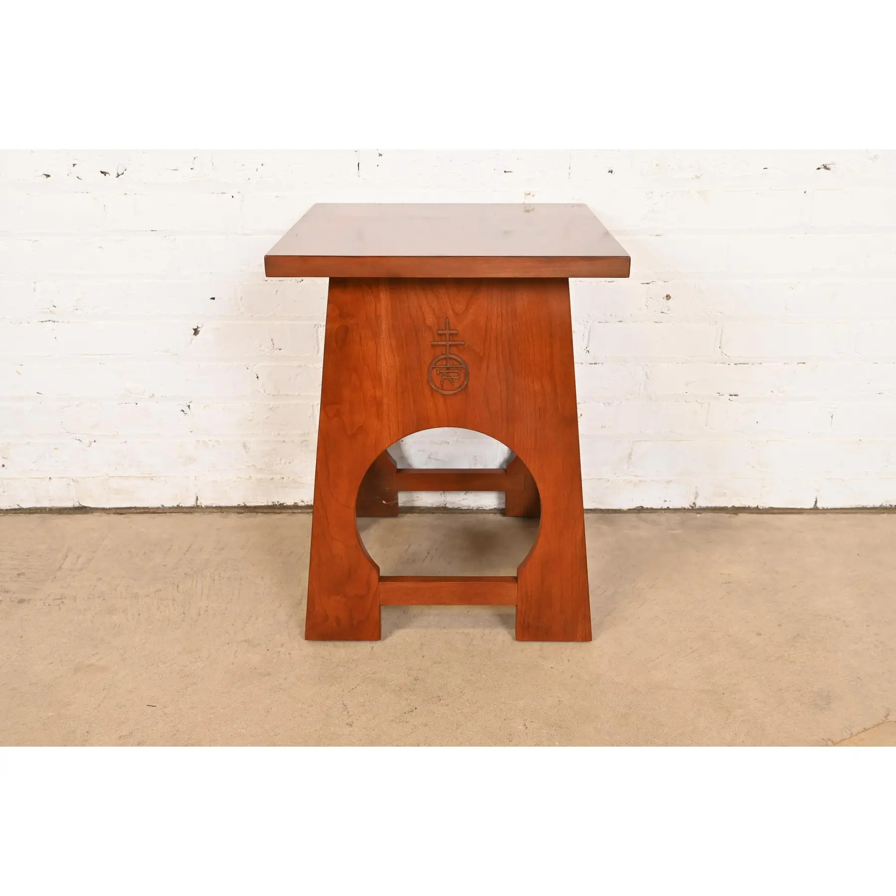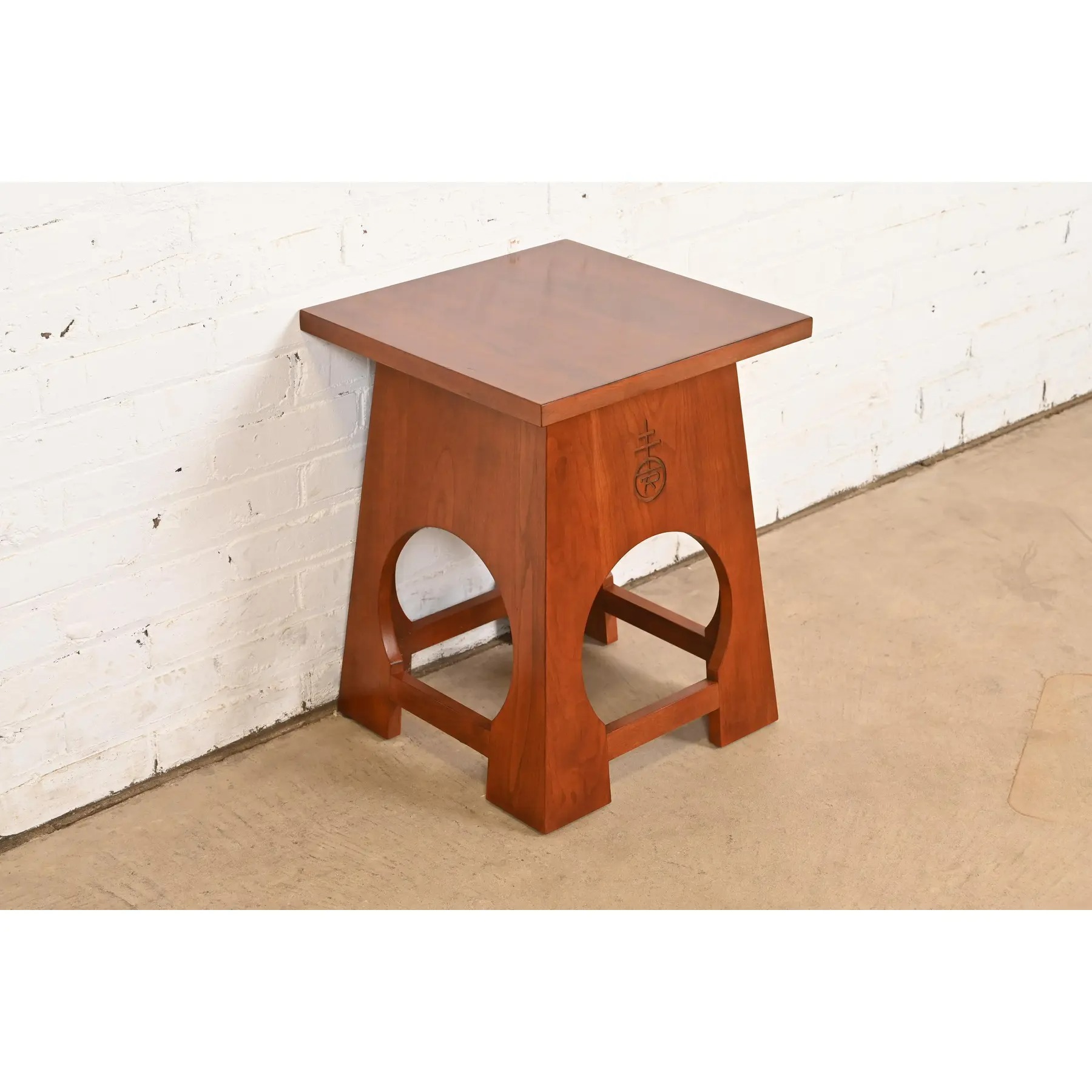 A gorgeous Mission or Arts & Crafts style Roycroft solid cherry wood tabouret or side table