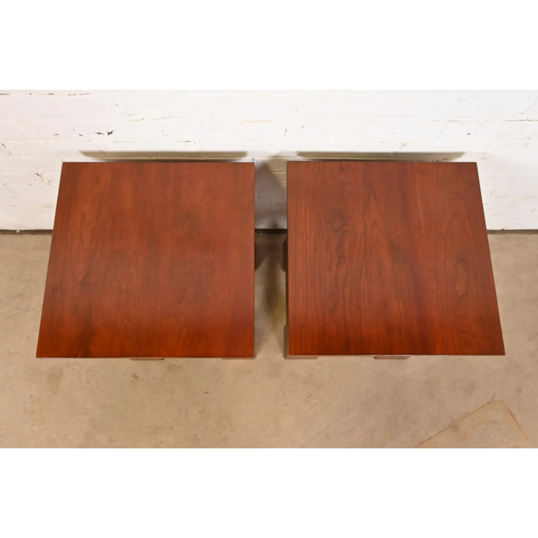 A gorgeous pair of Mission or Arts & Crafts style Roycroft solid cherry wood tabourets or side tables